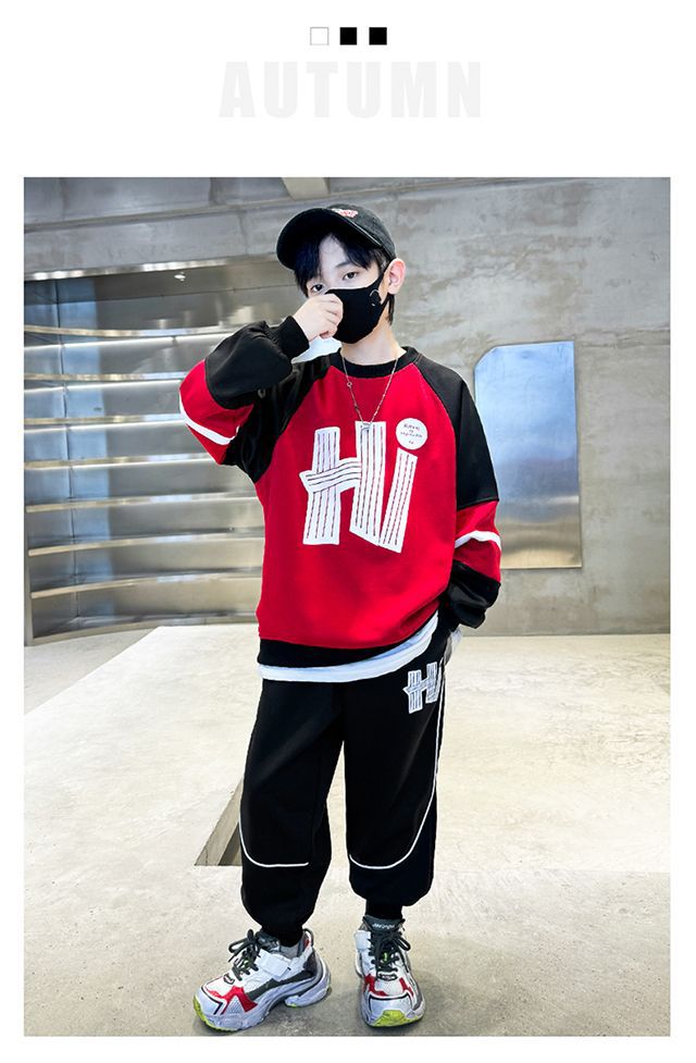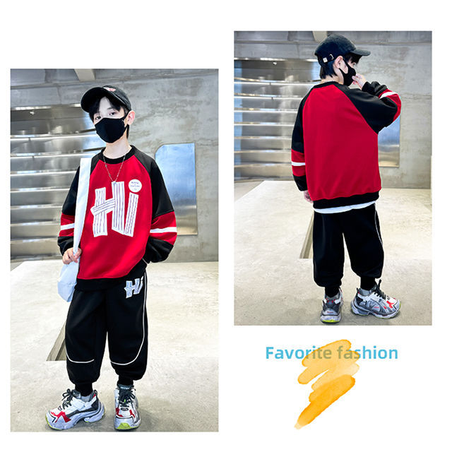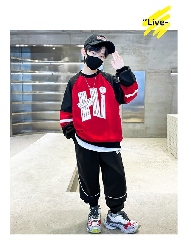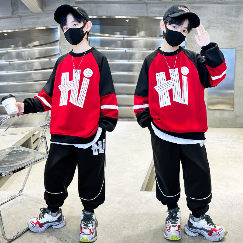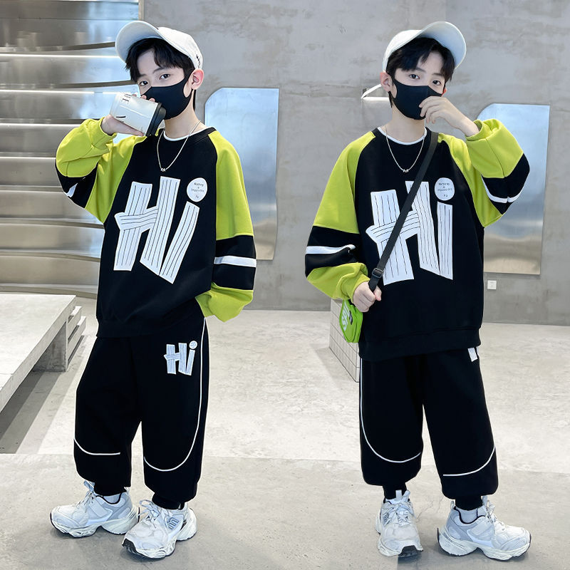 남학생 가을 착용 세트 2024 새로운 스타일 중대형 어린이 잘 생긴 어린이 봄과 가을 소년 스포츠 땀 투피스 유행스토어 가기