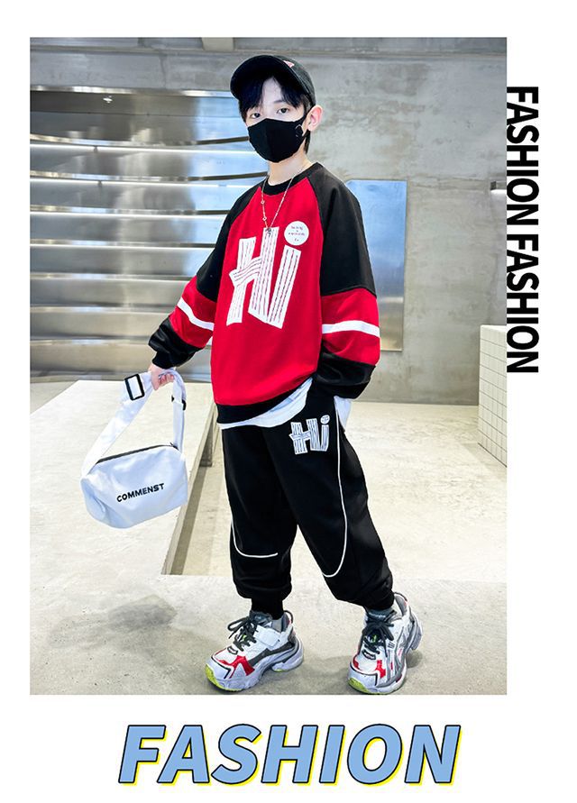 남학생 가을 착용 세트 2024 새로운 스타일 중대형 어린이 잘 생긴 어린이 봄과 가을 소년 스포츠 땀 투피스 유행