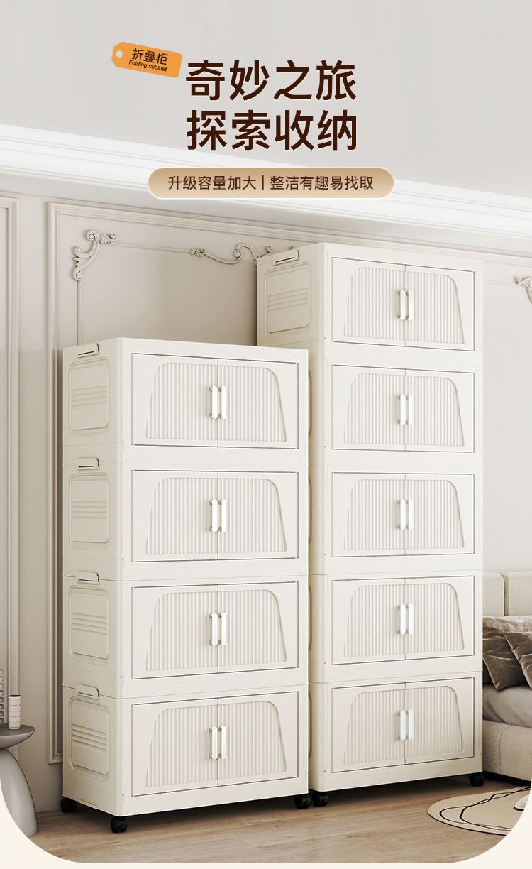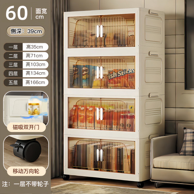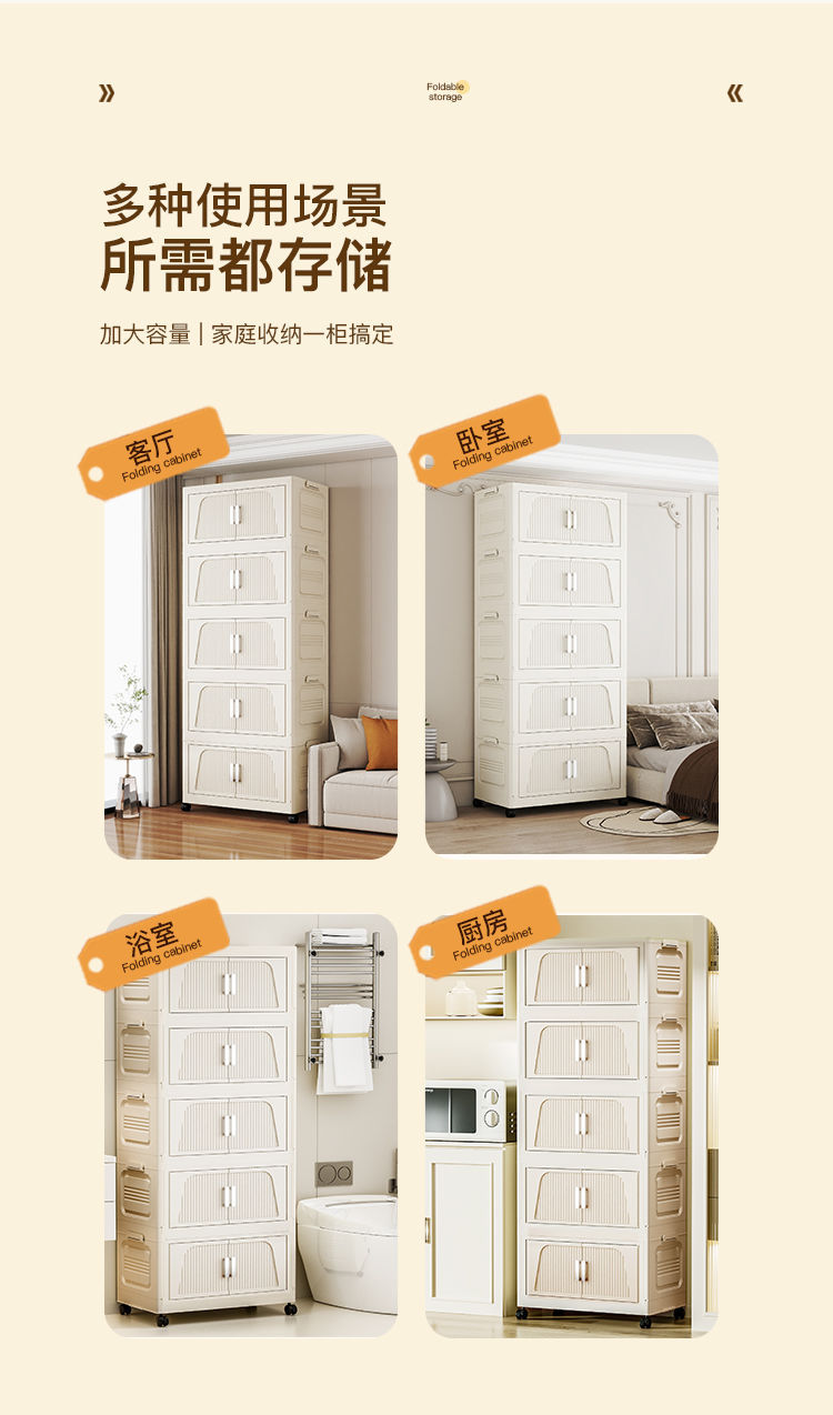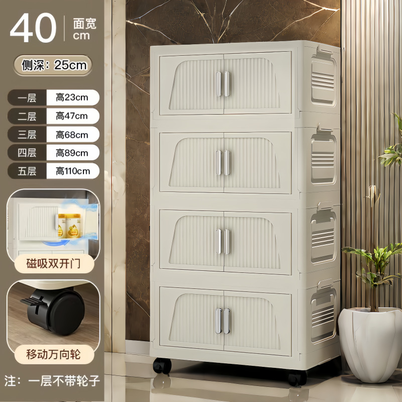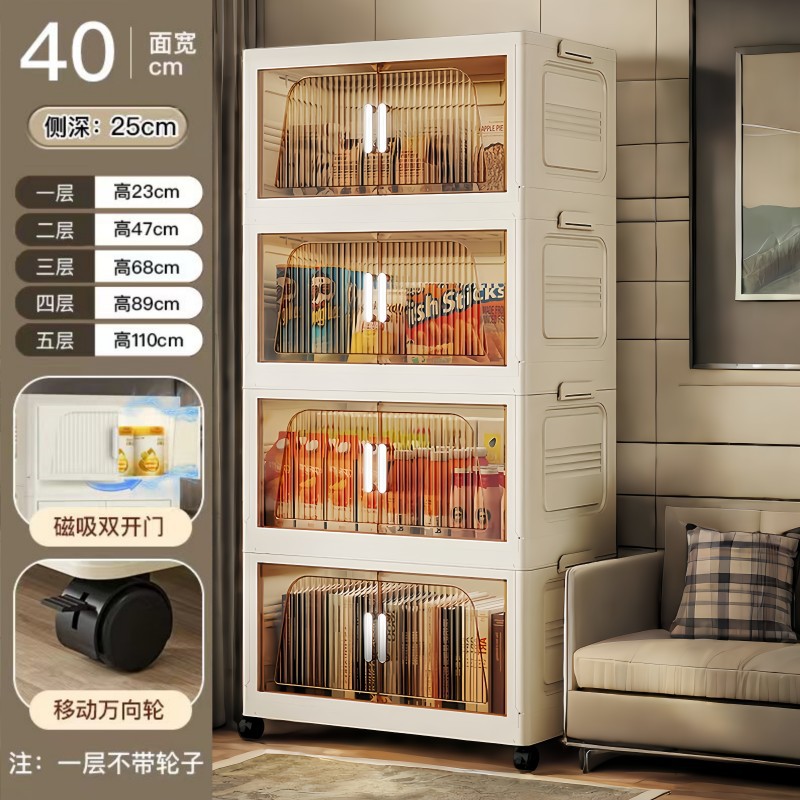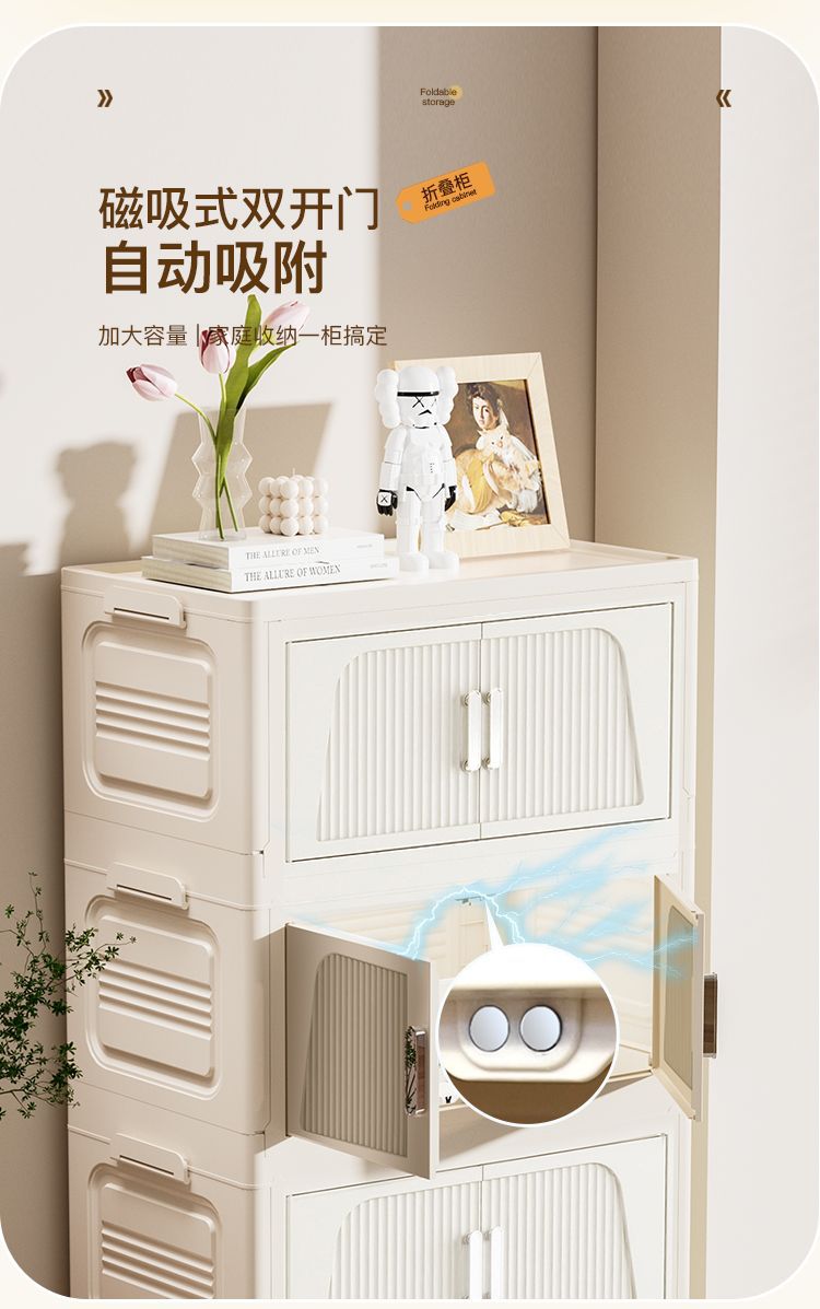 가정용 접이식 옷 보관 캐비닛 거실 간식 잡화 설치-무료 저장 상자 장난감 플라스틱 보관 선반