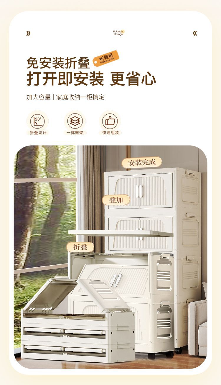 가정용 접이식 옷 보관 캐비닛 거실 간식 잡화 설치-무료 저장 상자 장난감 플라스틱 보관 선반스토어 가기