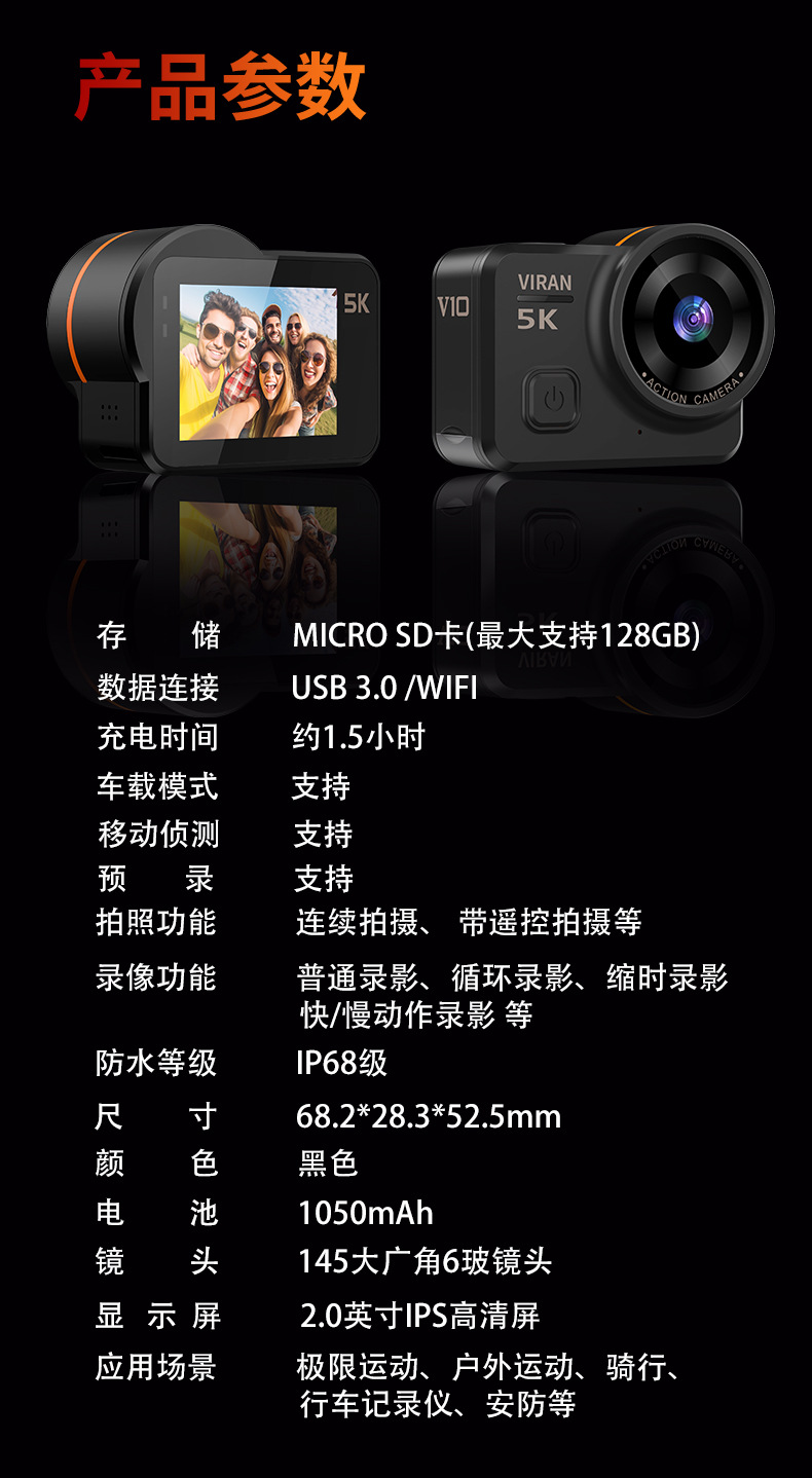 공장 직판 V10 스포츠 카메라 5K 흔들림 방지 라이딩 레코더 야외 다이빙 스포츠 카메라 레코더스토어 가기