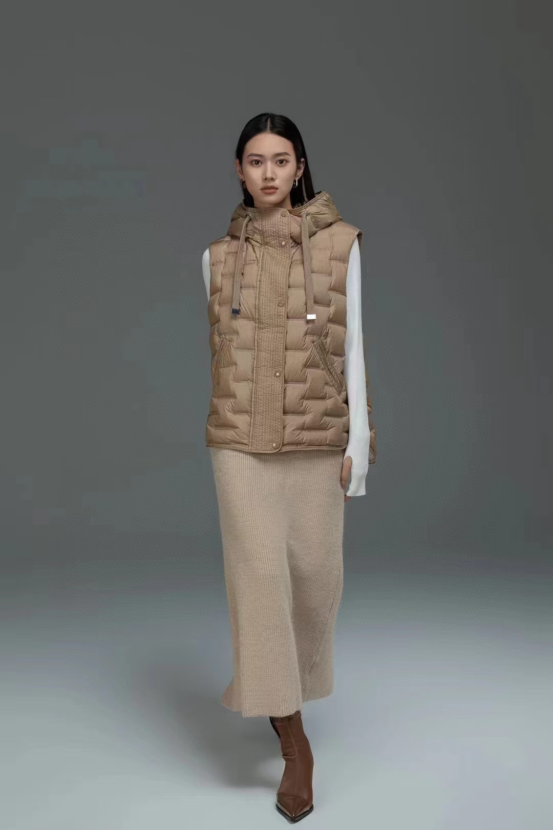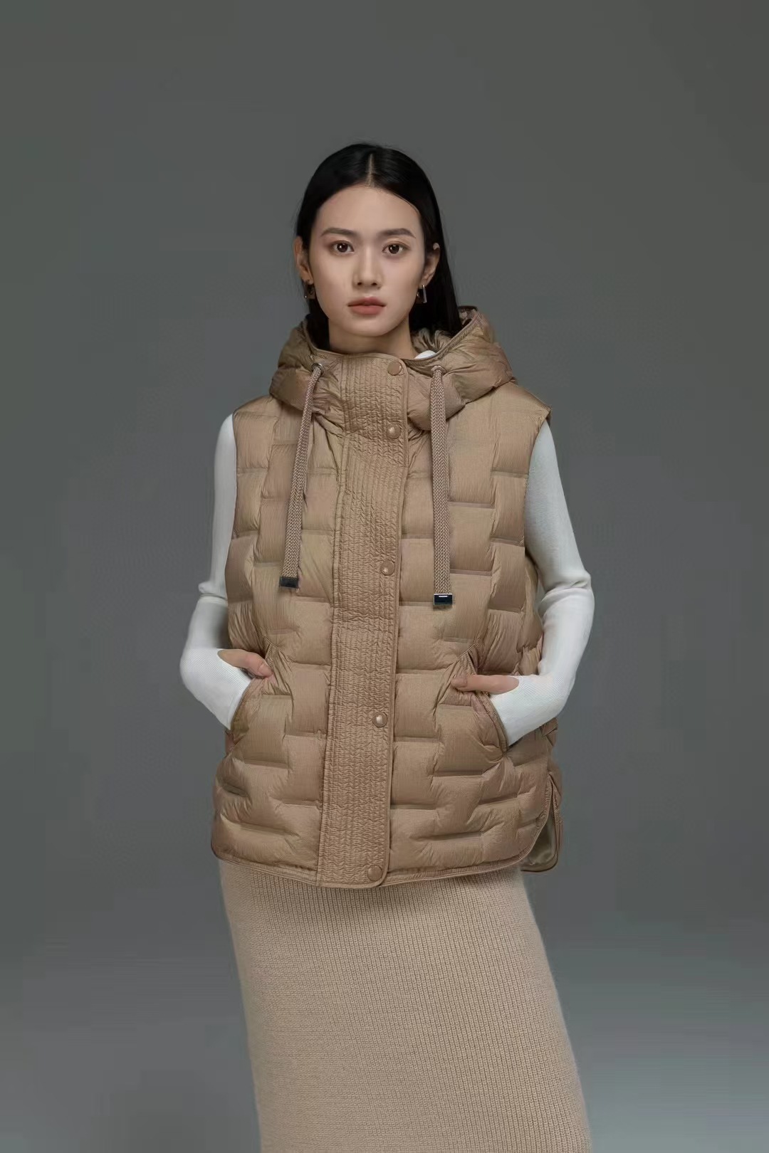 국경 간 가을과 겨울 새로운 경량 스택 내부 후드 다운 재킷 여성 조끼 느슨한 패션 코트 트렌디스토어 가기