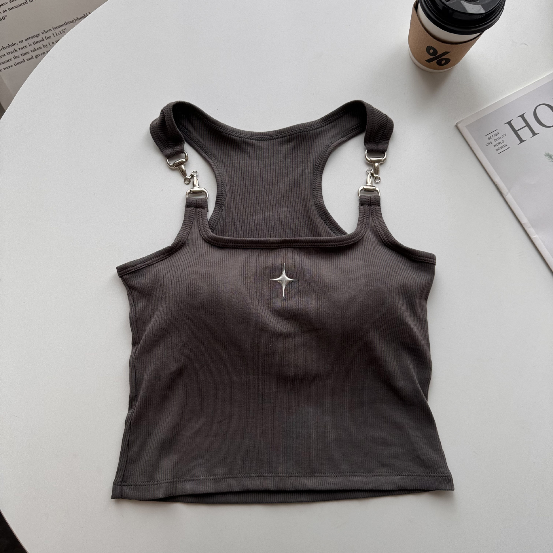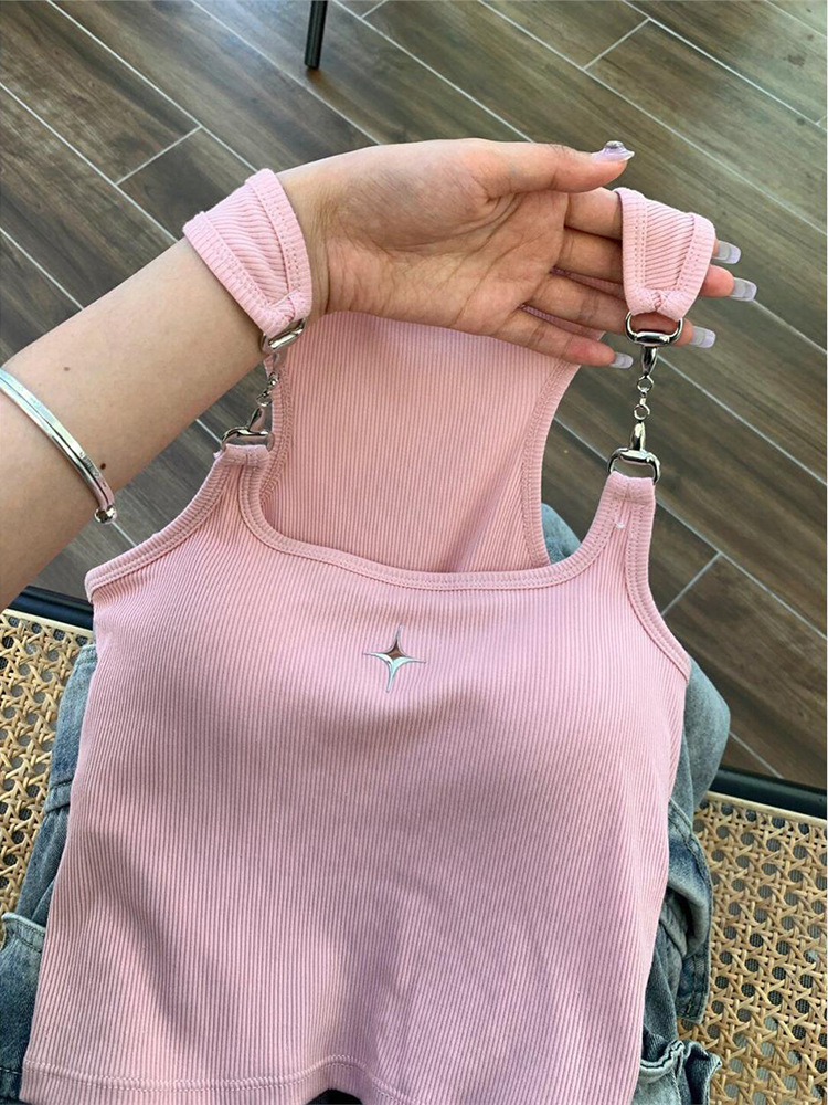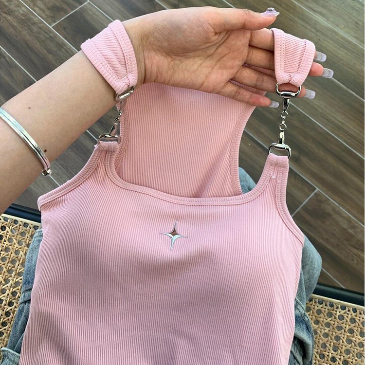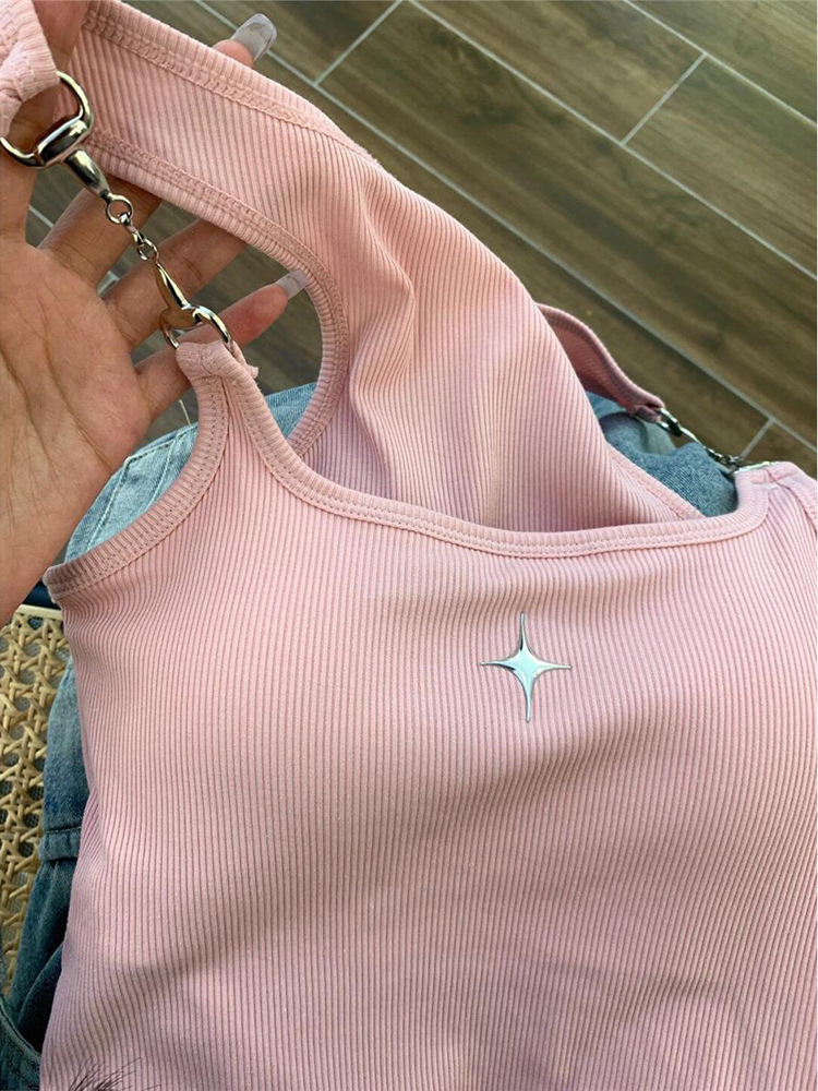프렌치 스타일 달콤하고 뜨거운 작은 조끼 아이언 체인 슬링 브래킷 패드 원피스 아름다운 백 퓨어 스트랩리스 보텀 탑이있는 여성용 세트