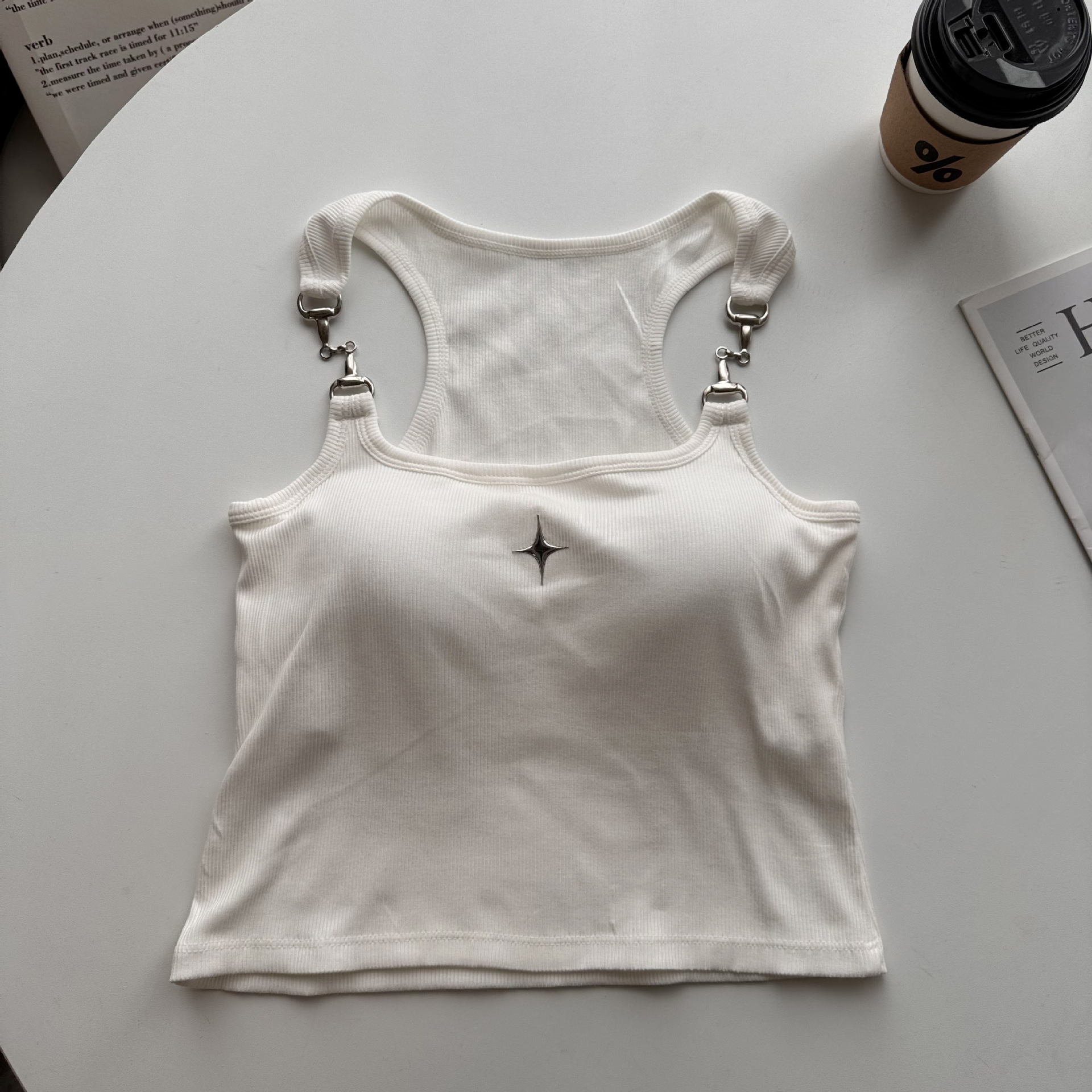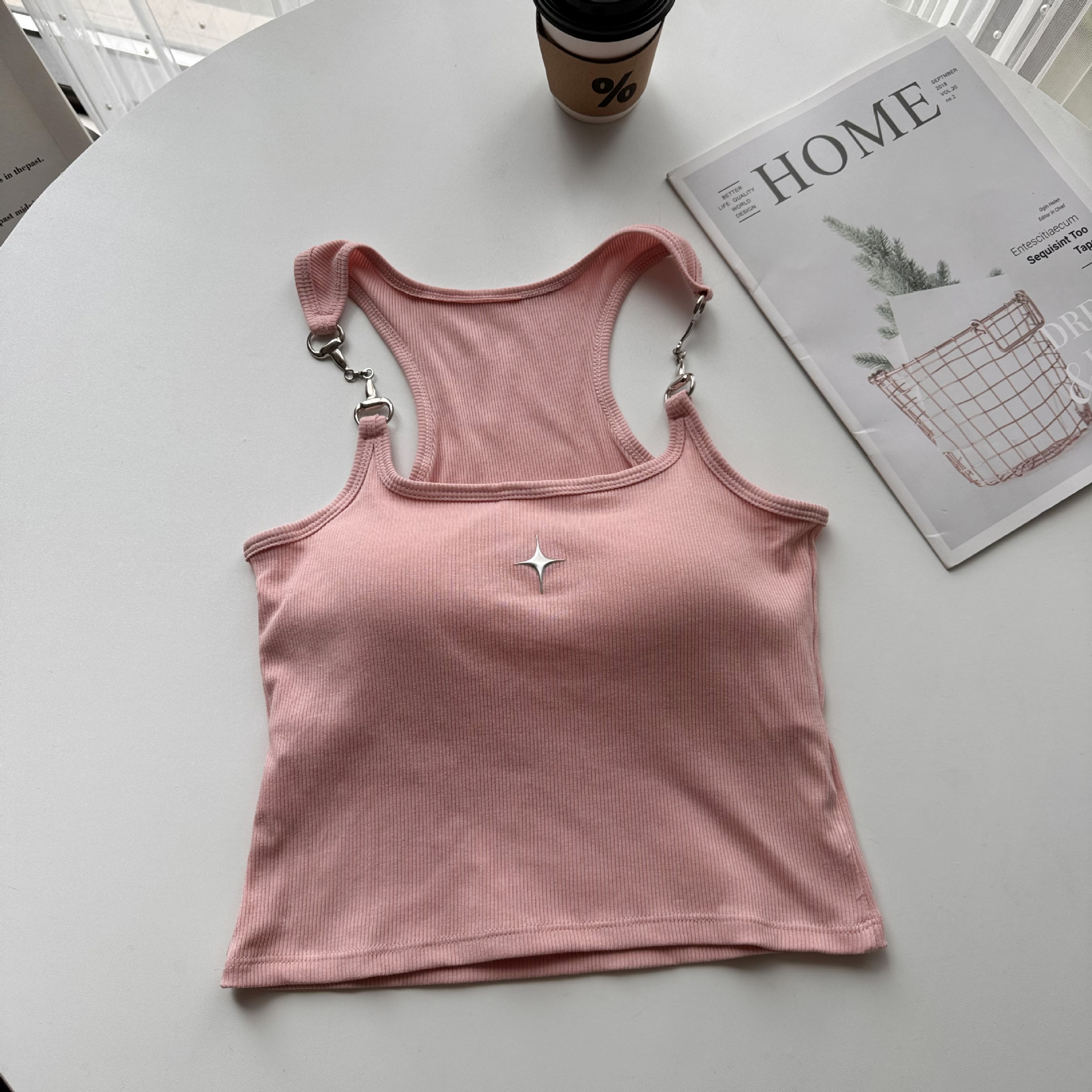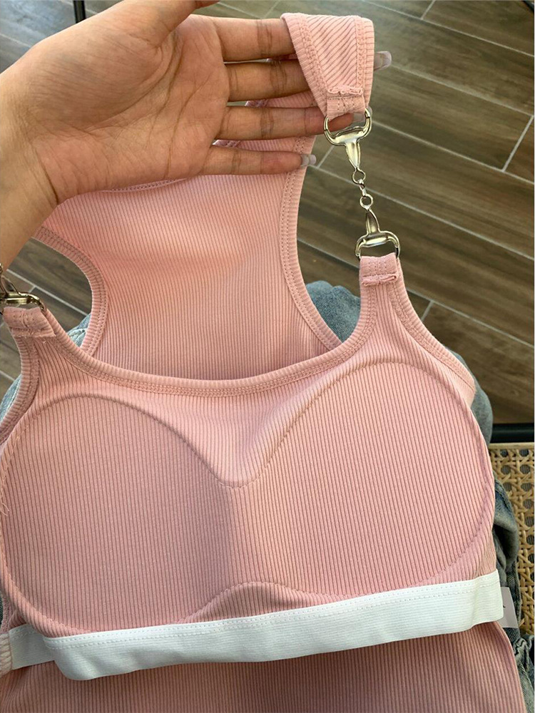 프렌치 스타일 달콤하고 뜨거운 작은 조끼 아이언 체인 슬링 브래킷 패드 원피스 아름다운 백 퓨어 스트랩리스 보텀 탑이있는 여성용 세트스토어 가기