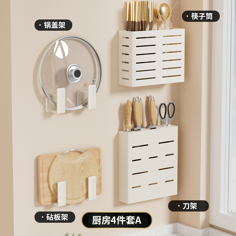 주방 보관 랙 펀치없는 벽걸이 형 나이프 홀더 조미료 Daquan Hook 젓가락 케이지 냄비 커버 랙 세트