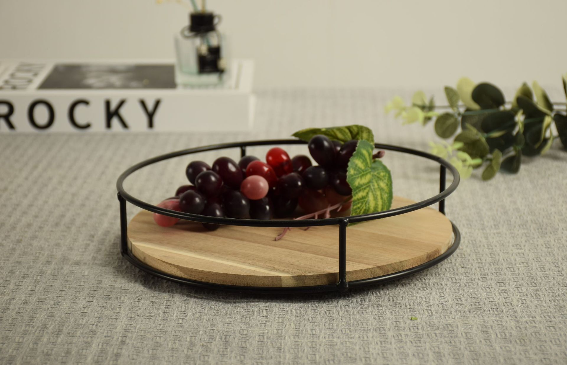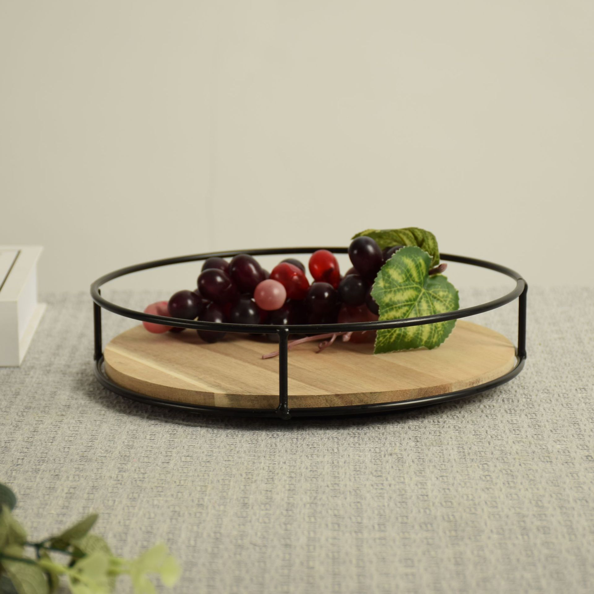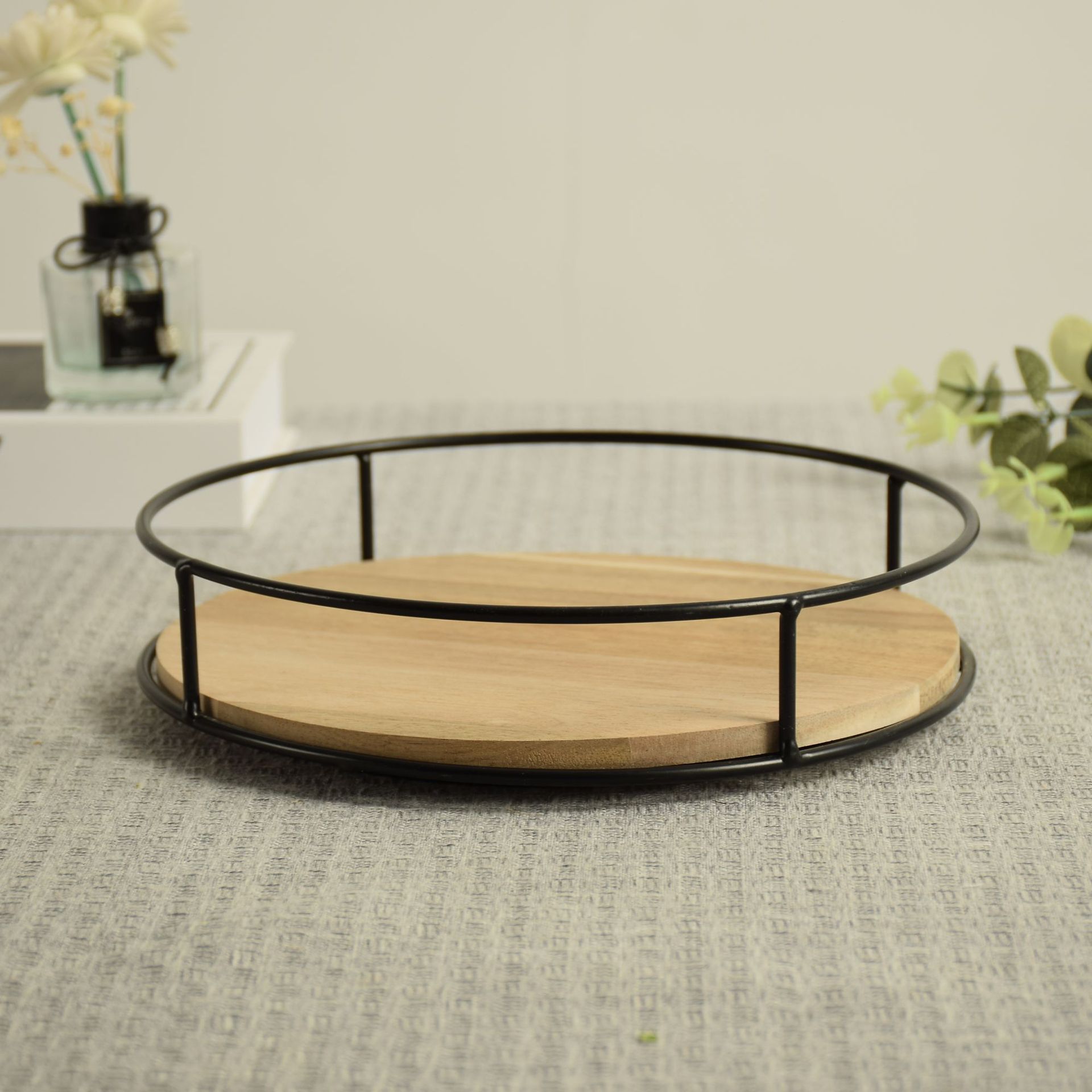 나무 회전 가능한 주방 조미료 보관 랙 빈티지 모리 디저트 과일 케이크 플레이트 화장품 보관 랙