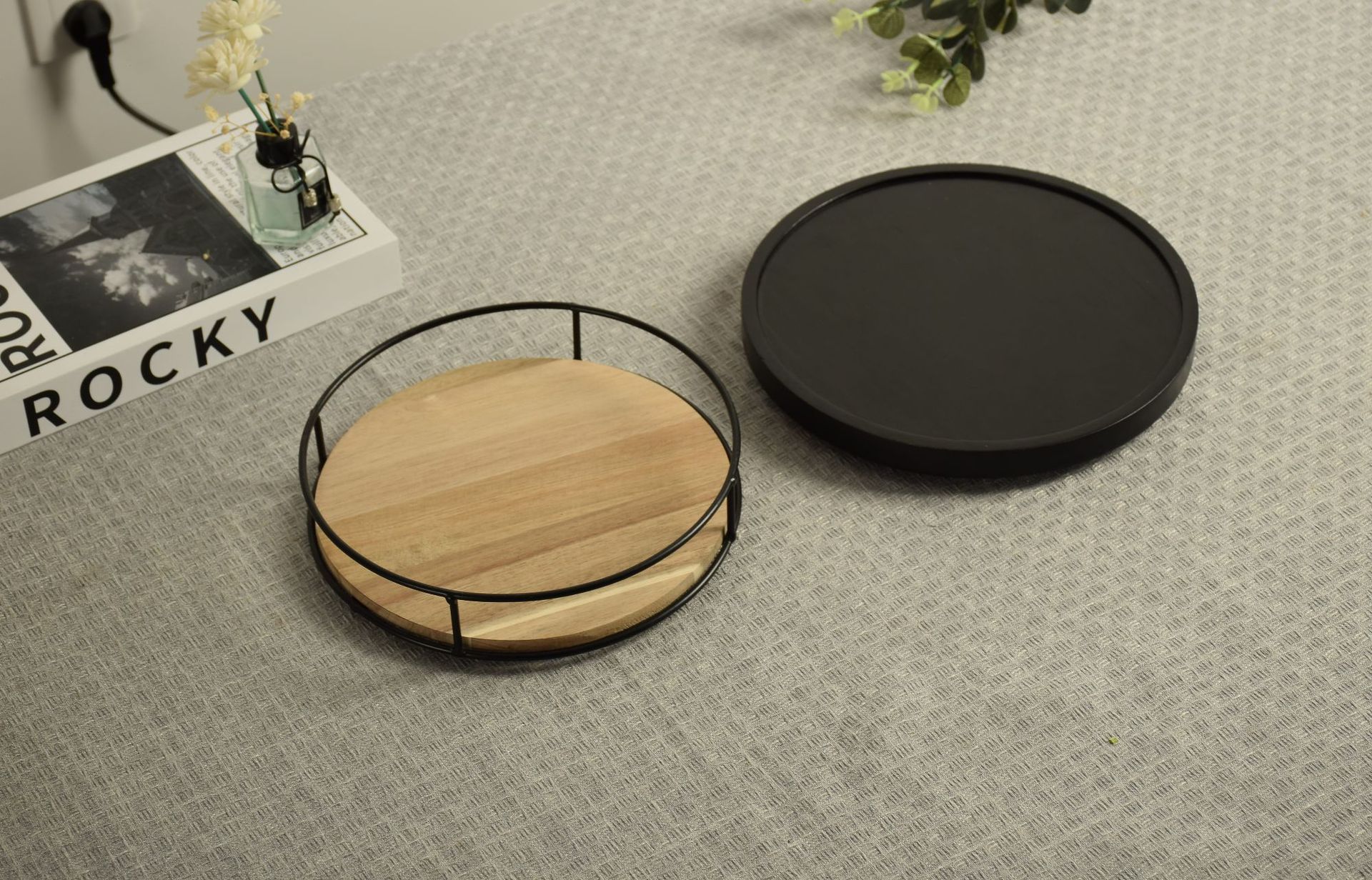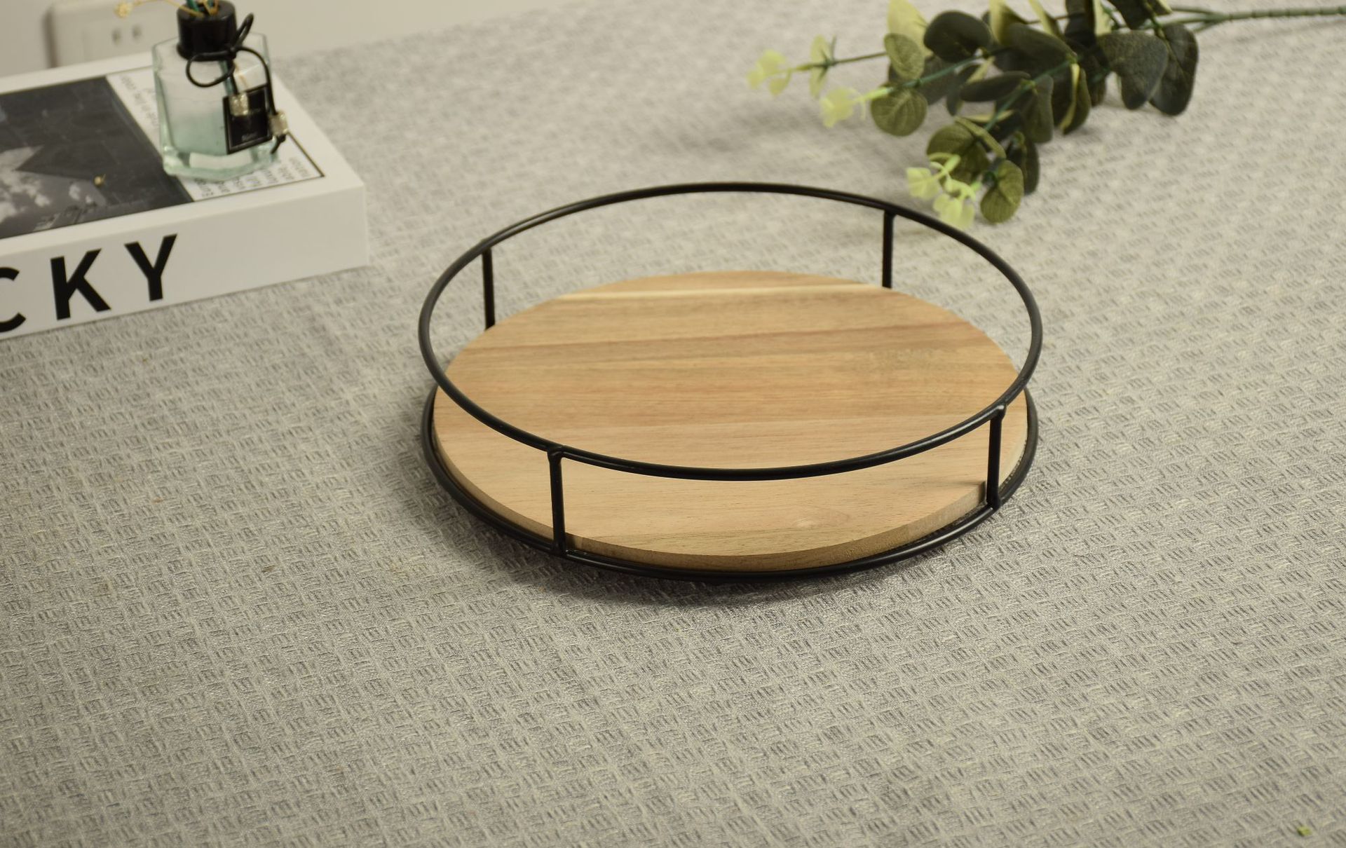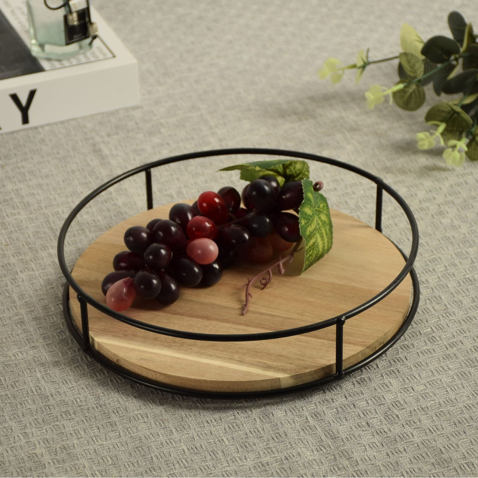 나무 회전 가능한 주방 조미료 보관 랙 빈티지 모리 디저트 과일 케이크 플레이트 화장품 보관 랙