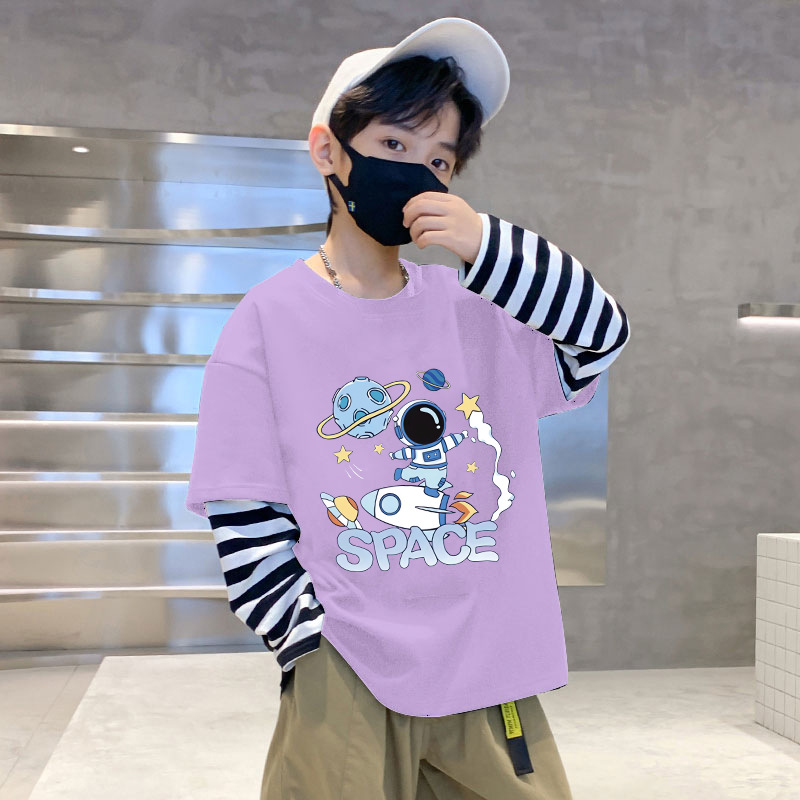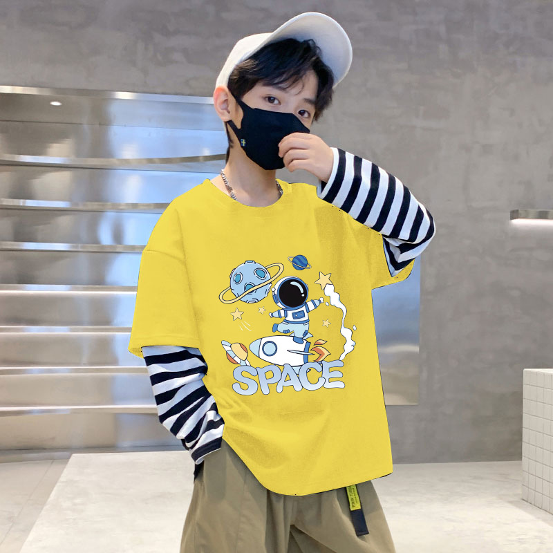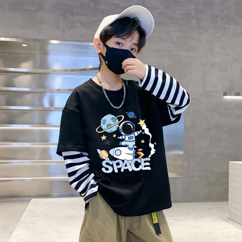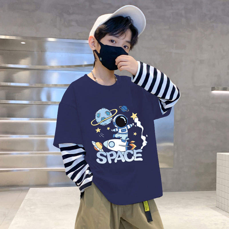G2092 # 아동복 소년 티셔츠 긴 소매 가짜 두 봄면 바닥 셔츠 새로운 어린이 소년 조수 줄무늬스토어 가기