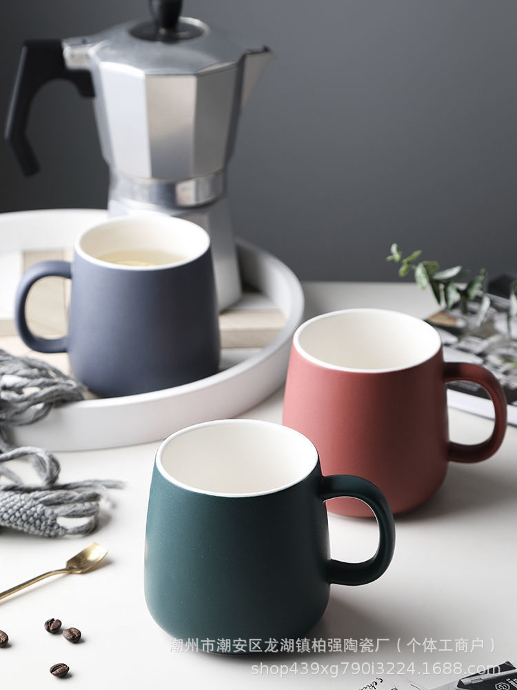 현대 간단한 머그잔 솔리드 컬러 모란디 세라믹 커피 컵 대용량 우유 컵 커플 컵 스타일 아마존