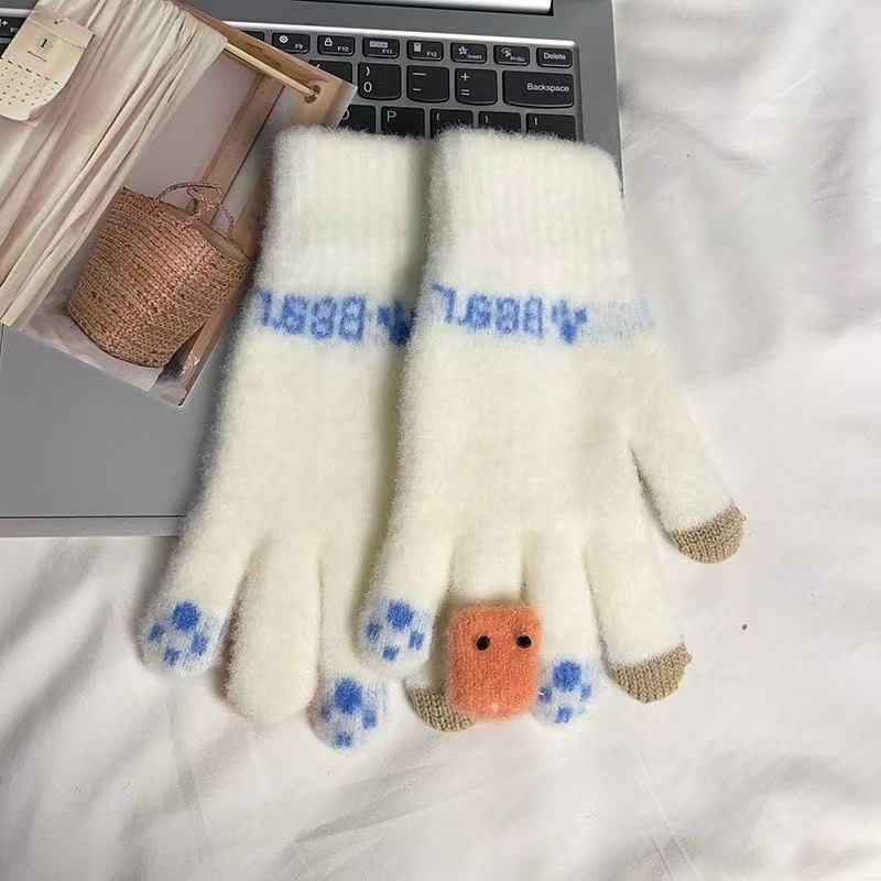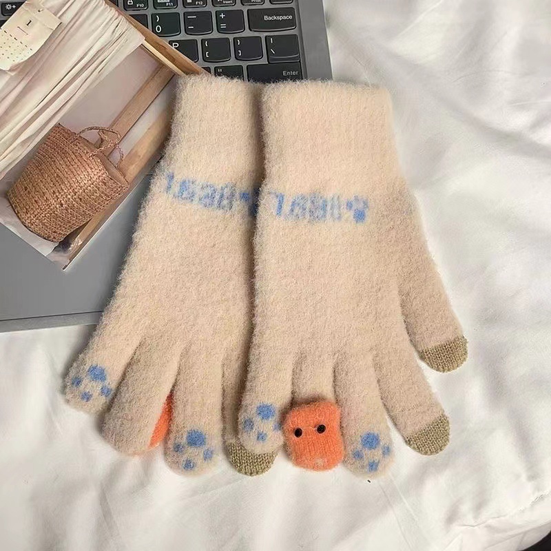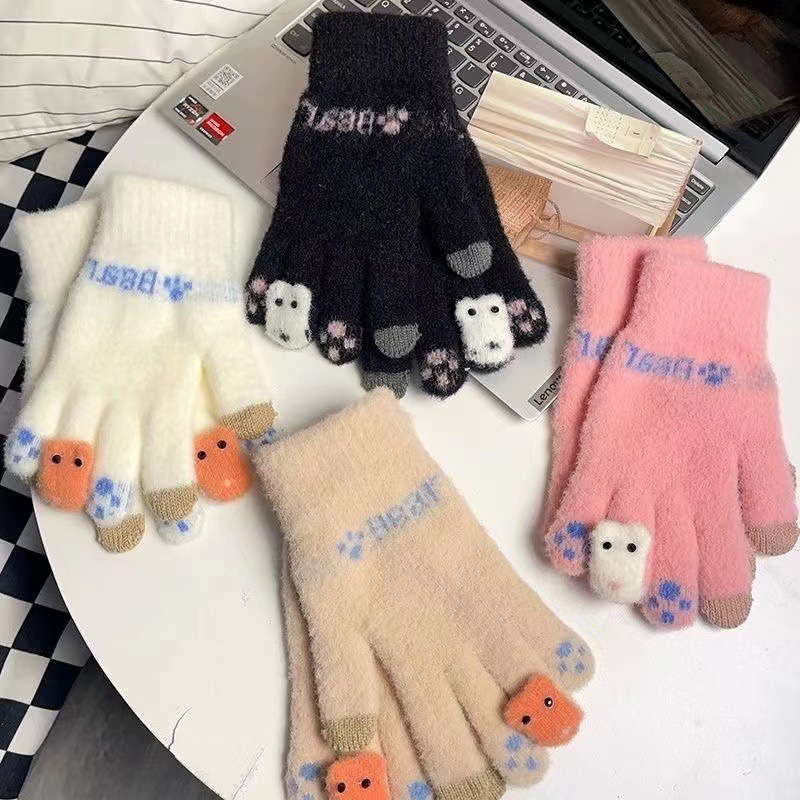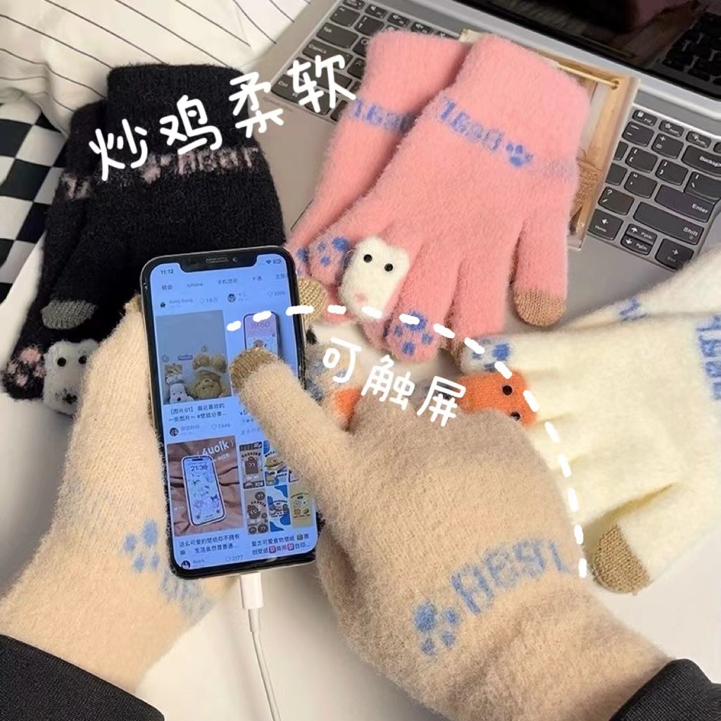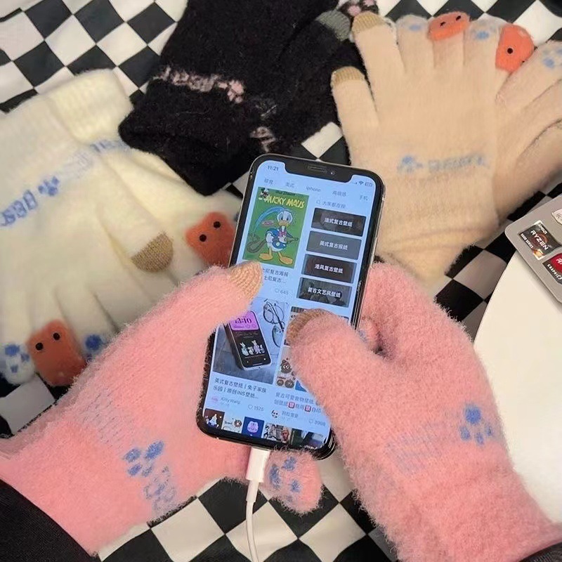 장갑 겨울 여성 Ins 귀여운 기모 따뜻한 방한 터치 스크린 부드러운 소녀 사이클링 학생 다섯 손가락 사이클링 가을과 겨울스토어 가기