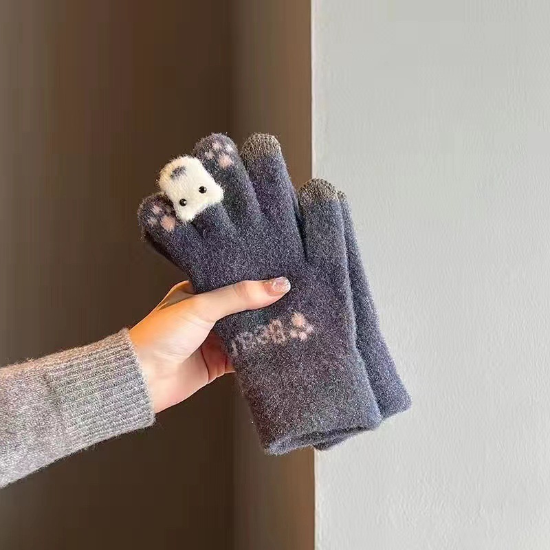 장갑 겨울 여성 Ins 귀여운 기모 따뜻한 방한 터치 스크린 부드러운 소녀 사이클링 학생 다섯 손가락 사이클링 가을과 겨울