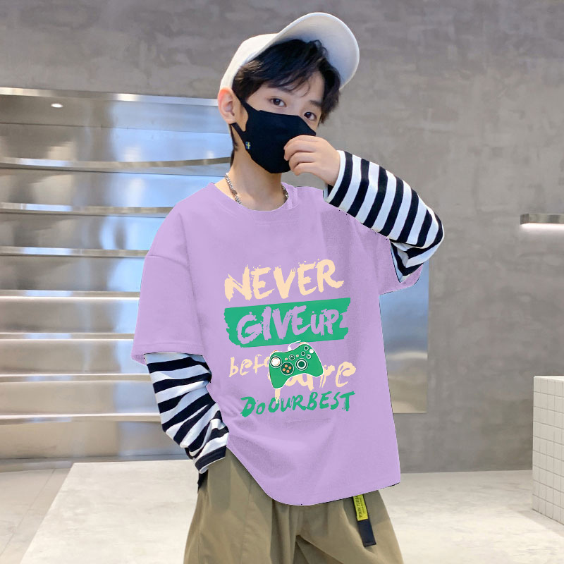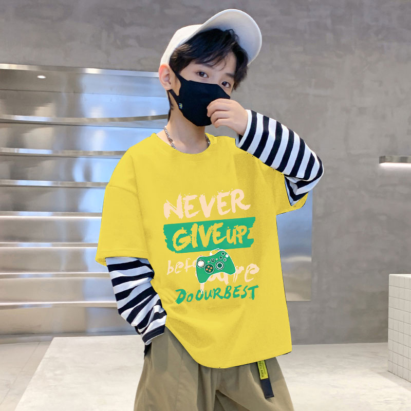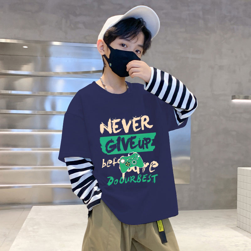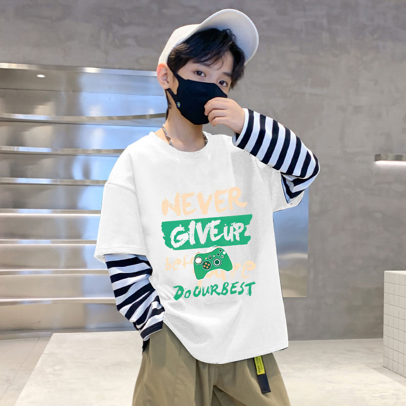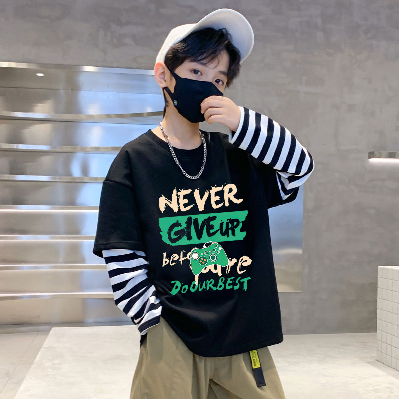 G2097 # 코튼 티셔츠 긴 소매 봄과 가을면 바닥 셔츠 소녀 가짜 투피스 코트 소년 봄 티셔츠 둥근 목스토어 가기