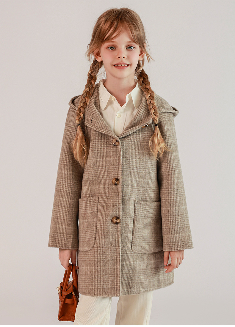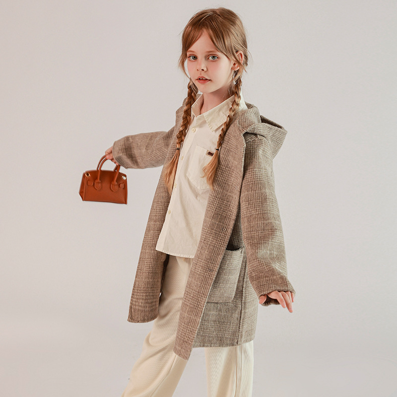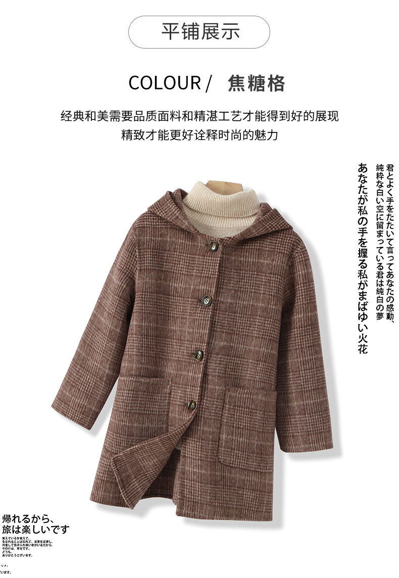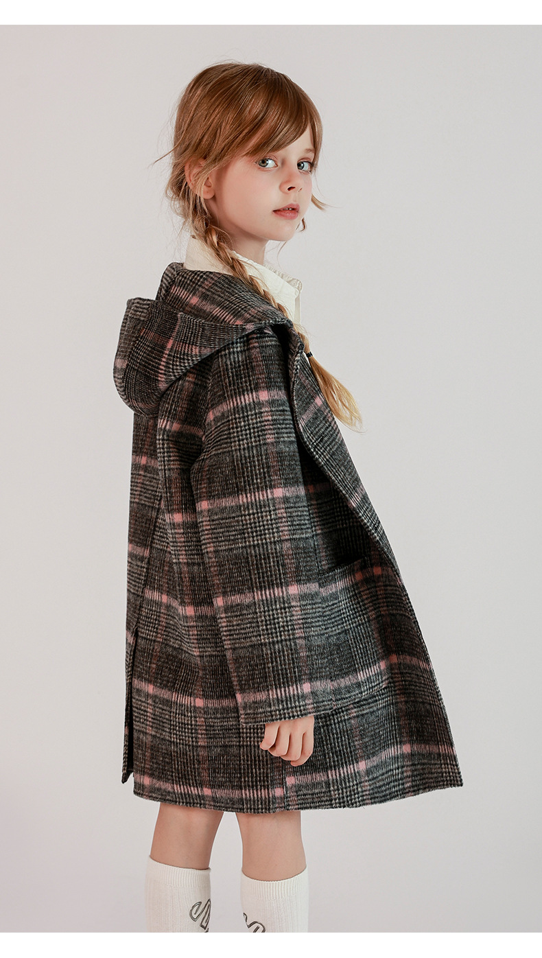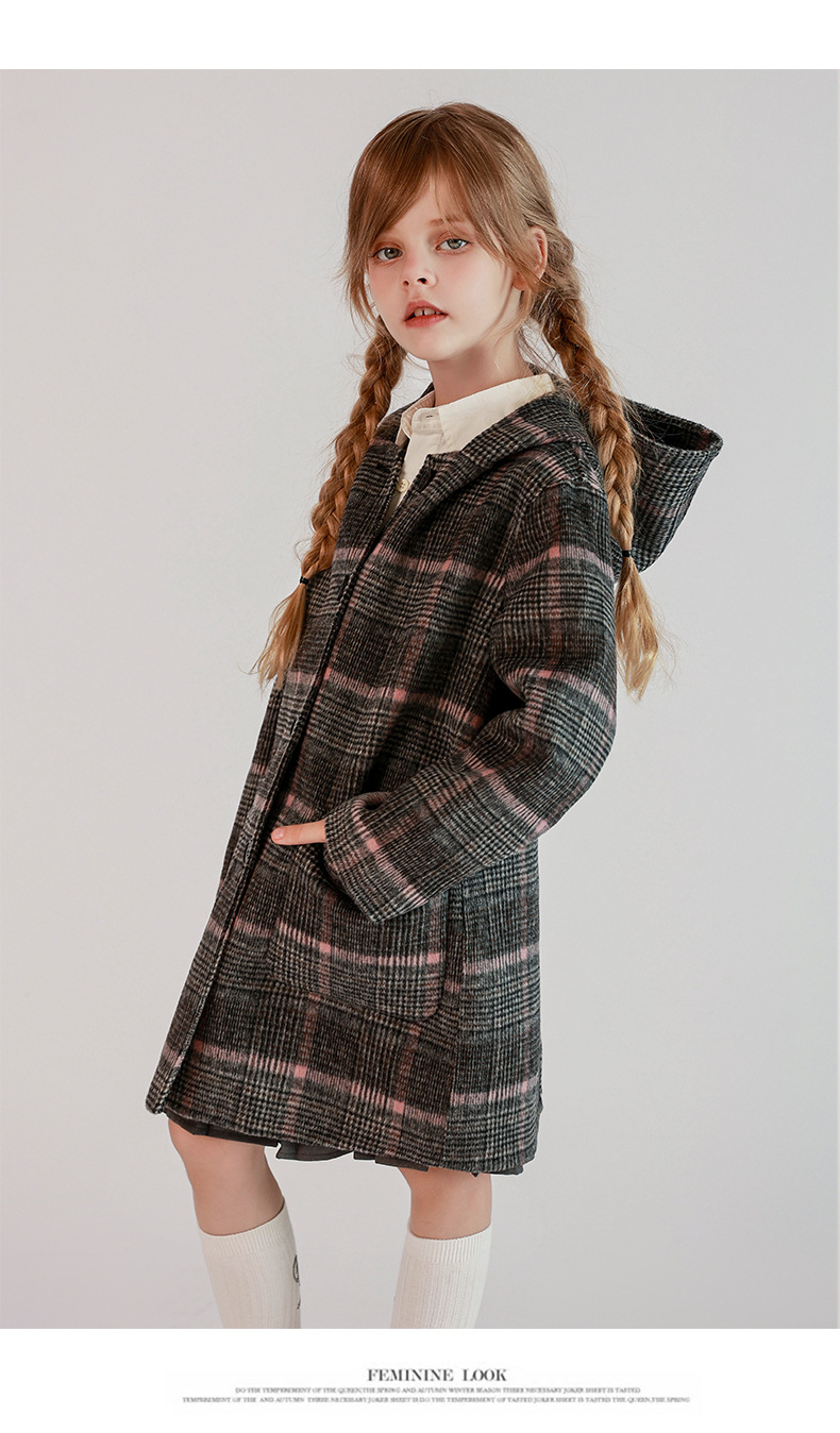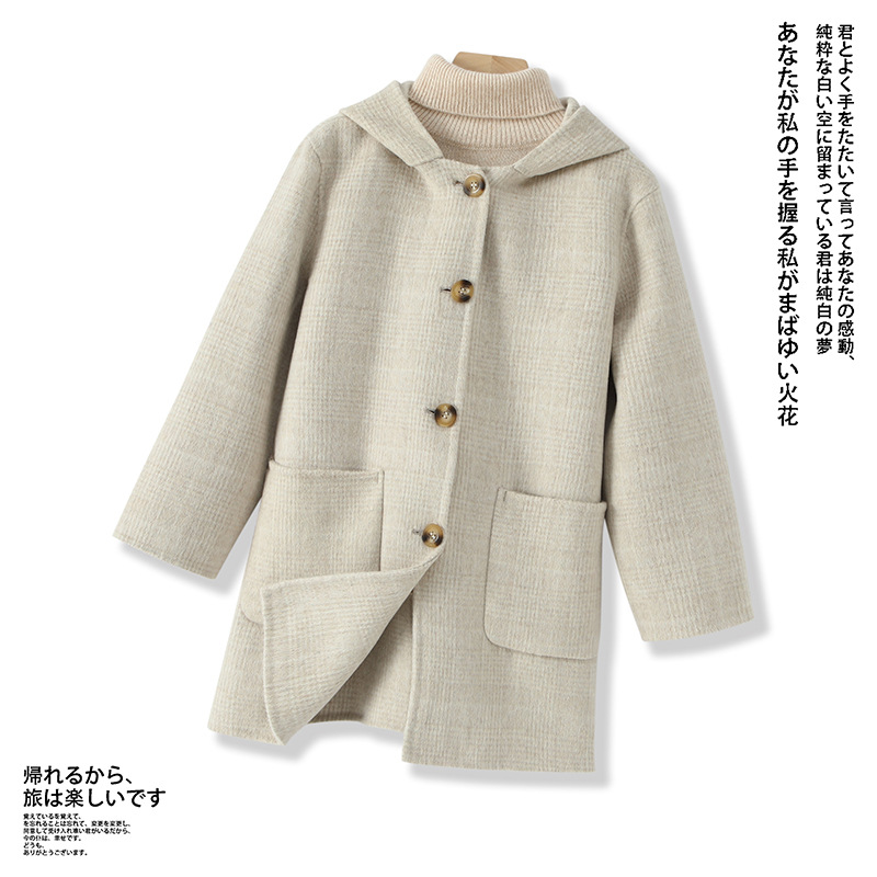 한국 아동복 어린이 양면 양면 양모 코트 2024 가을 및 겨울 원피스 대형 어린이 새 유행 후드 코트스토어 가기