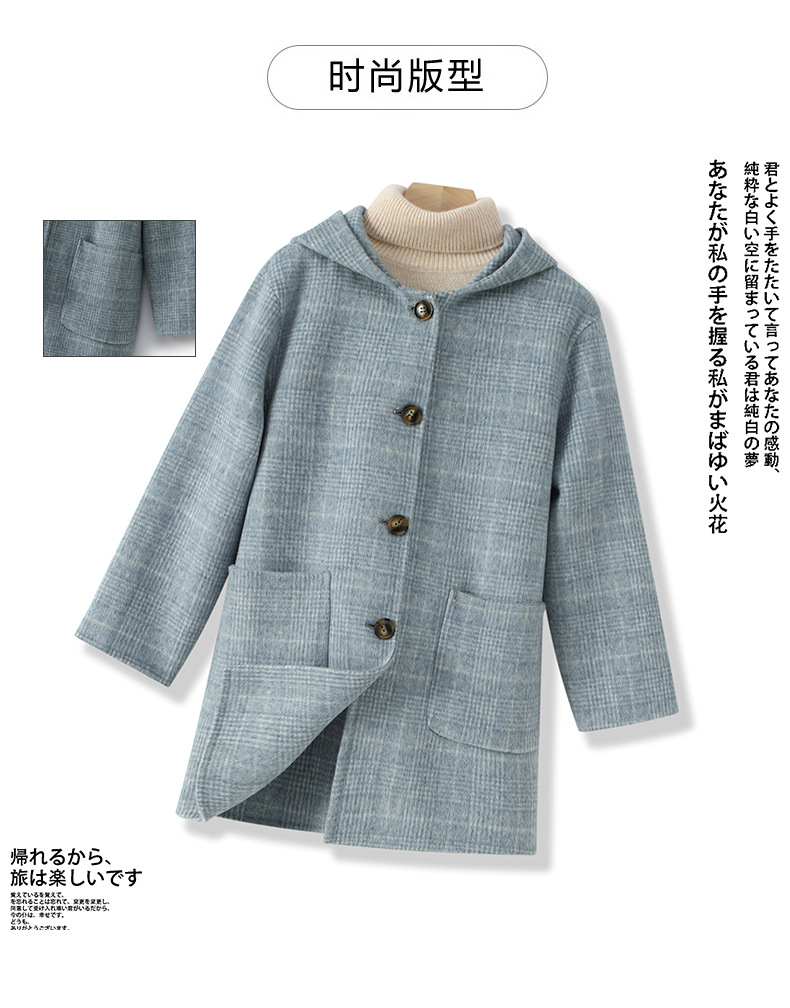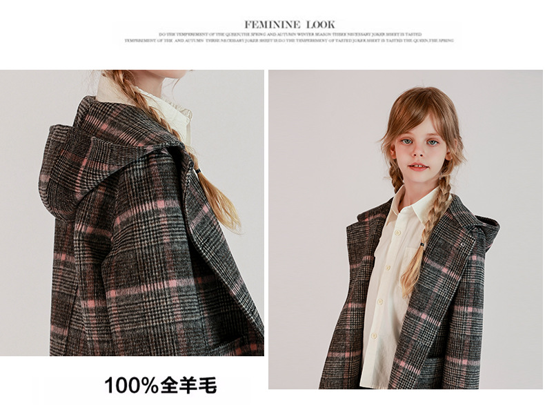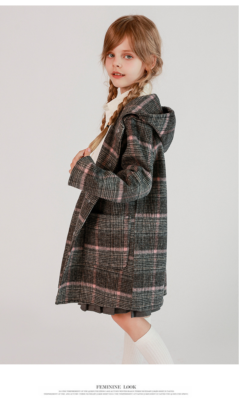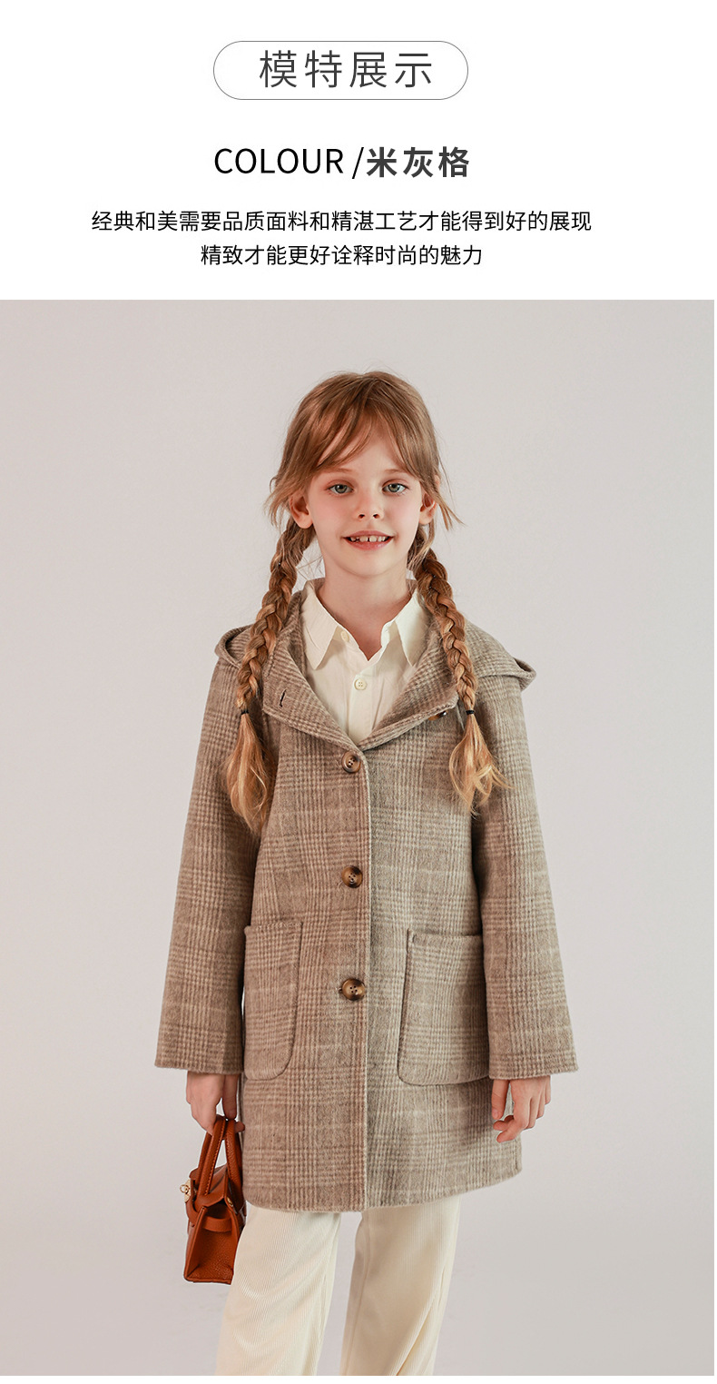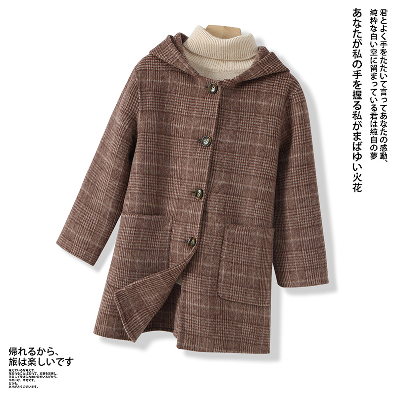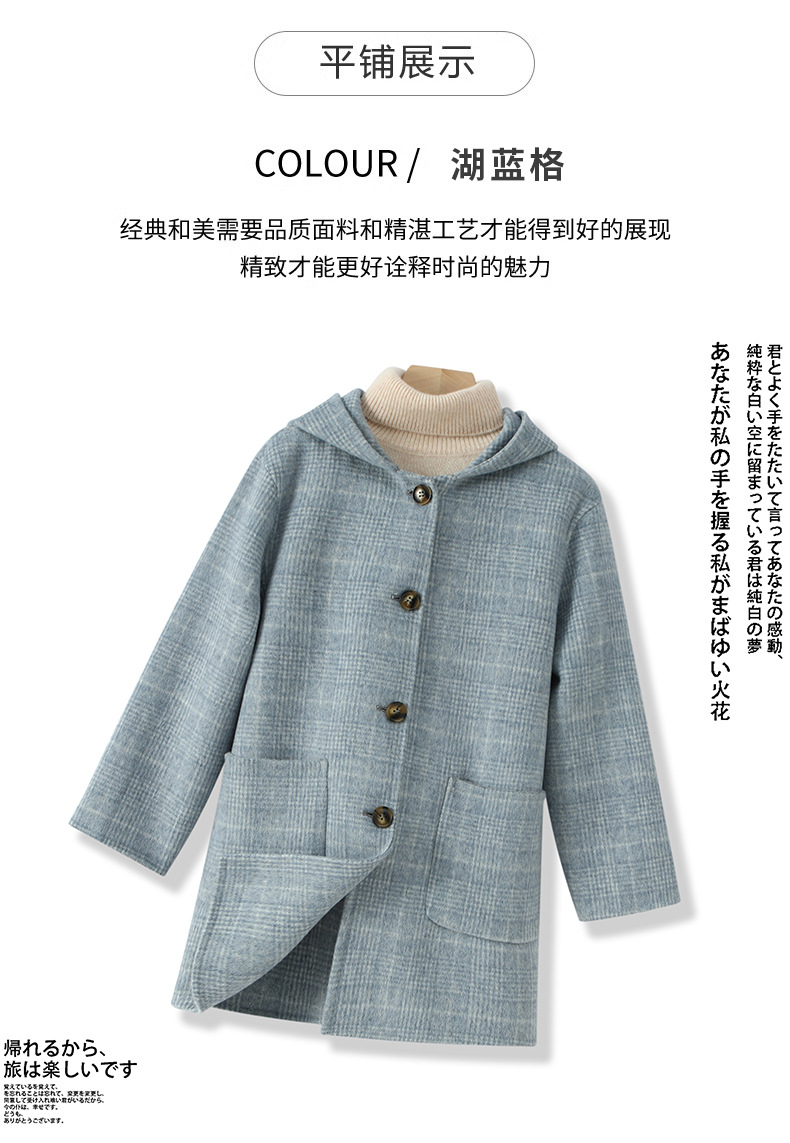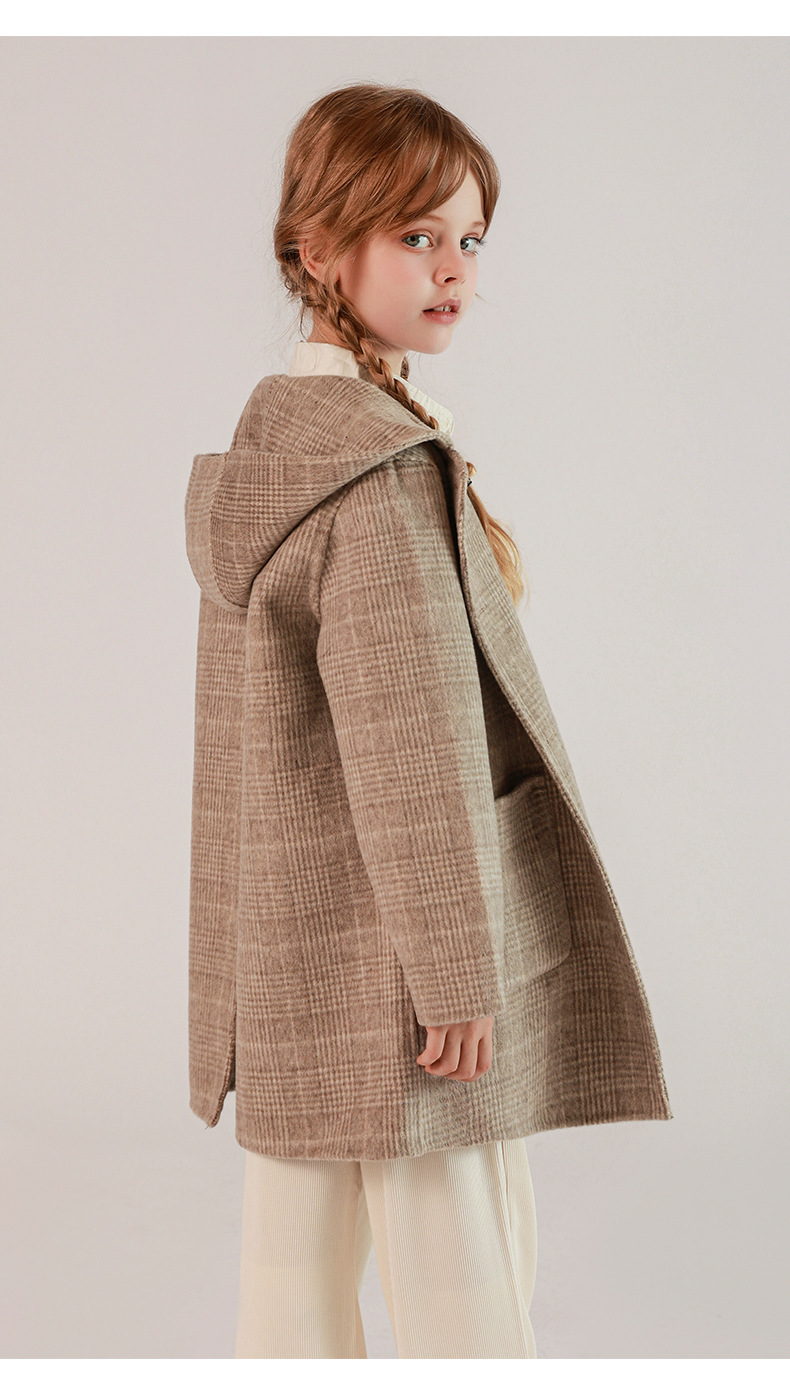 한국 아동복 어린이 양면 양면 양모 코트 2024 가을 및 겨울 원피스 대형 어린이 새 유행 후드 코트스토어 가기