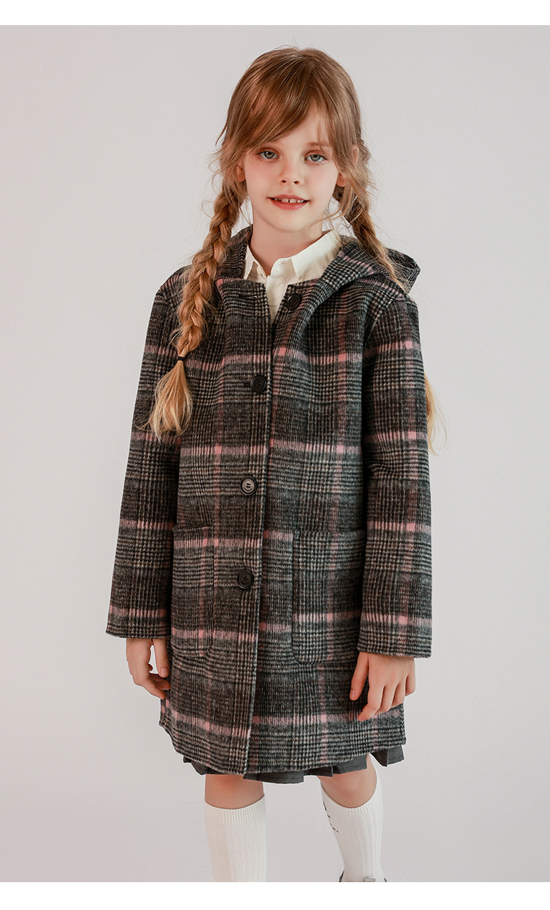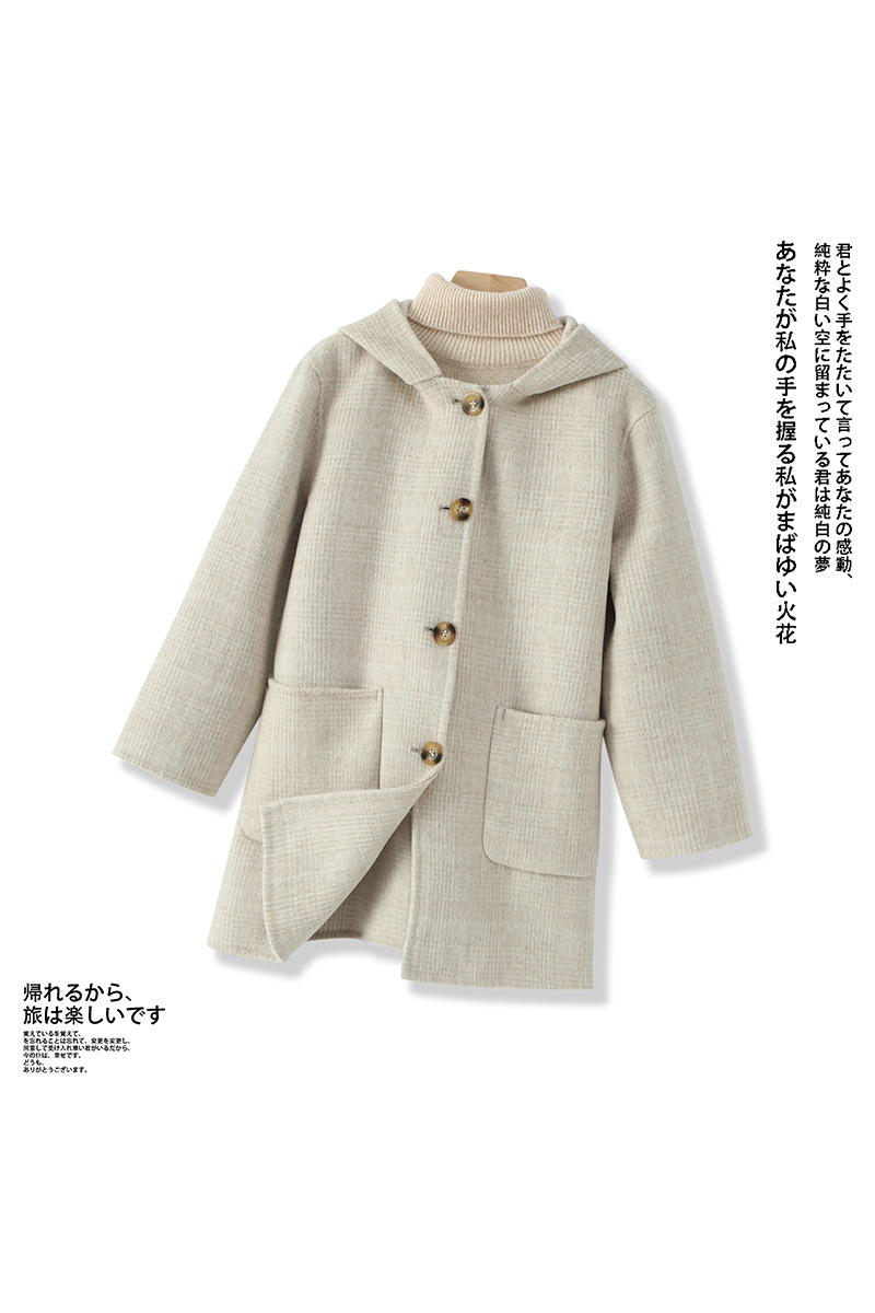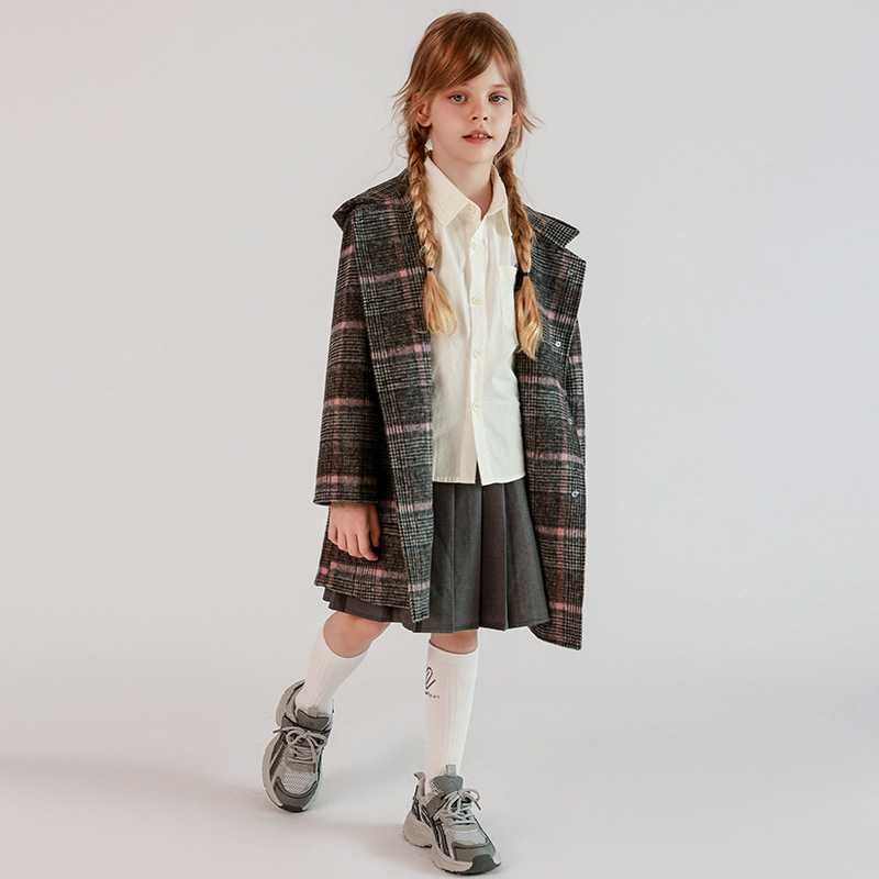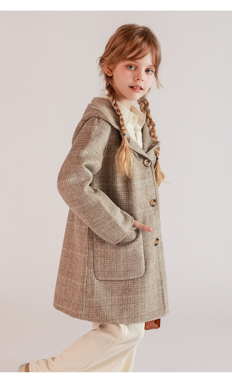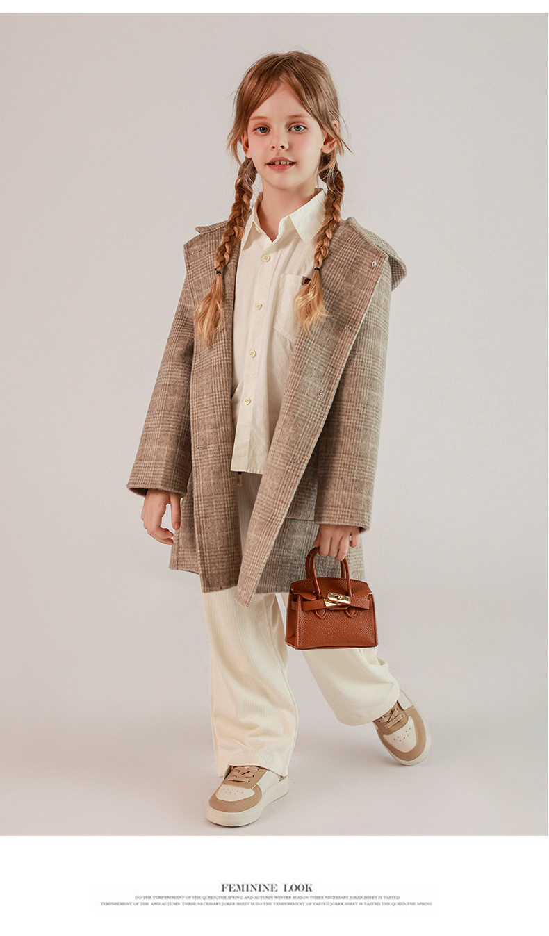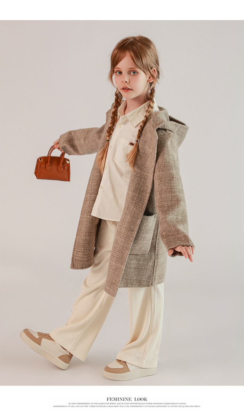 한국 아동복 어린이 양면 양면 양모 코트 2024 가을 및 겨울 원피스 대형 어린이 새 유행 후드 코트스토어 가기