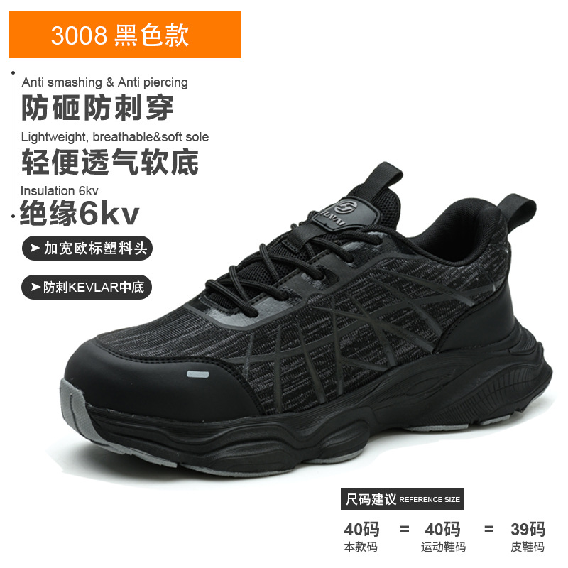 FUNAI 남성용 안전화 절연 경량 통기성 작업화 방충 방습 플라스틱 토캡 미끄럼 방지
