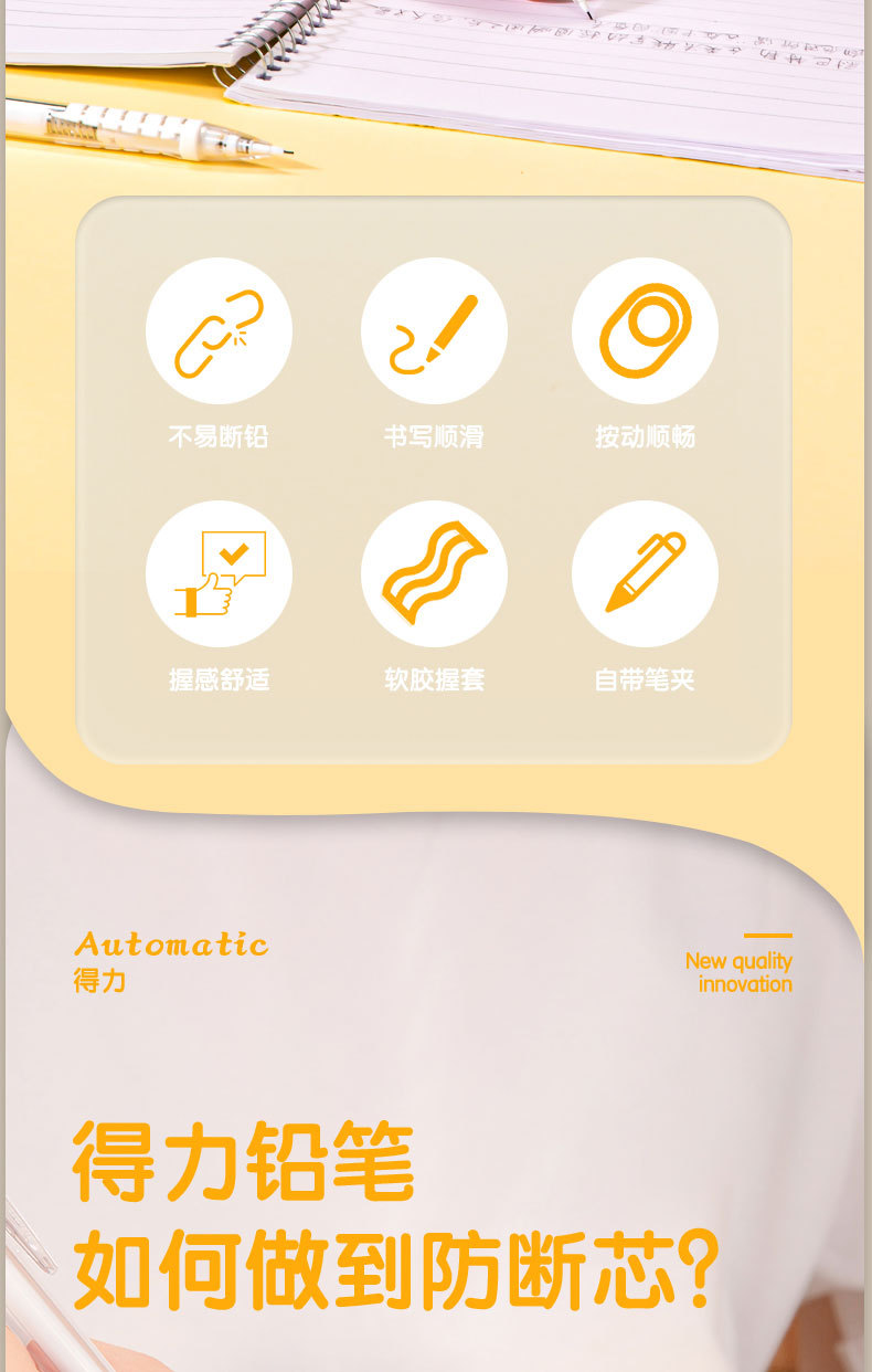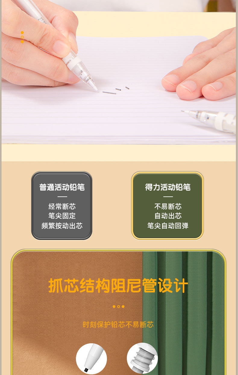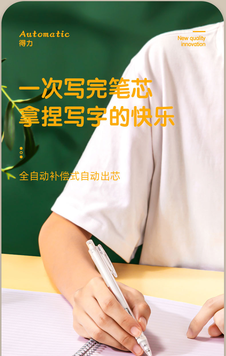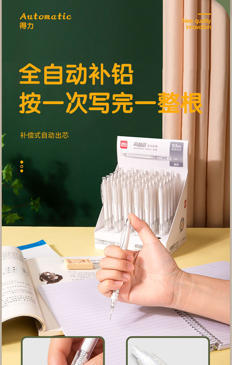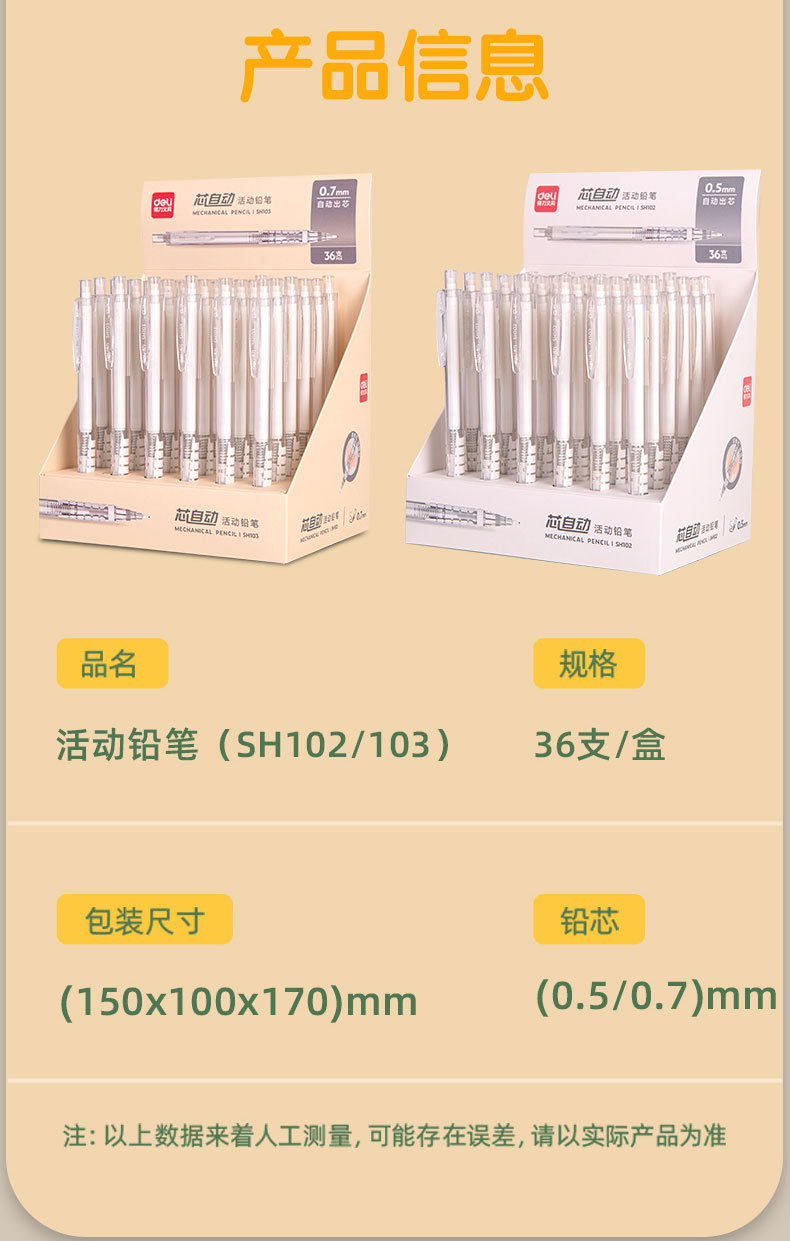 델리 SH102/SH103 기계식 연필 0.5mm 프레스 연필 0.7mm 활성 연필 지우개스토어 가기