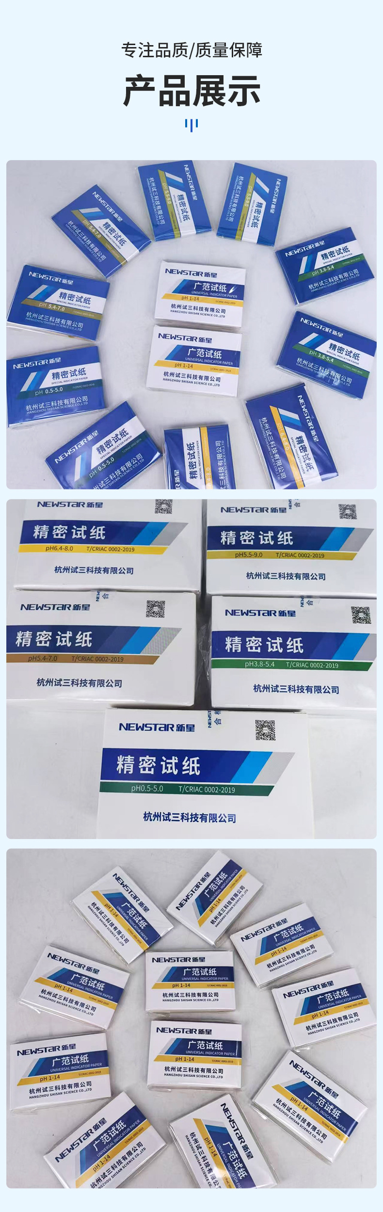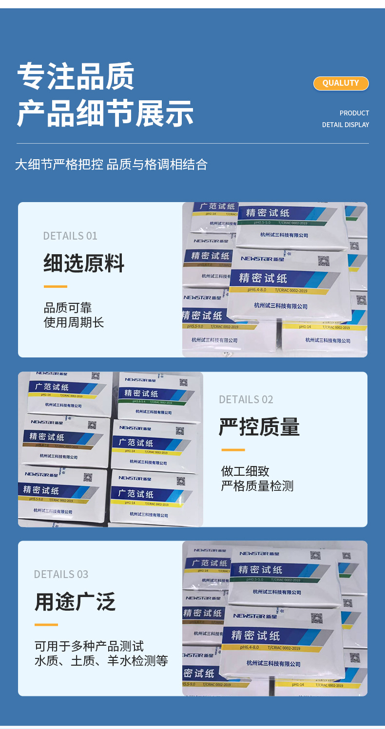 항저우 시험 3 개의 새로운 별 ph 광범위한 시험 용지 1-14 pH 시험 화장품 효소 수족관 수질 시험지