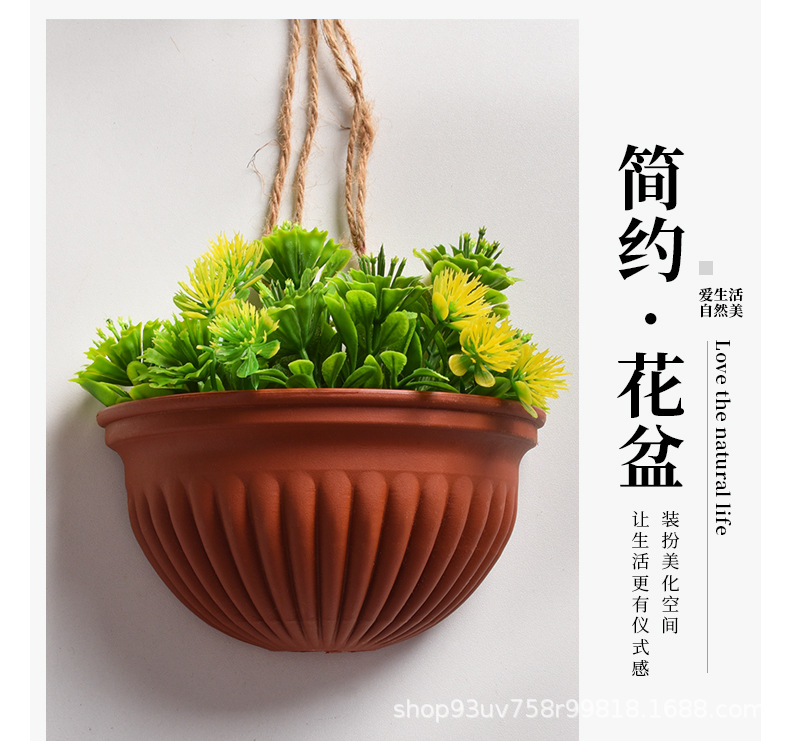 • 6802 단일 구멍 플라스틱 벽걸이 화분 브라운 30*24*19