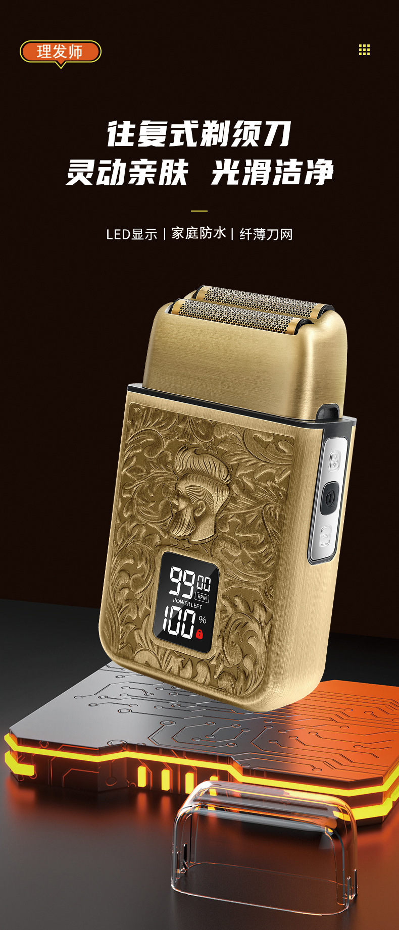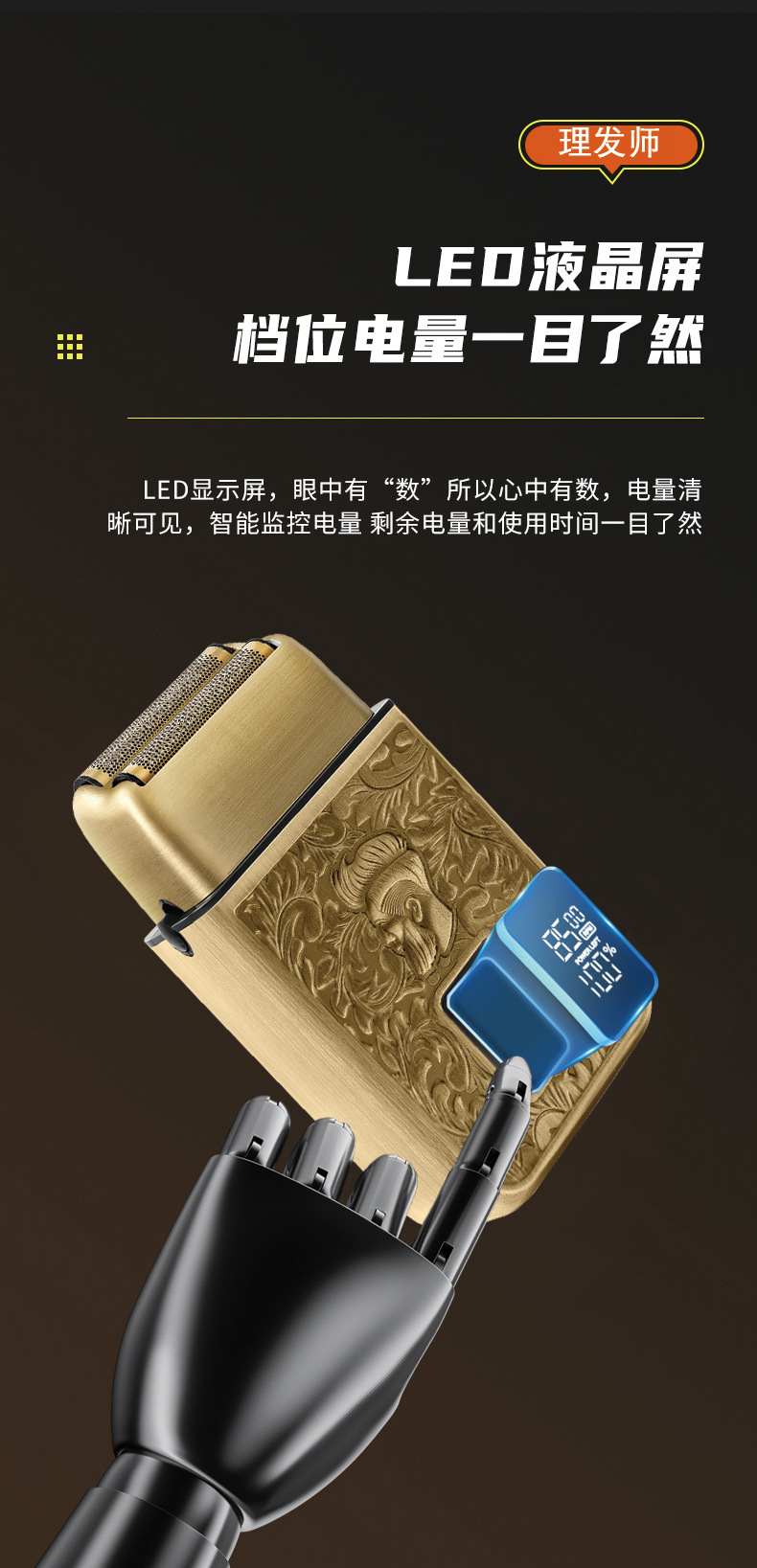 국경 간 복고풍 미백 장치 왕복 더블 레이어 면도기 디지털 디스플레이 전기 셀프 서비스 헤어 클리퍼 대머리 오일 헤드 이발스토어 가기