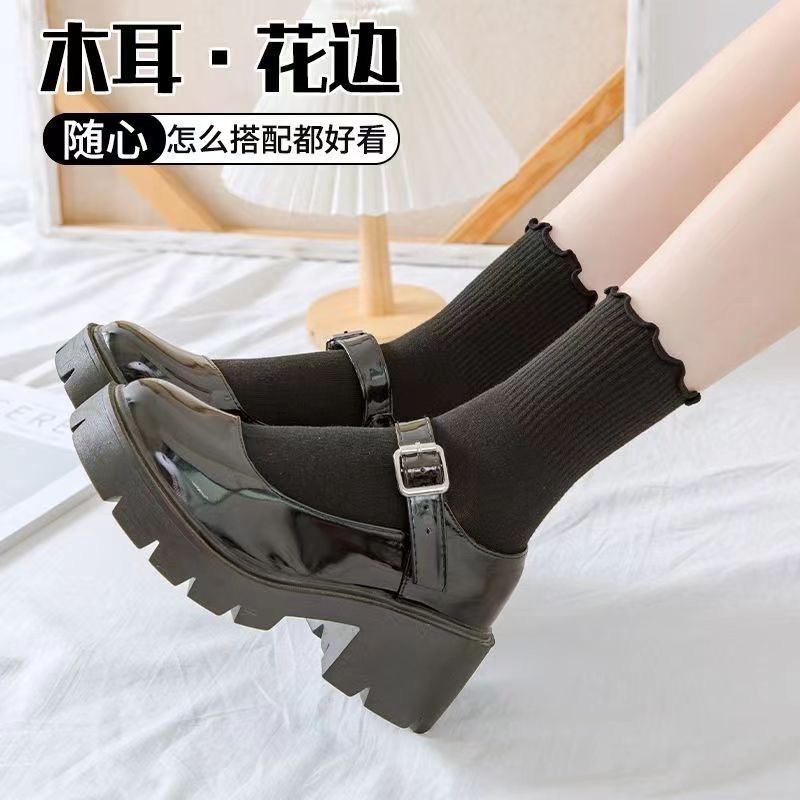 우드 이어 양말 여성 튜브 양말 타이드 일본 jk 가을과 겨울 더미 양말 레이스 스타킹 귀여운 헤어 스타일
