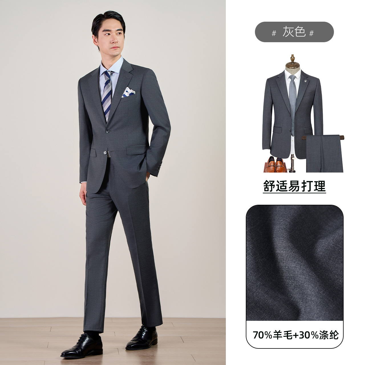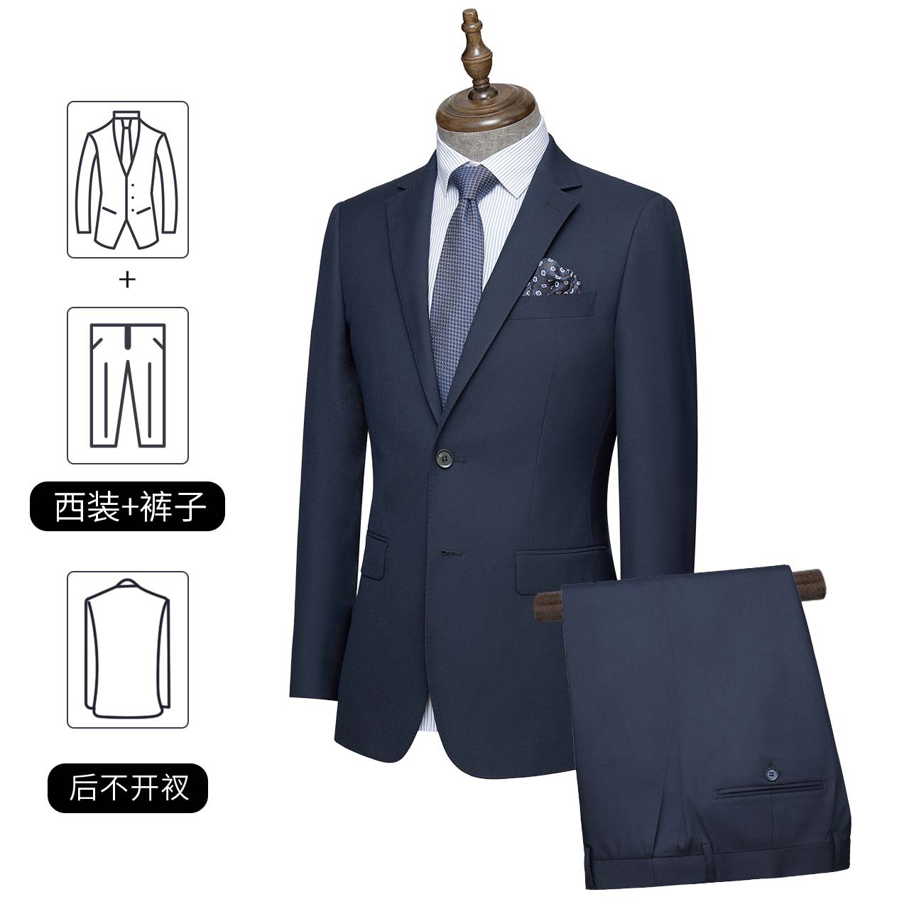 产品只含西服和西裤,衬衫、领带等搭配和配饰需单独购买!