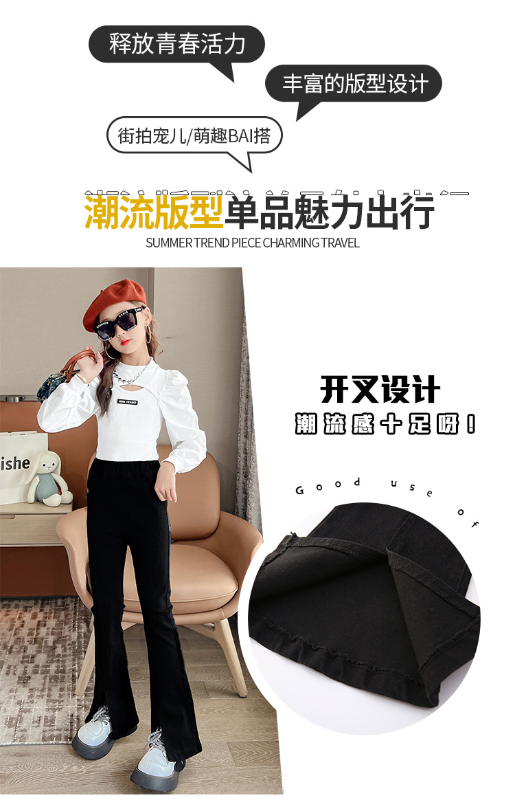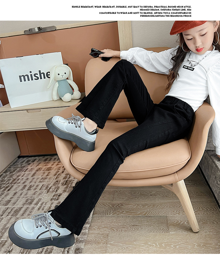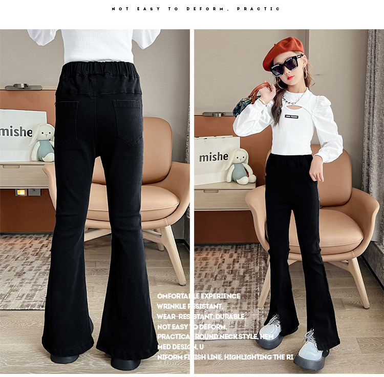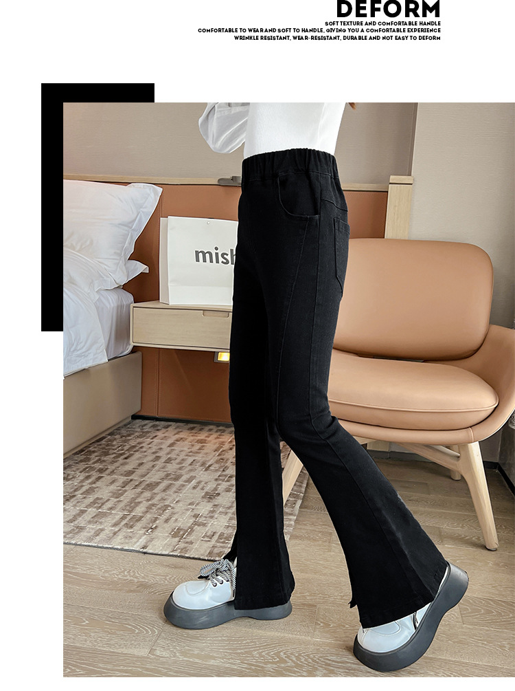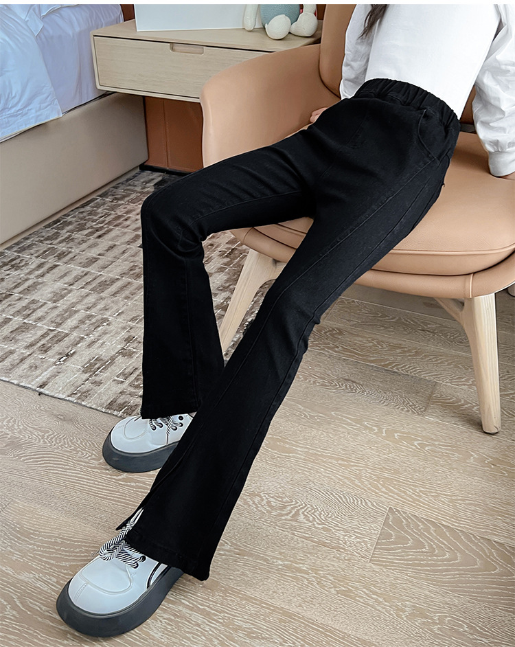 소녀의 검은색 신축성 있는 슬릿 플레어 팬츠 가을 겨울 새 청바지 어린 소녀의 벨벳 두꺼운 슬림 긴 바지스토어 가기