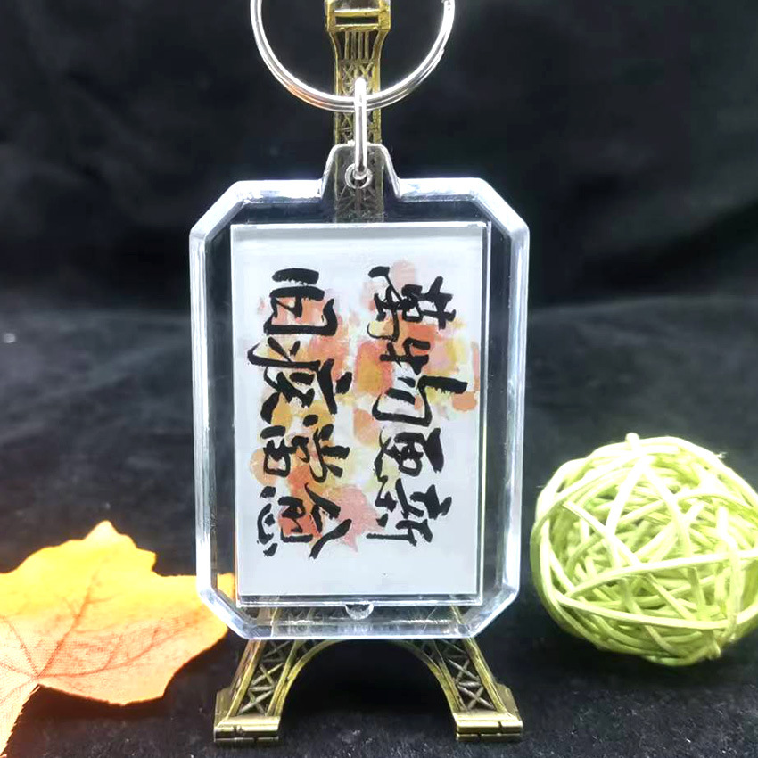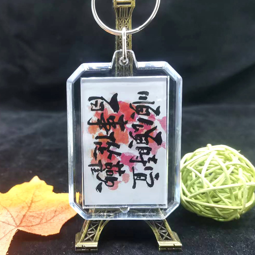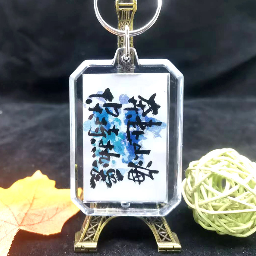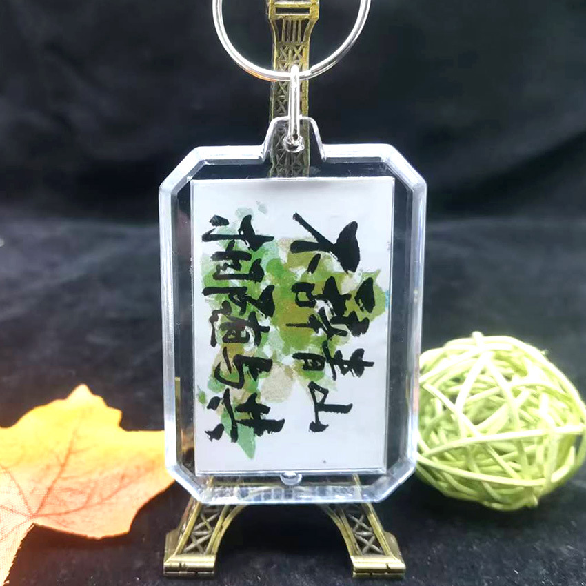 중국 스타일 서예 키 체인 양면 영감 텍스트 창조적 인 경치 명소 키 링 펜던트 학생 졸업 시즌 선물