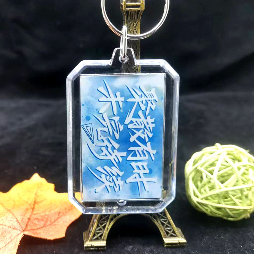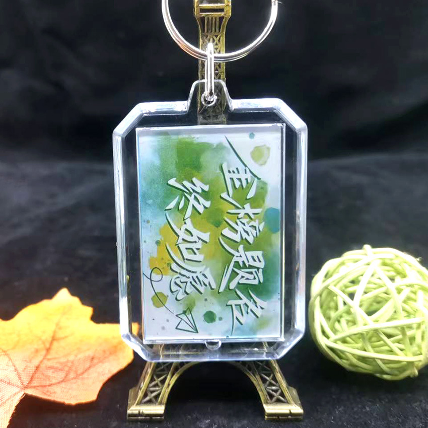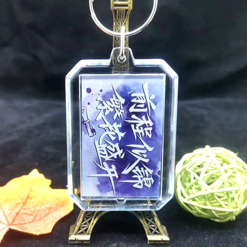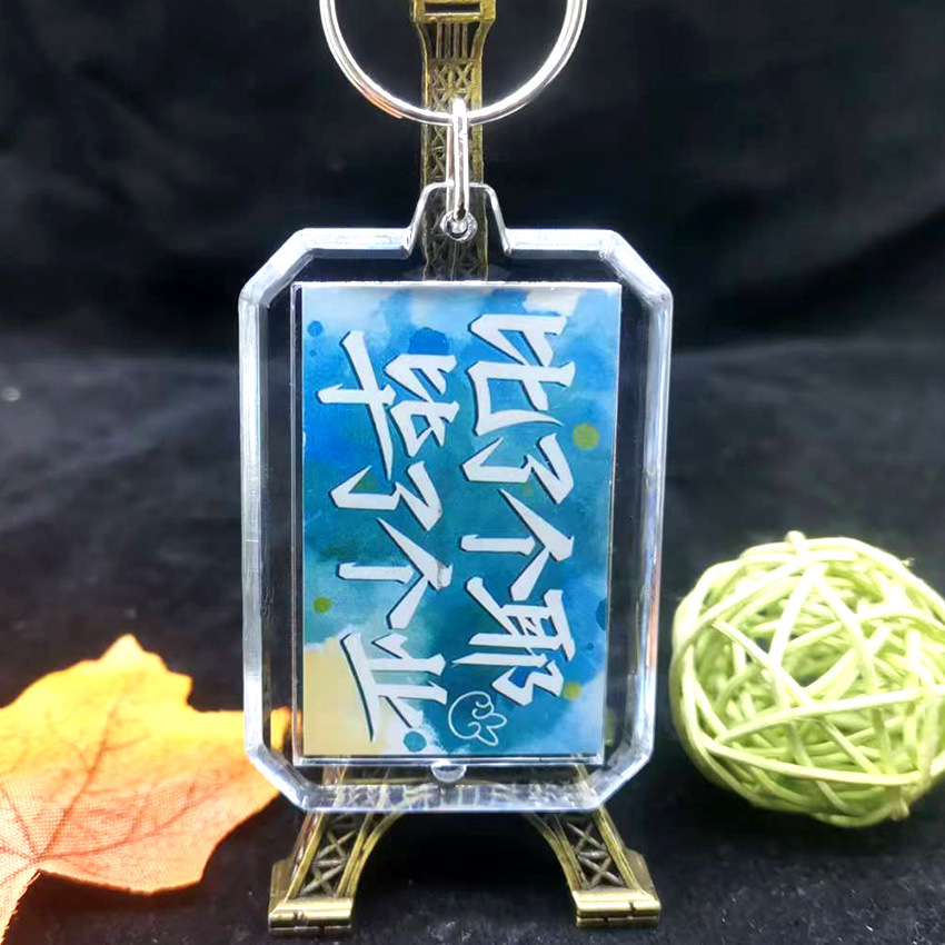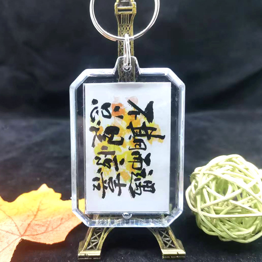 중국 스타일 서예 키 체인 양면 영감 텍스트 창조적 인 경치 명소 키 링 펜던트 학생 졸업 시즌 선물