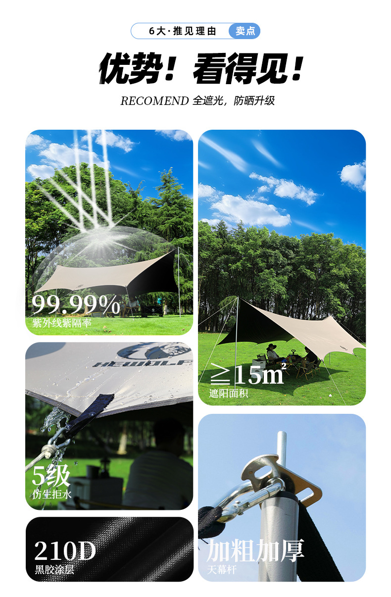 공롱 아웃도어 캠핑 블랙글루 텐트, 야외 해변 캠핑용 자외선 차단 텐트, 휴대용 옥스포드 천막스토어 가기