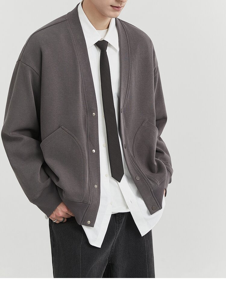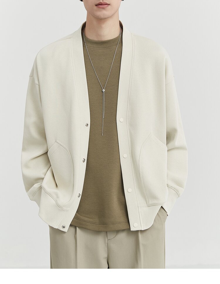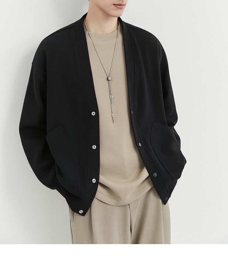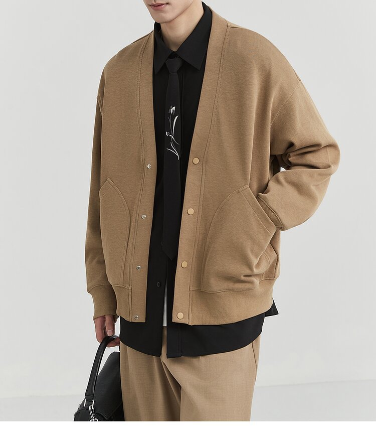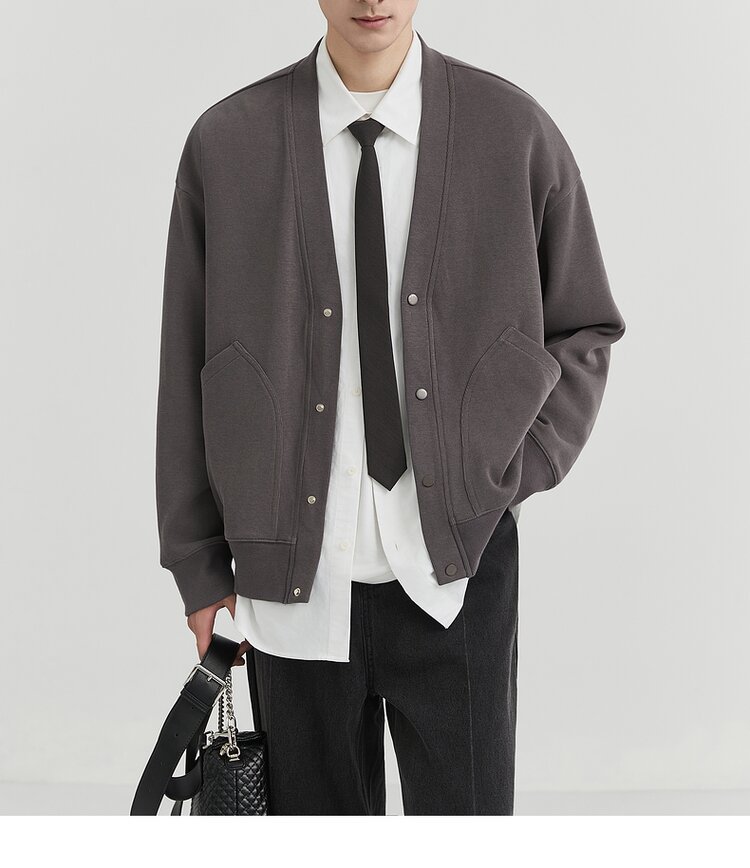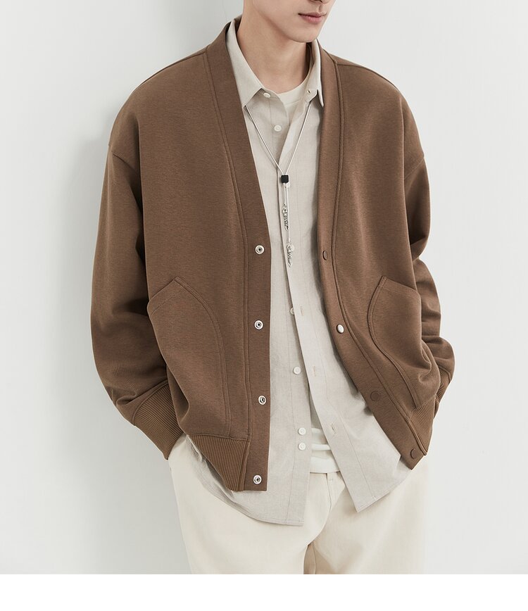 남성복 24 봄/가을 신상 디자인 맞춤 제작 브이넥 가디건 스웨트셔츠 남성용 한국 스타일 단색 출퇴근용 재킷