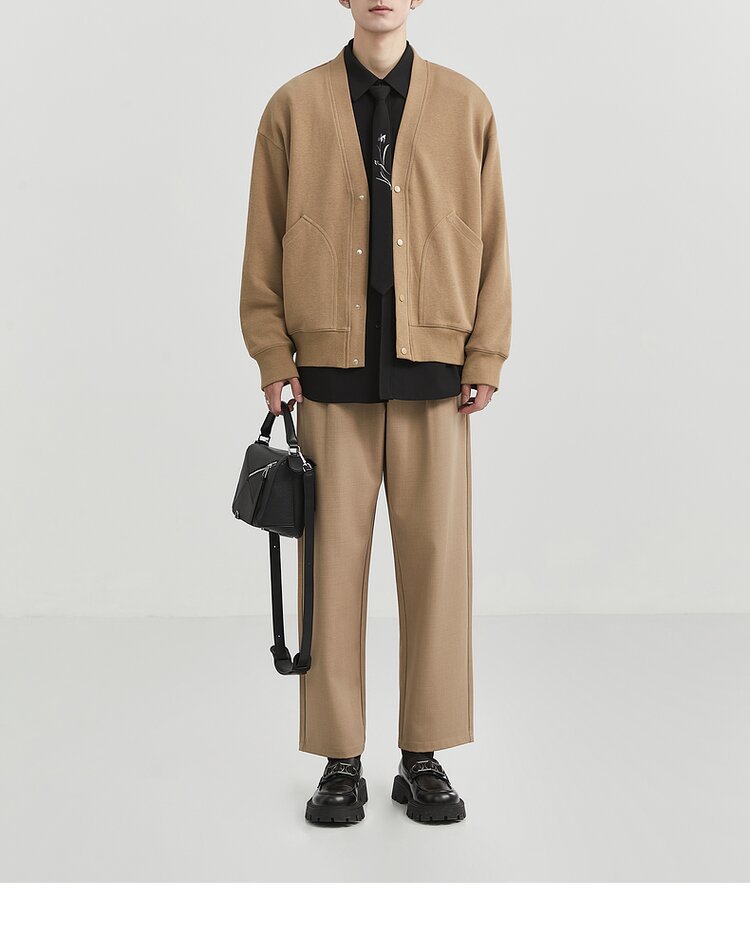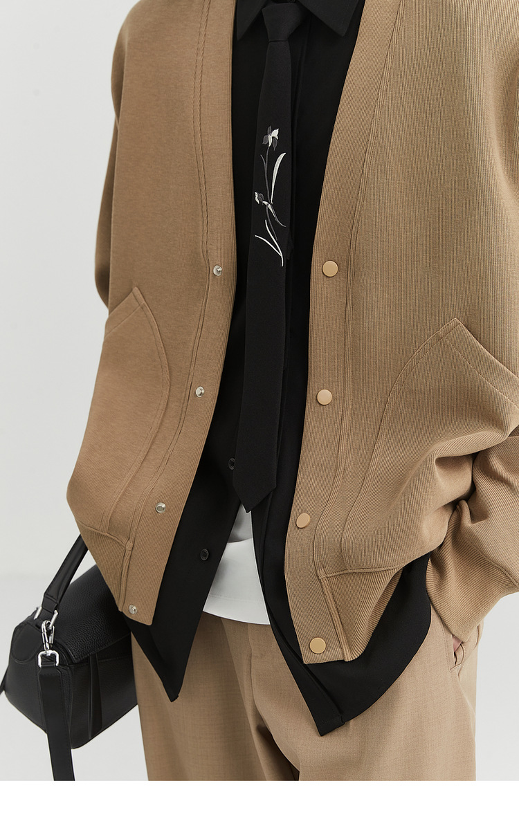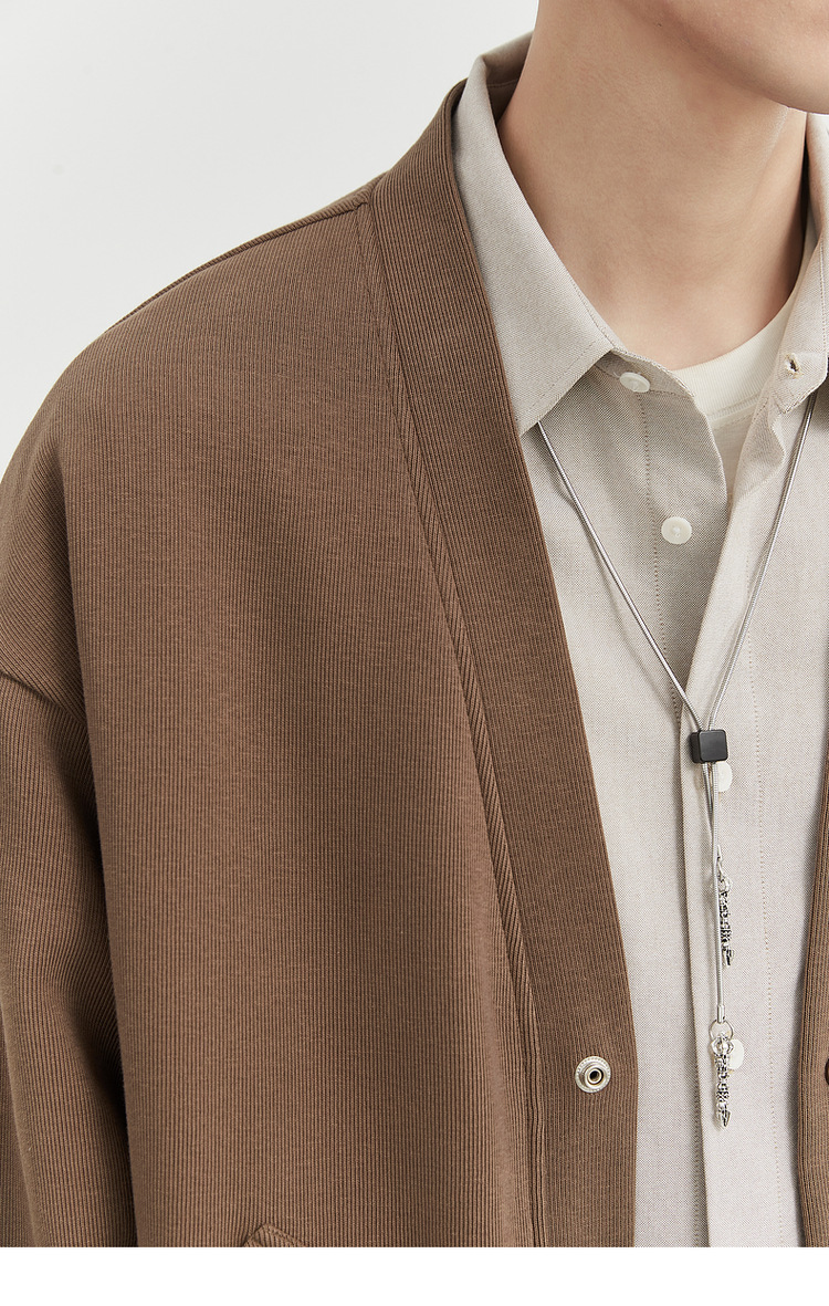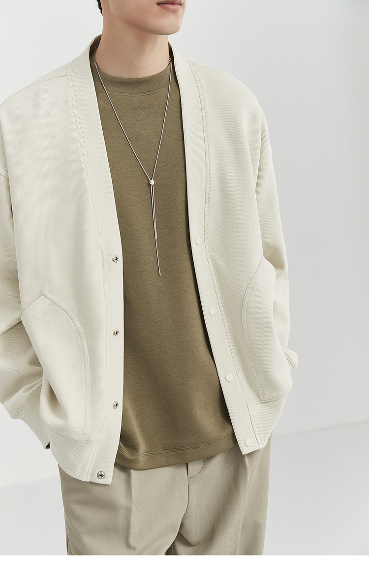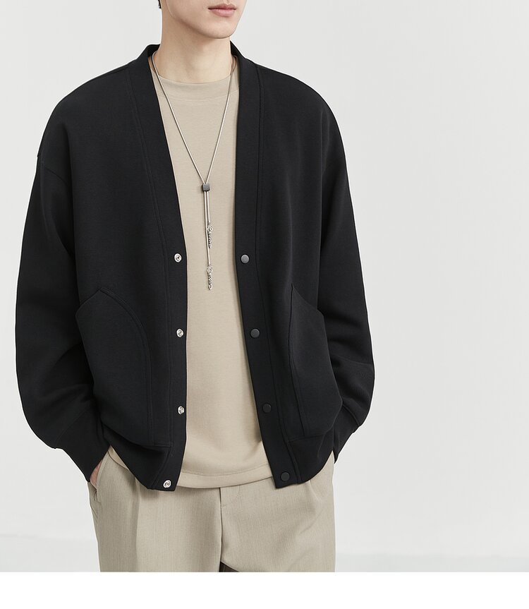 남성복 24 봄/가을 신상 디자인 맞춤 제작 브이넥 가디건 스웨트셔츠 남성용 한국 스타일 단색 출퇴근용 재킷