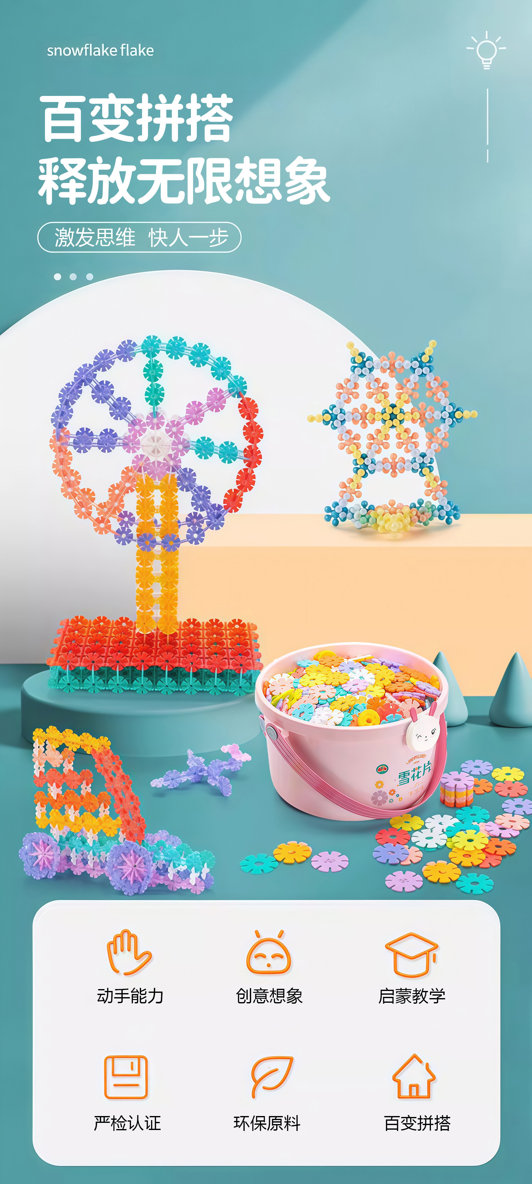 대형 눈꽃 조각 어린이 블록 장난감, 두꺼운 조립식 눈꽃 조각, 어린이 교육용 조립 블록 장난감