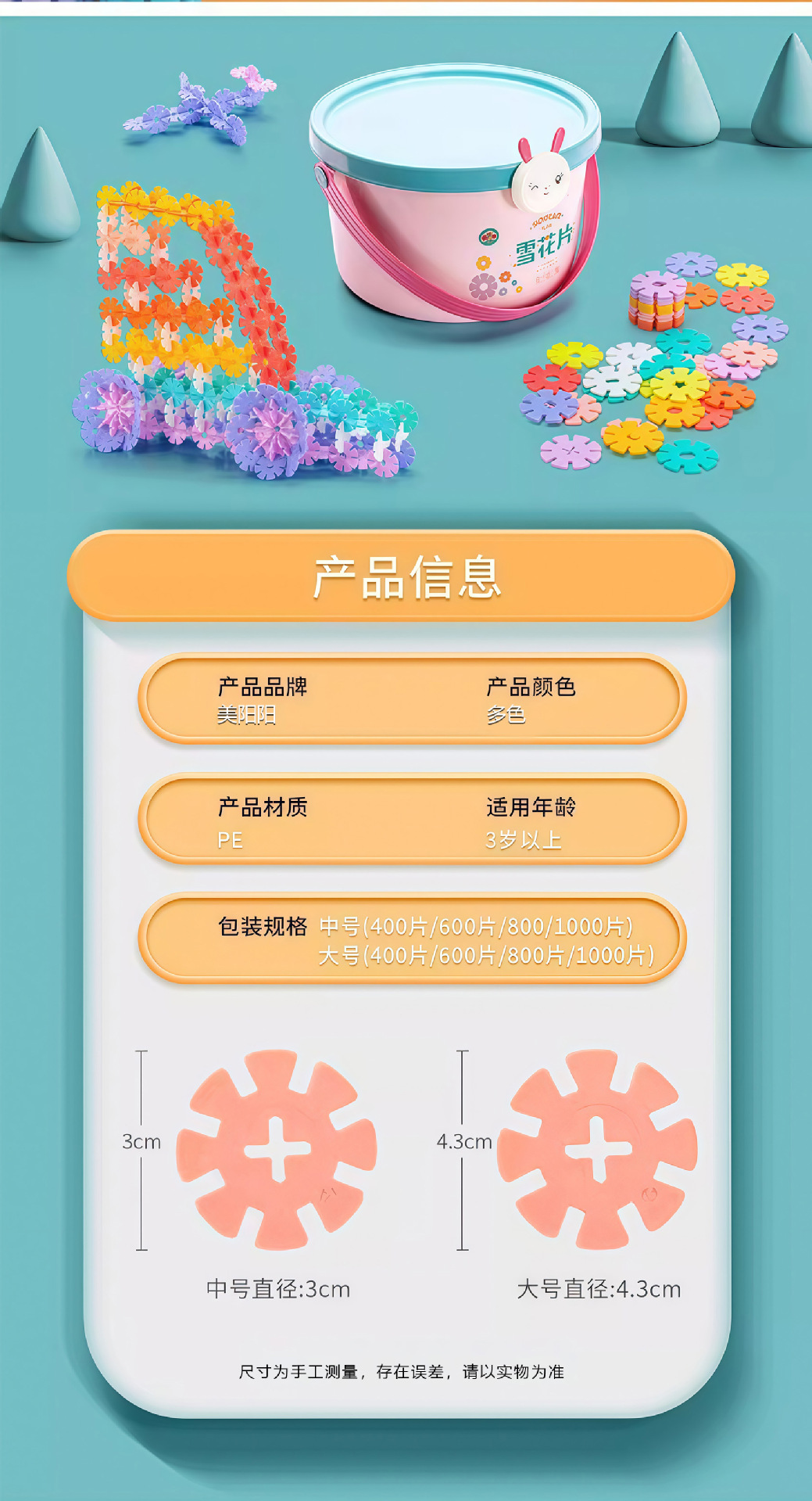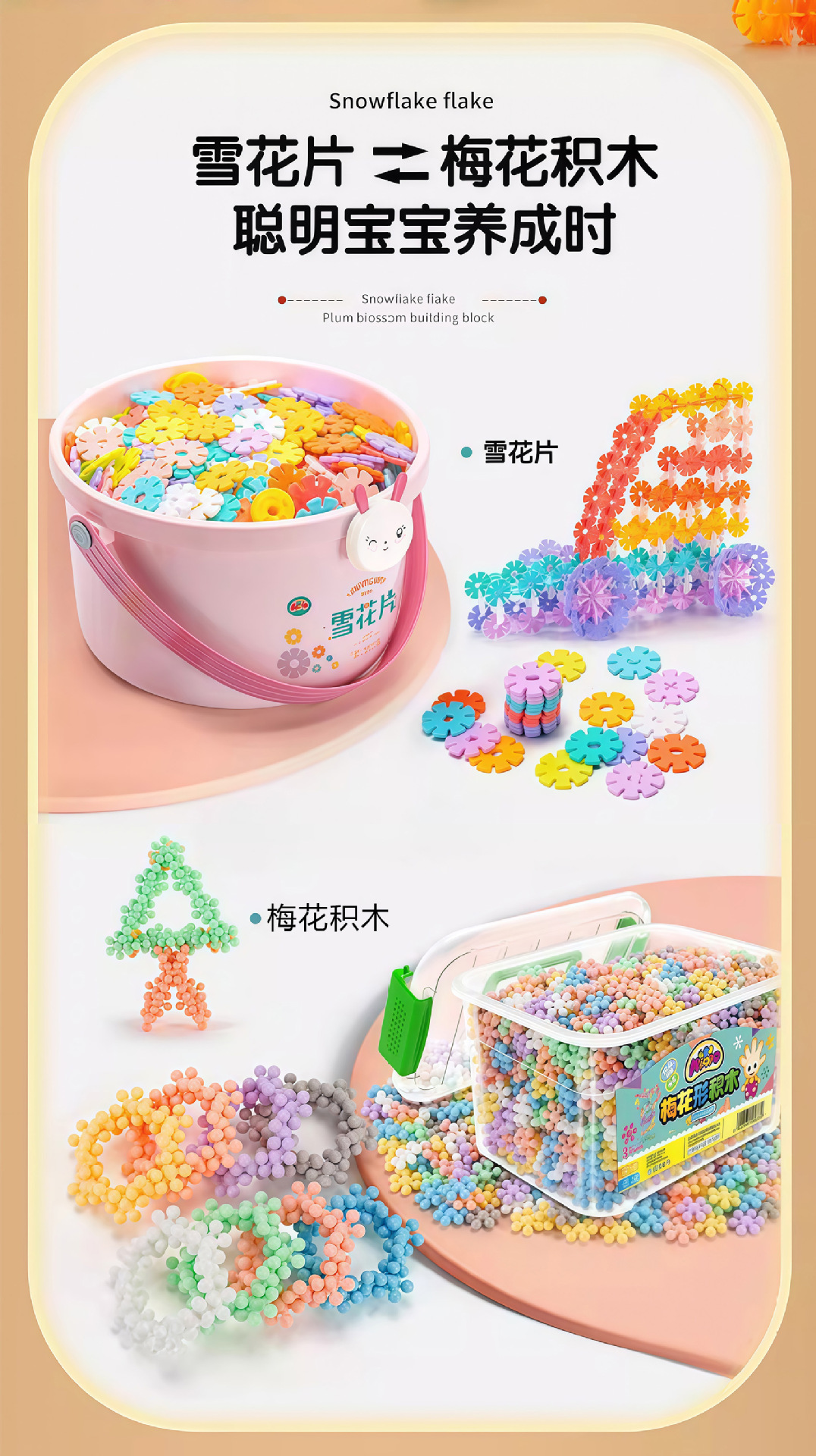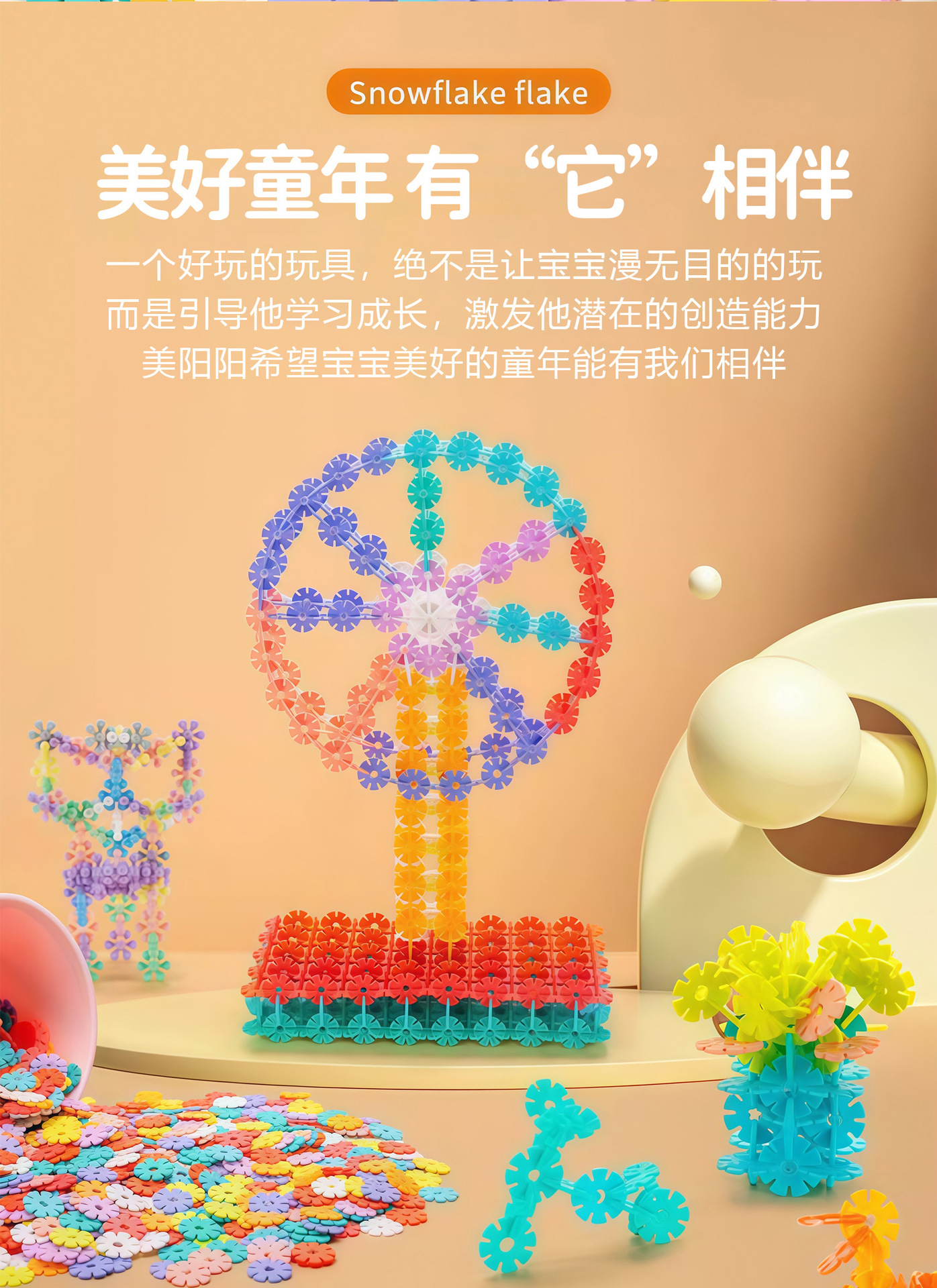 대형 눈꽃 조각 어린이 블록 장난감, 두꺼운 조립식 눈꽃 조각, 어린이 교육용 조립 블록 장난감스토어 가기
