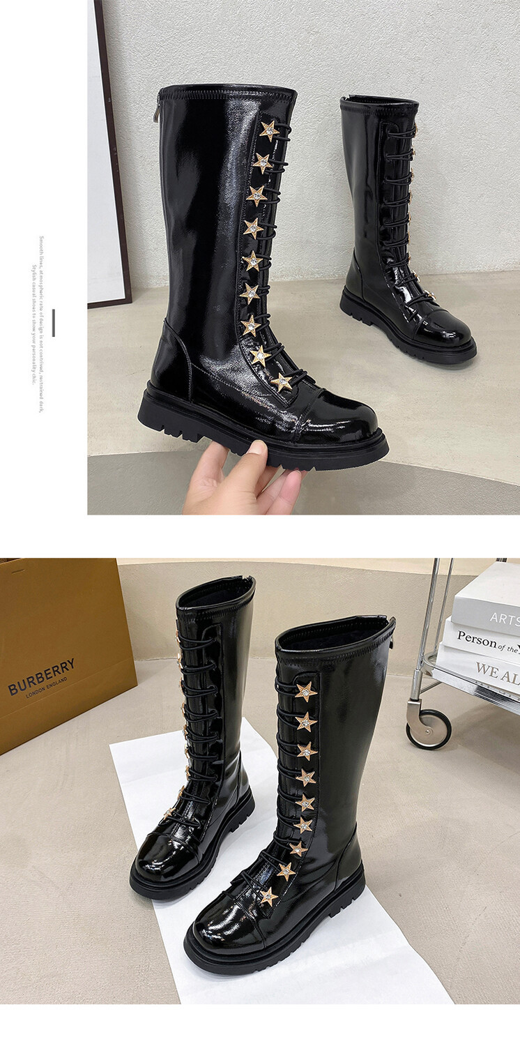 레터 걸스 가죽 부츠 아동용 부츠 2025 가을 겨울 새로운 스타일 중대형 어린이 소녀 맞춤형 패션쇼 마틴 부츠스토어 가기