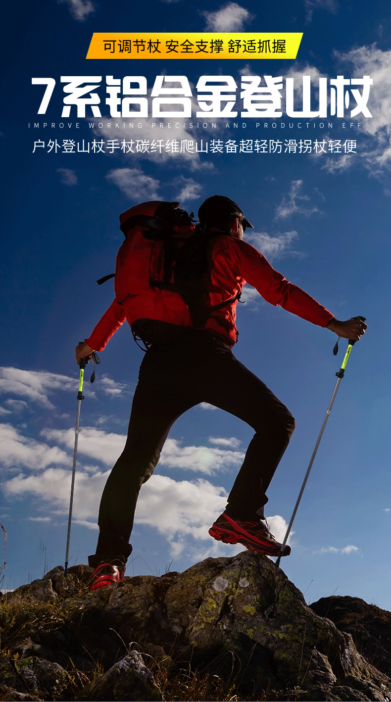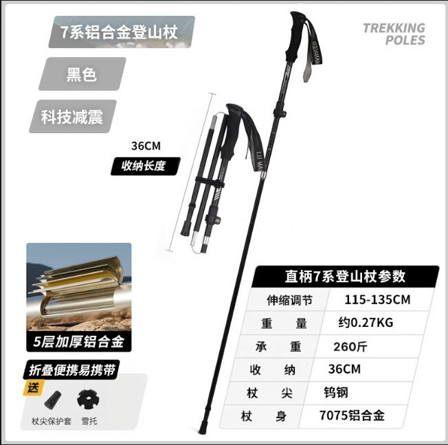 [공장] 야외 하이킹 7075 알루미늄 합금 휴대용 초경량 보관 접이식 하이킹 스틱 워킹 스틱스토어 가기