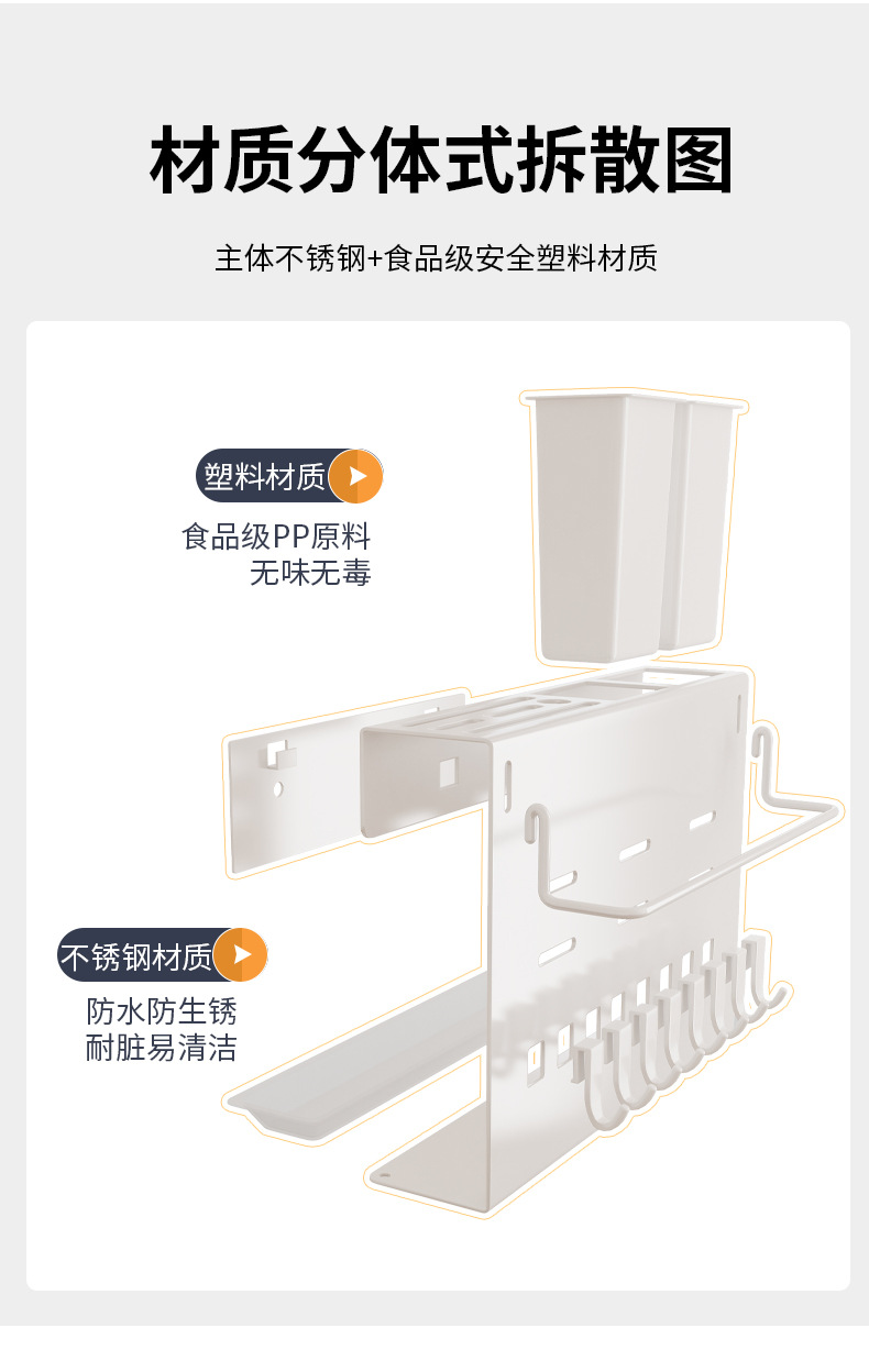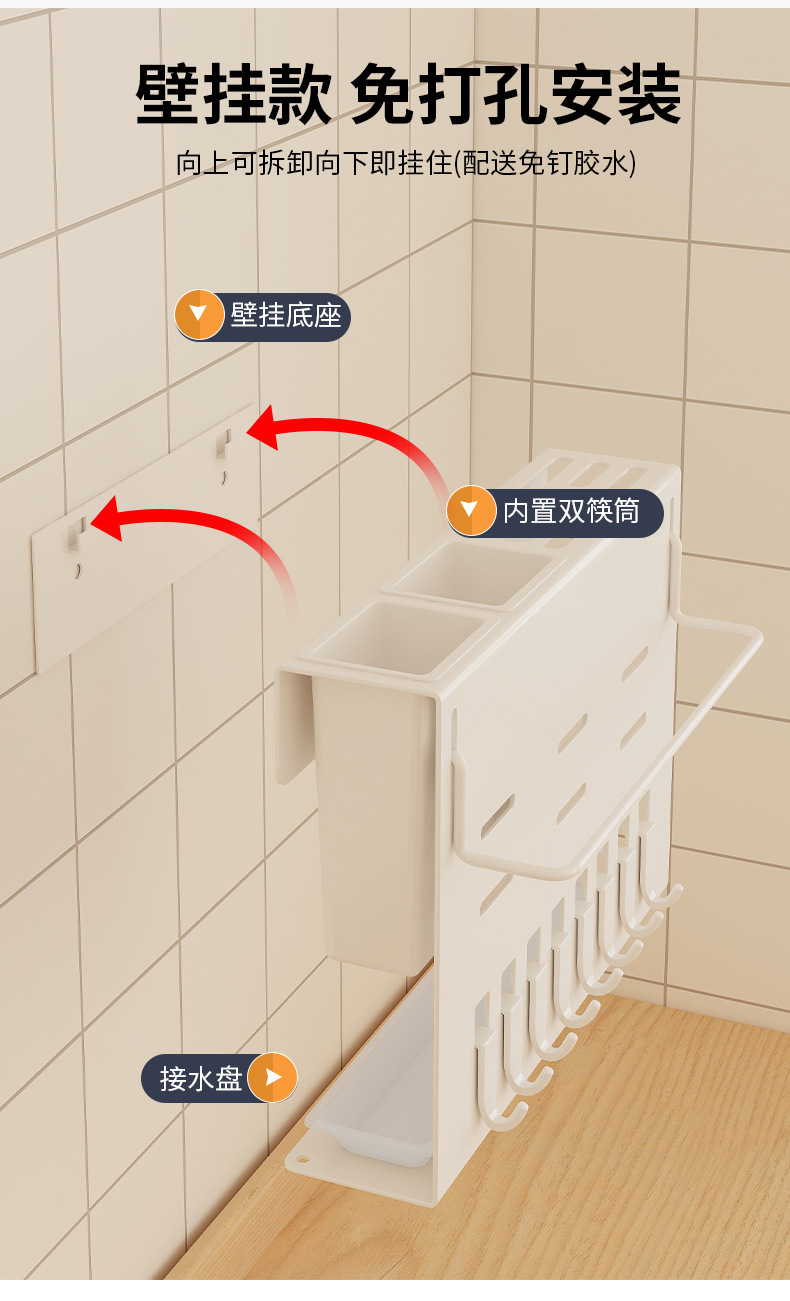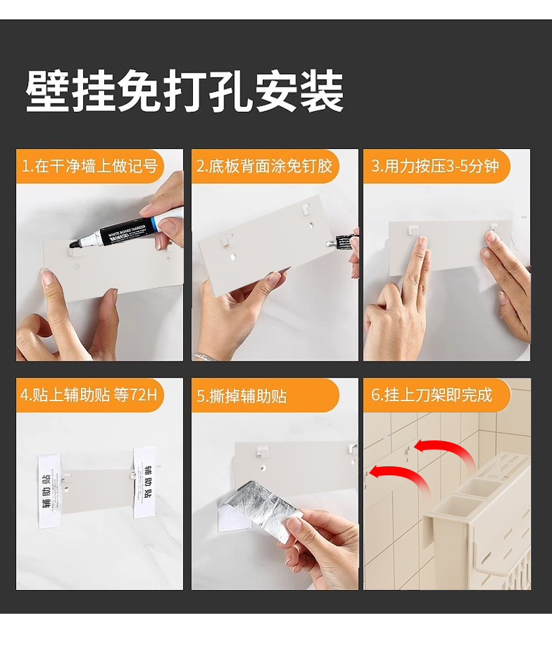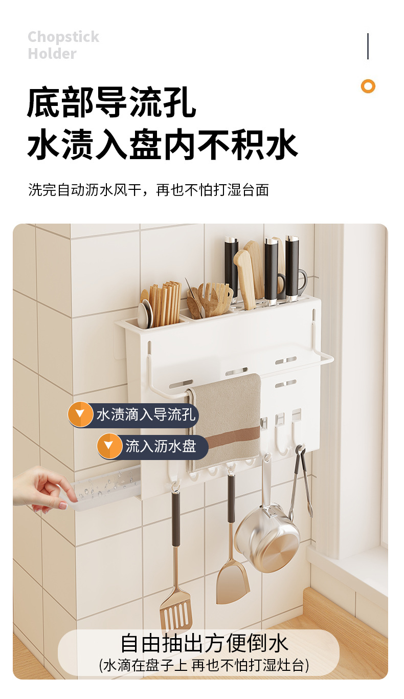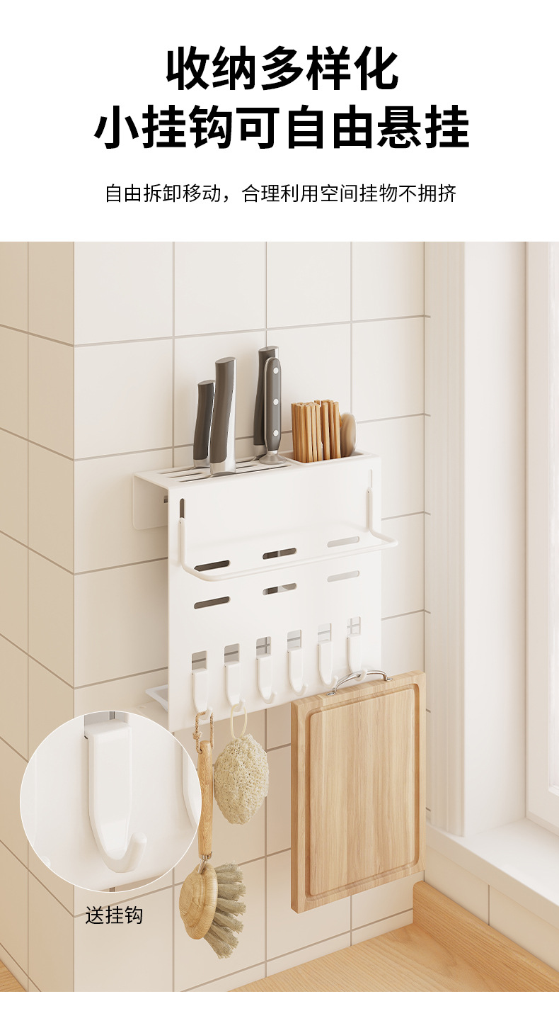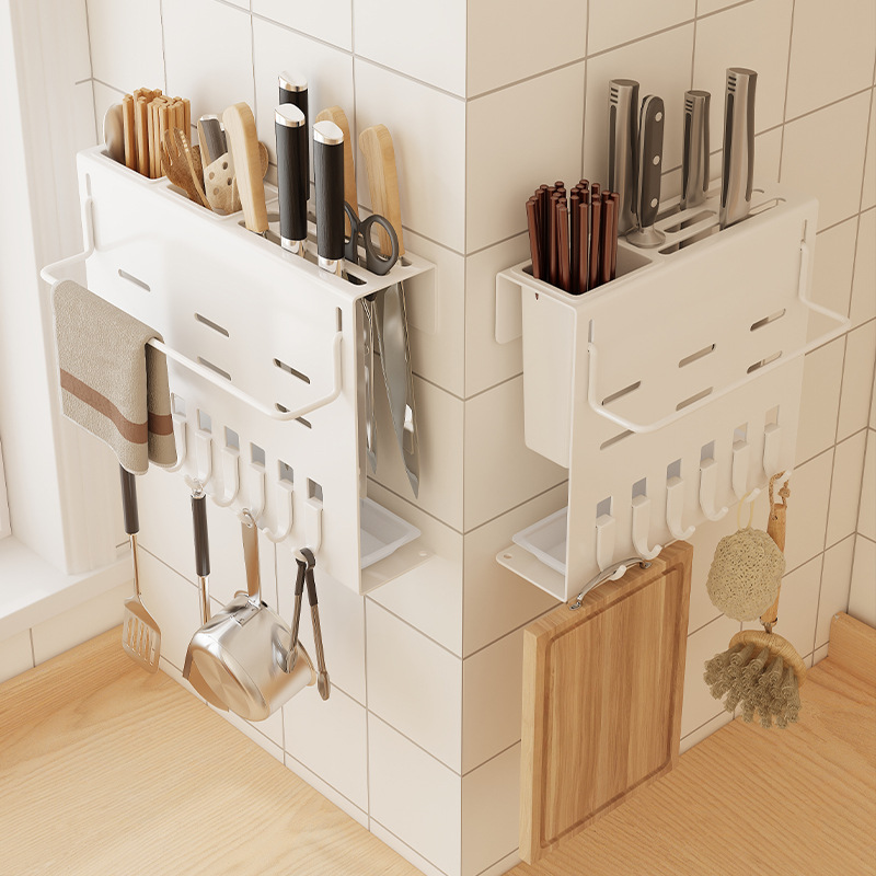 주방 나이프 홀더 스토리지 랙 펀치없는 젓가락 홀더 벽 장착 다기능 통합 주방 나이프 스토리지 랙