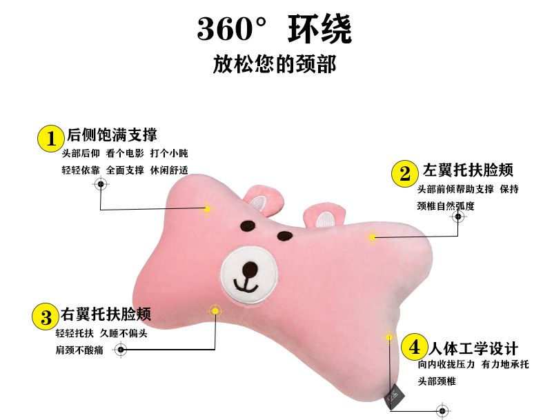 • 핑크색 U자형 베개 + 핑크색 자동차 베개 + 핑크색 허리 베개