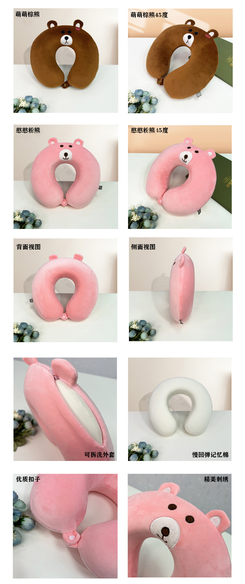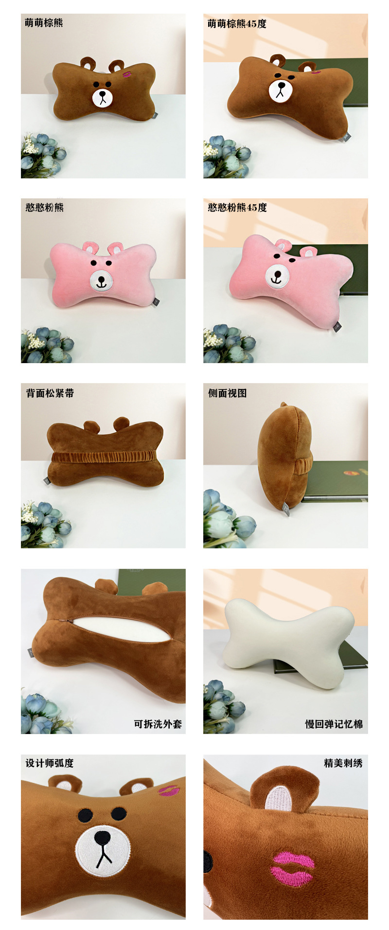 • 갈색 U자형 베개 + 갈색 자동차 베개 + 갈색 허리 베개