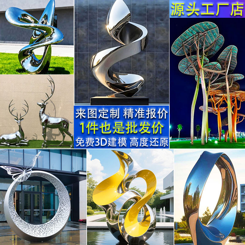 맞춤형 대형 스테인리스 조경 조각품, 추상적인 거울 반사 원형 물결 사슴 수경 장식, 야외 현관 금속 장식품스토어 가기