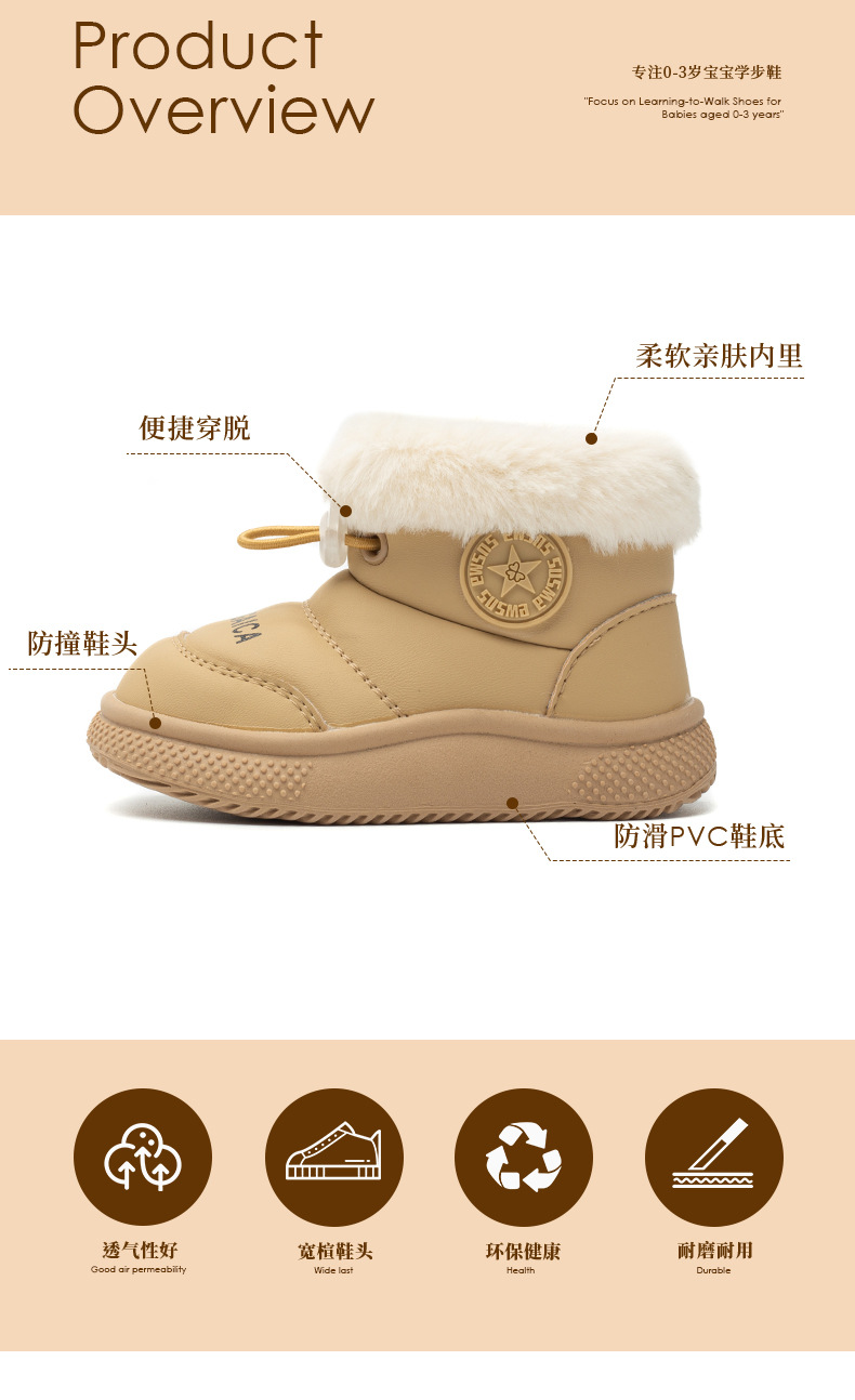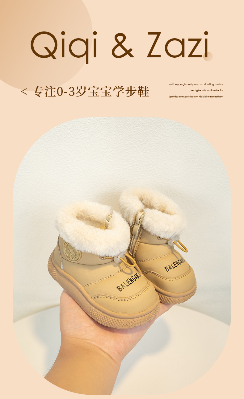 겨울 아기 소년의 눈 부츠 기모 두꺼운 면 따뜻한 1-3 세 비 슬립 부드러운 바닥 아기 유아 코튼 신발