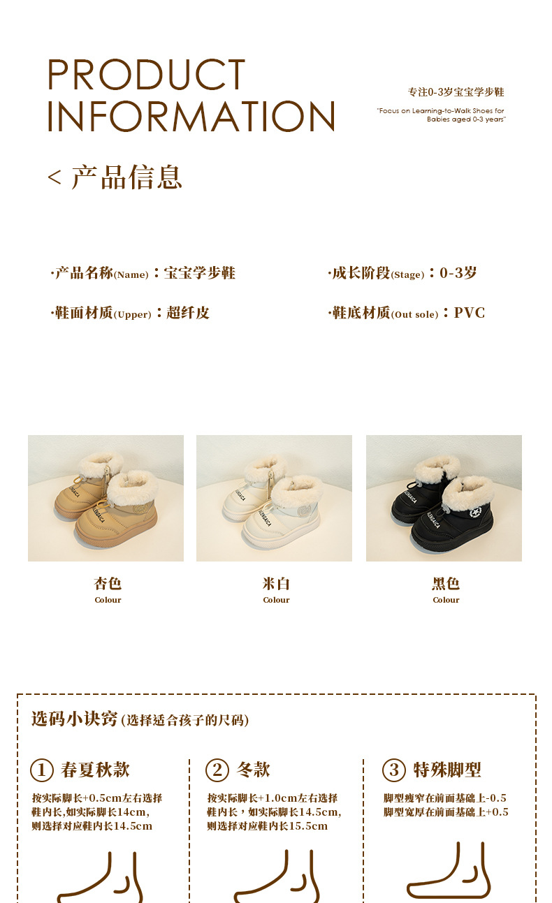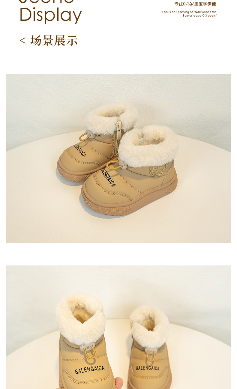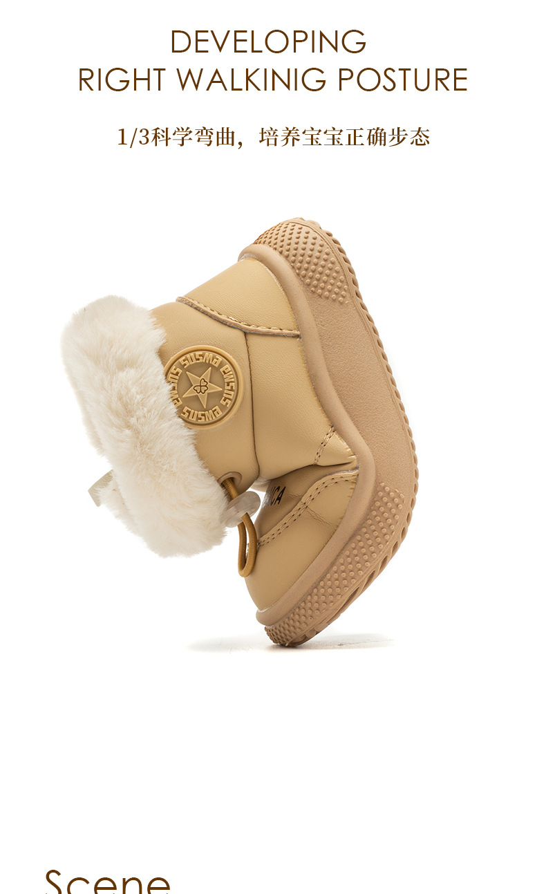 겨울 아기 소년의 눈 부츠 기모 두꺼운 면 따뜻한 1-3 세 비 슬립 부드러운 바닥 아기 유아 코튼 신발스토어 가기
