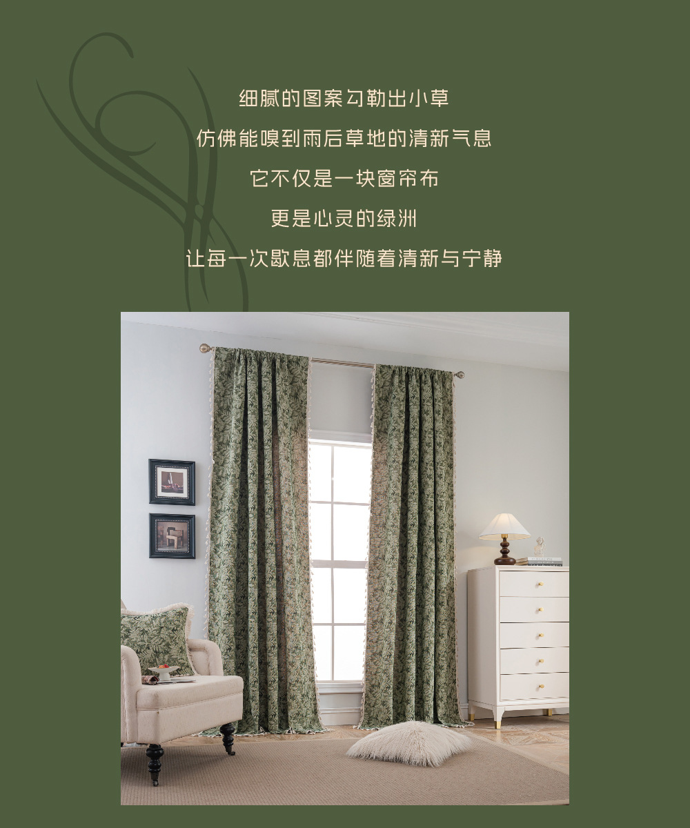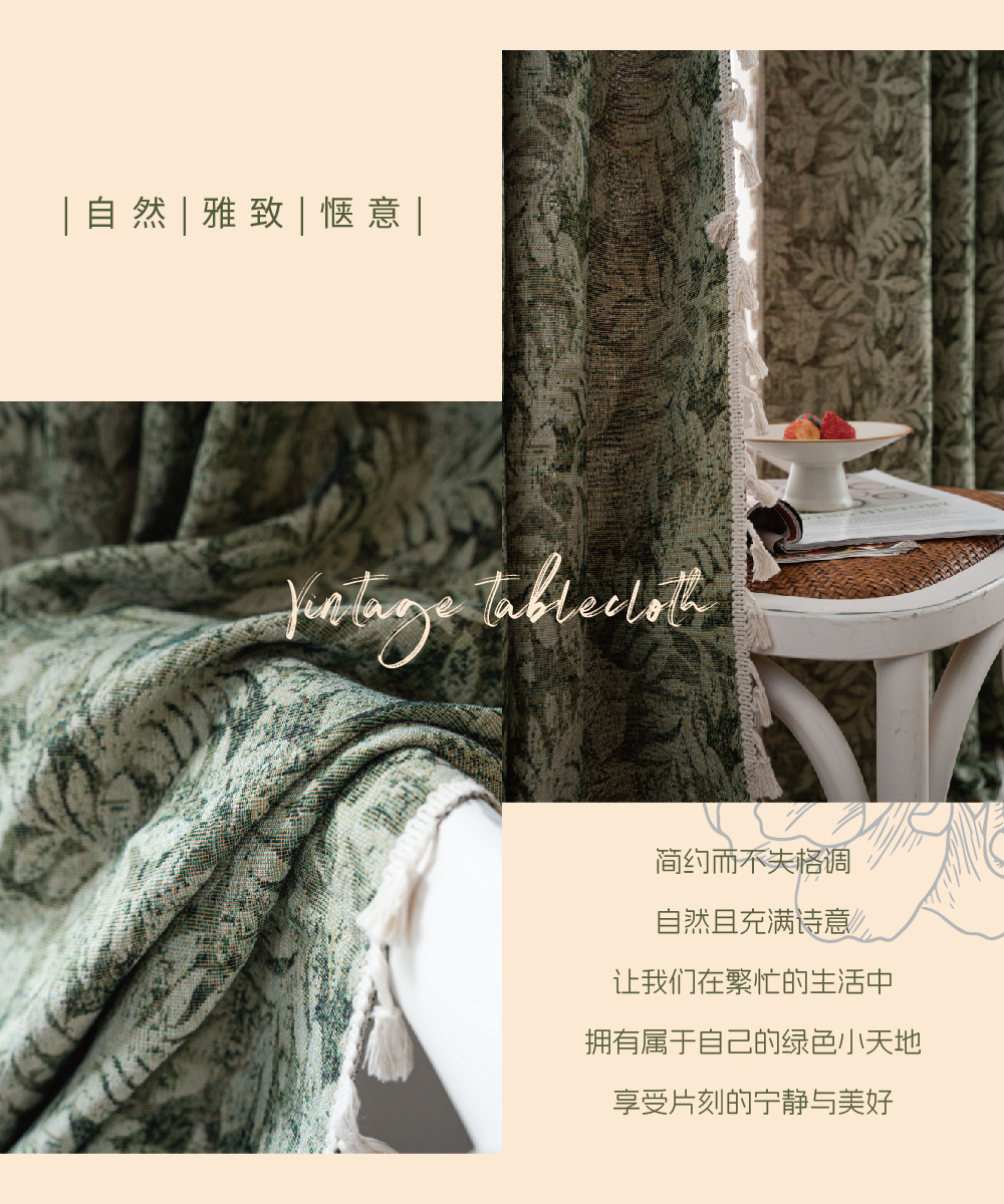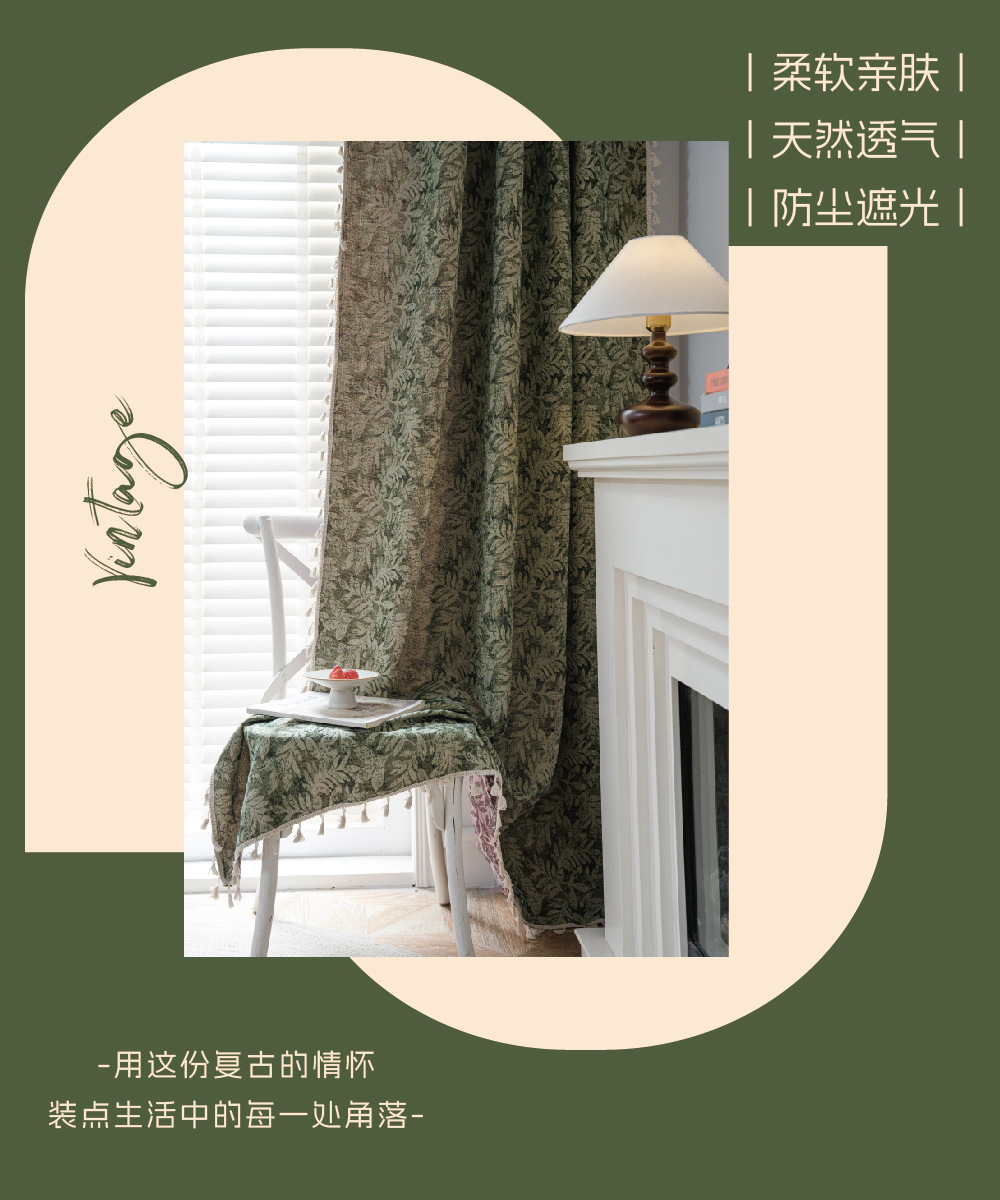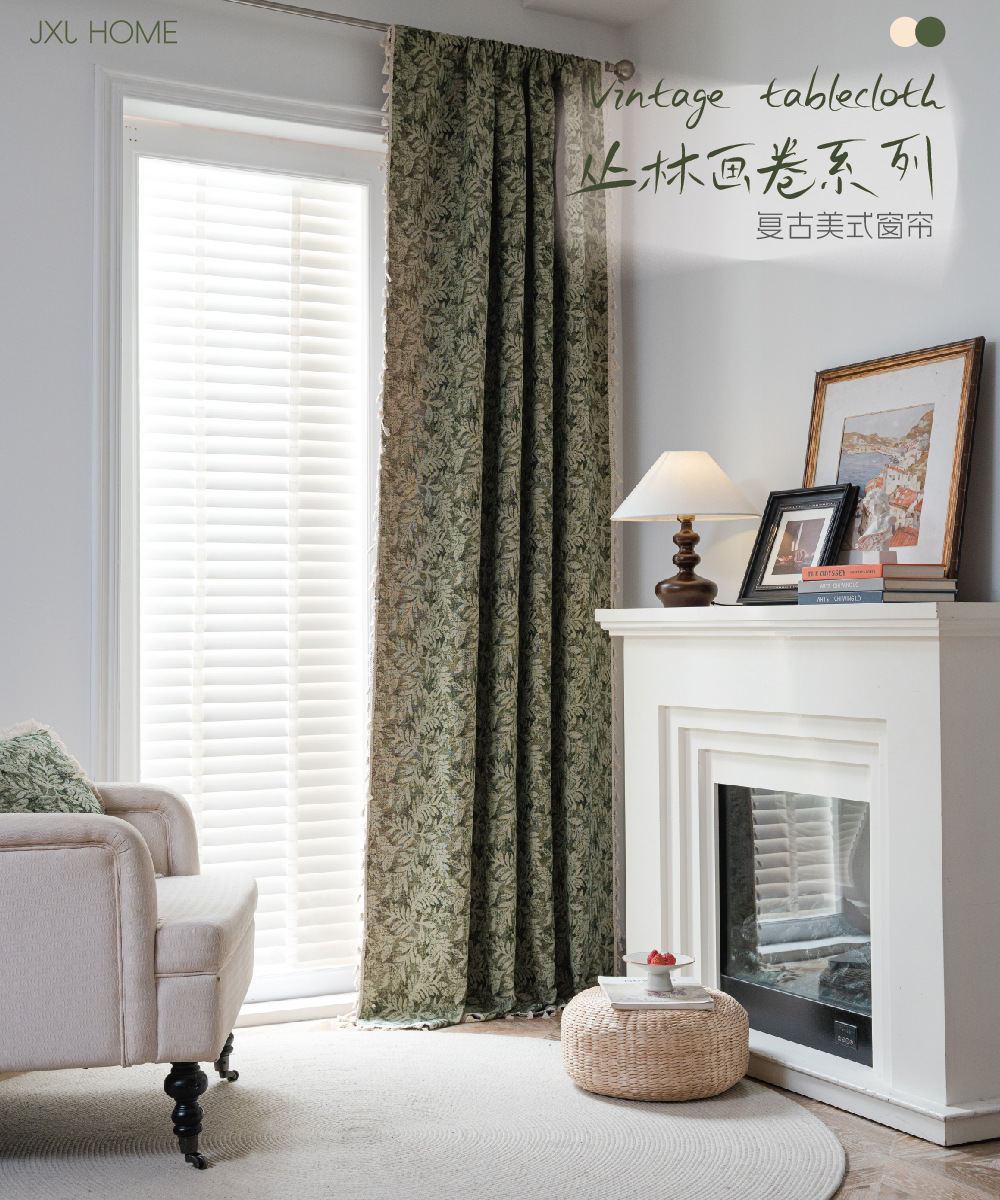 프랑스식 기성 커튼, 녹색 나뭇잎 자카드, 완전 암막 및 단열 커튼, 거실, 침실, 어린이방용 도매 판매스토어 가기
