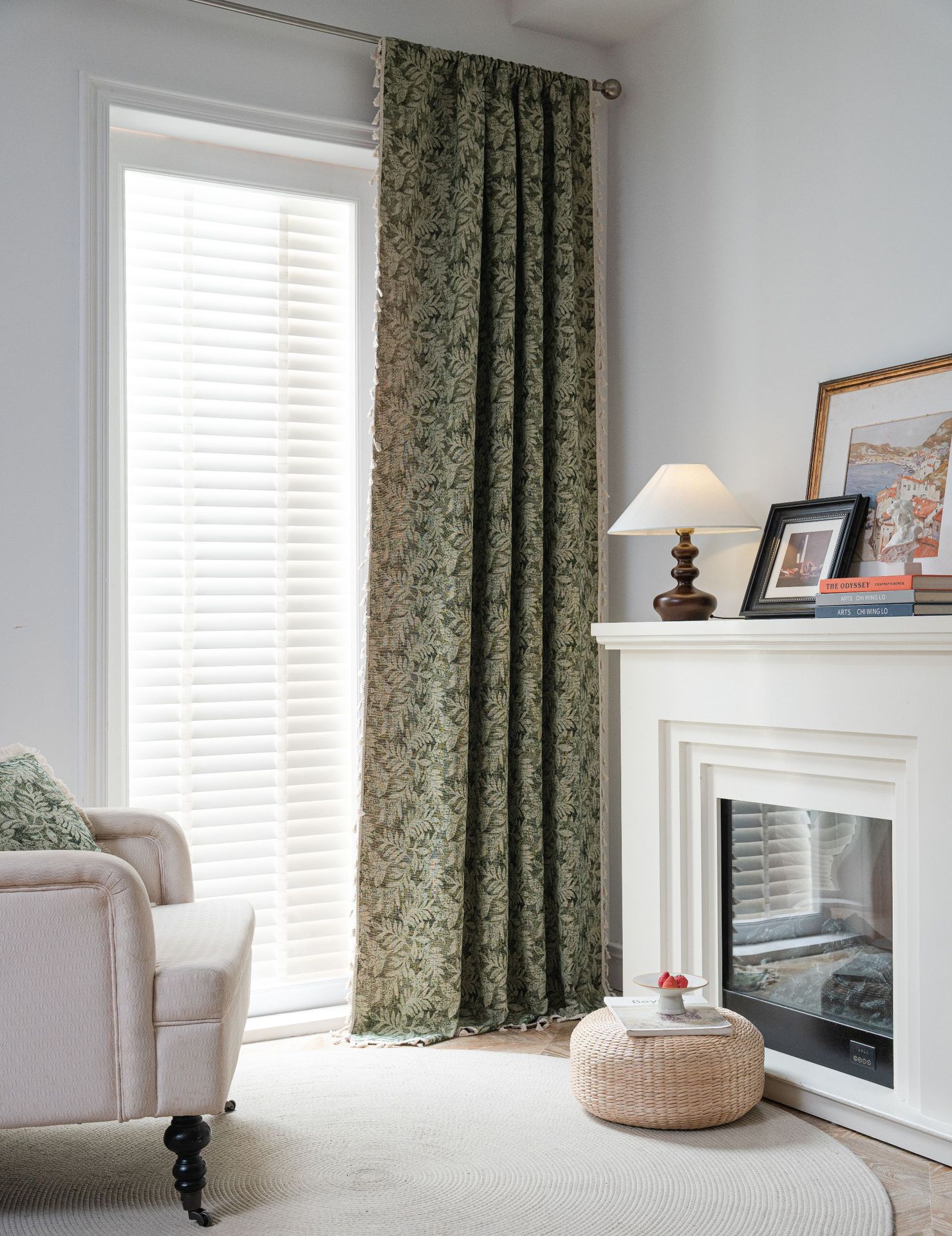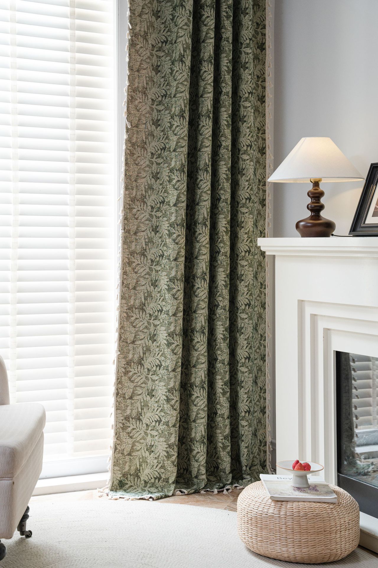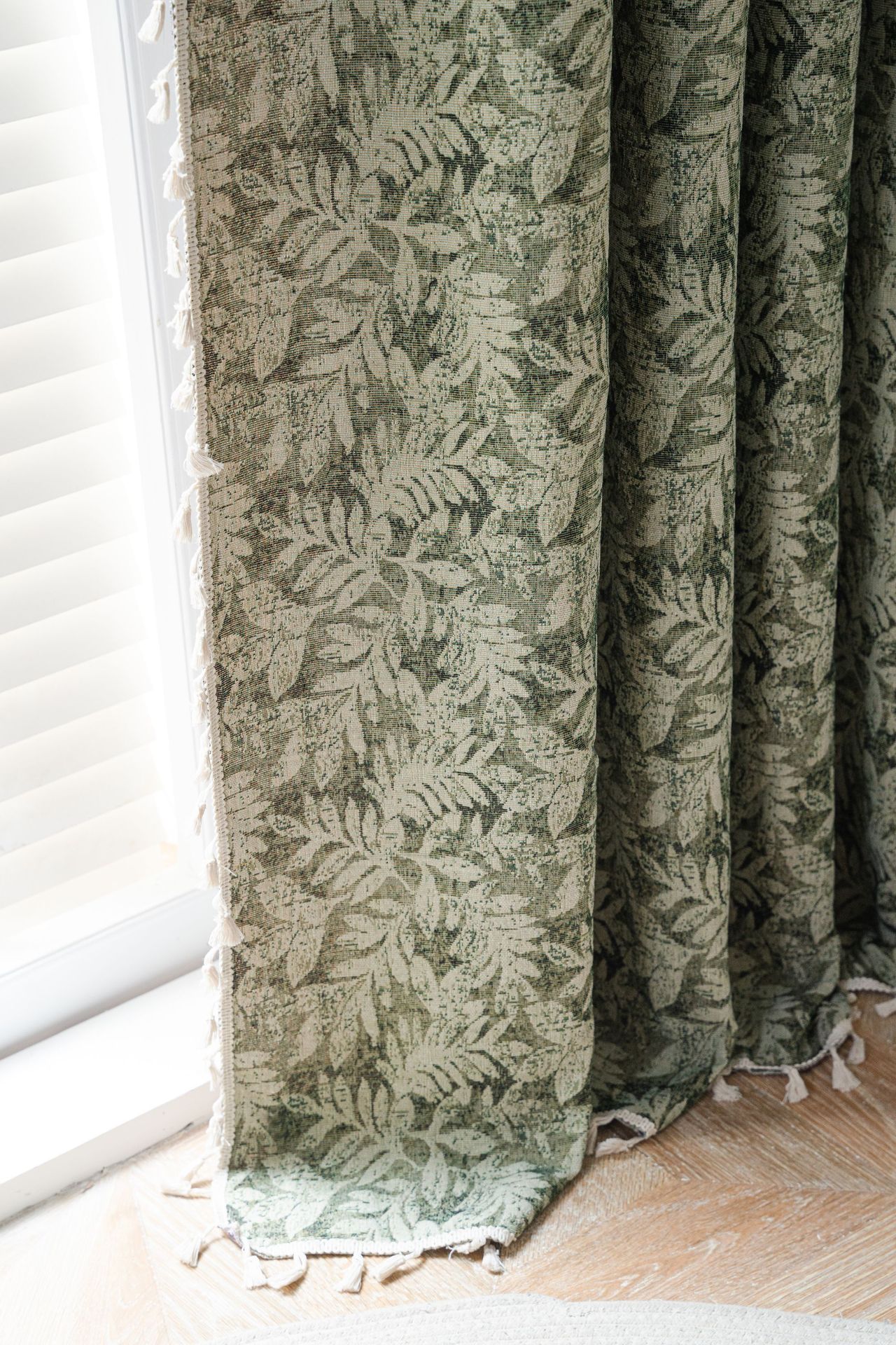 프랑스식 기성 커튼, 녹색 나뭇잎 자카드, 완전 암막 및 단열 커튼, 거실, 침실, 어린이방용 도매 판매스토어 가기