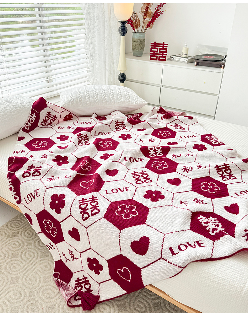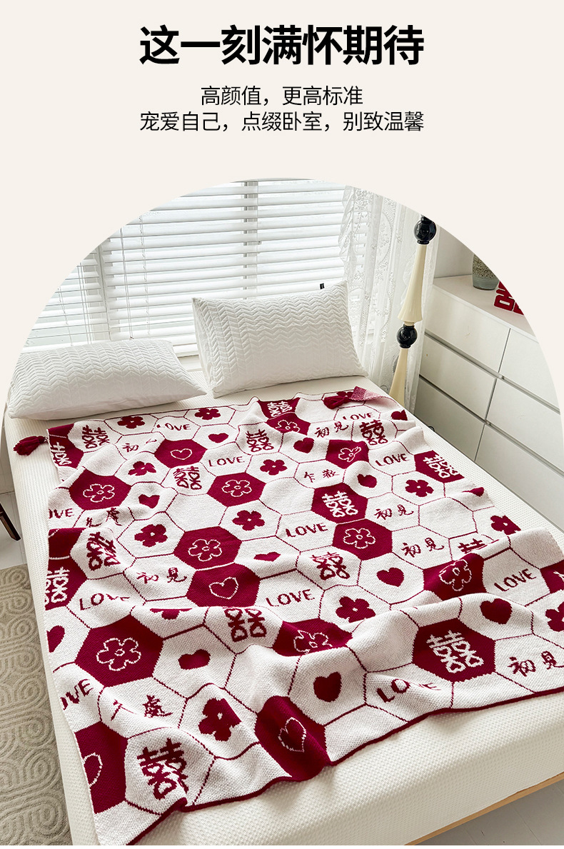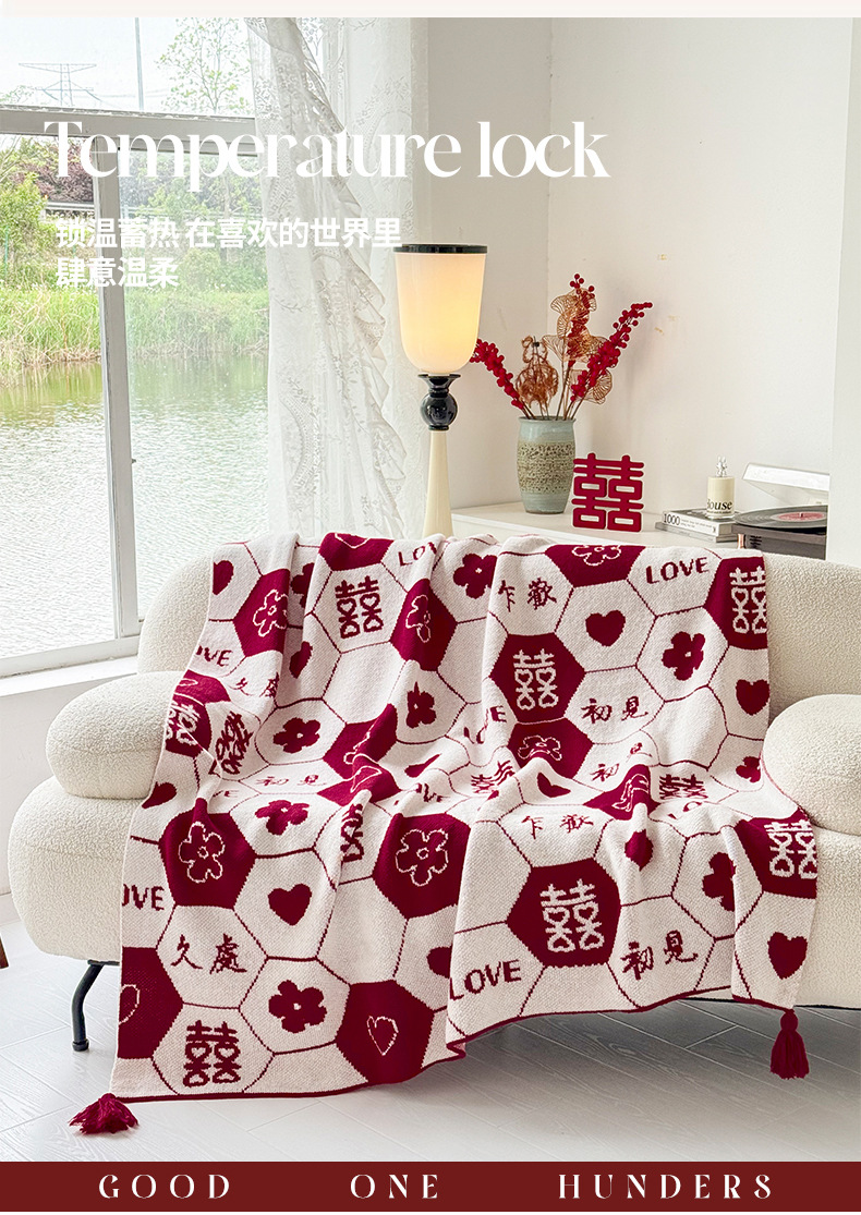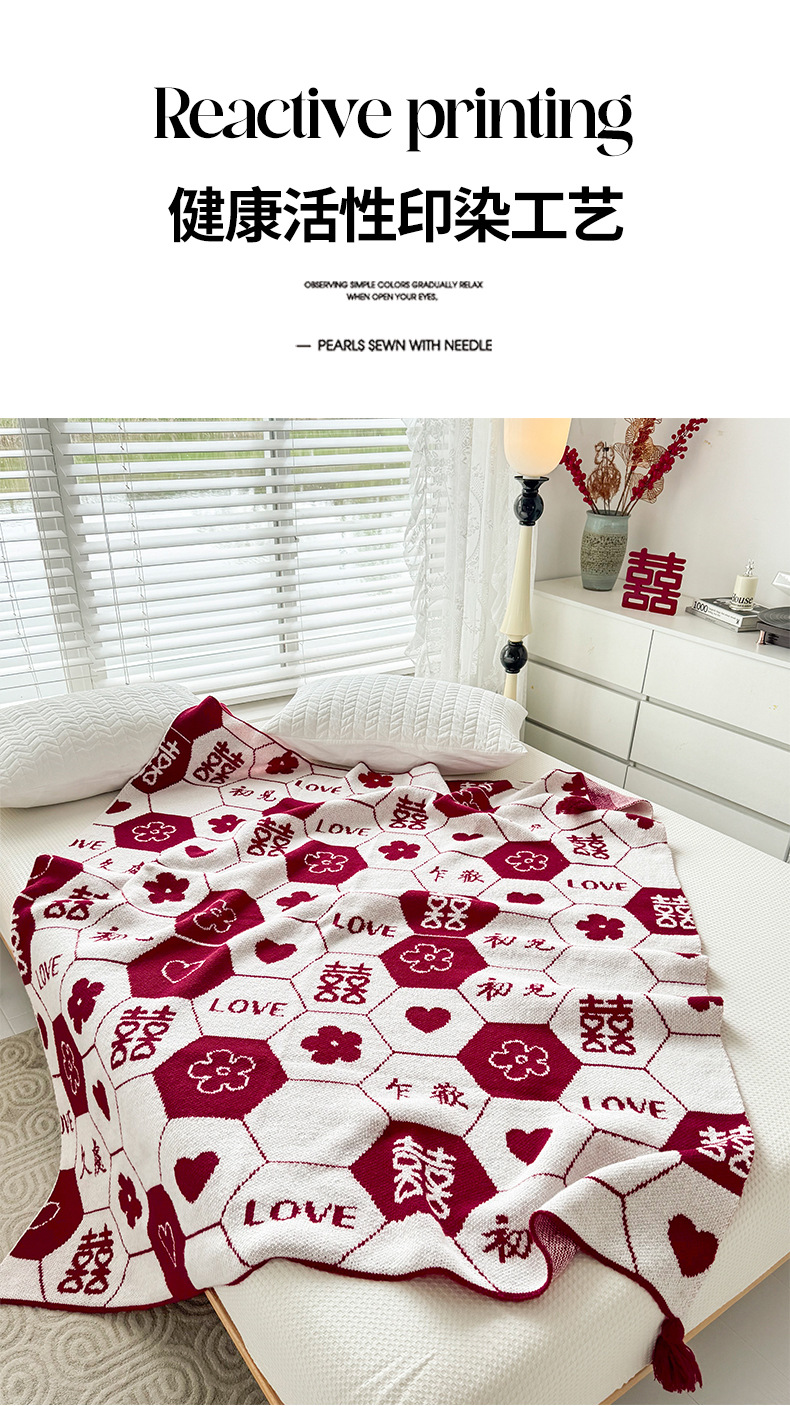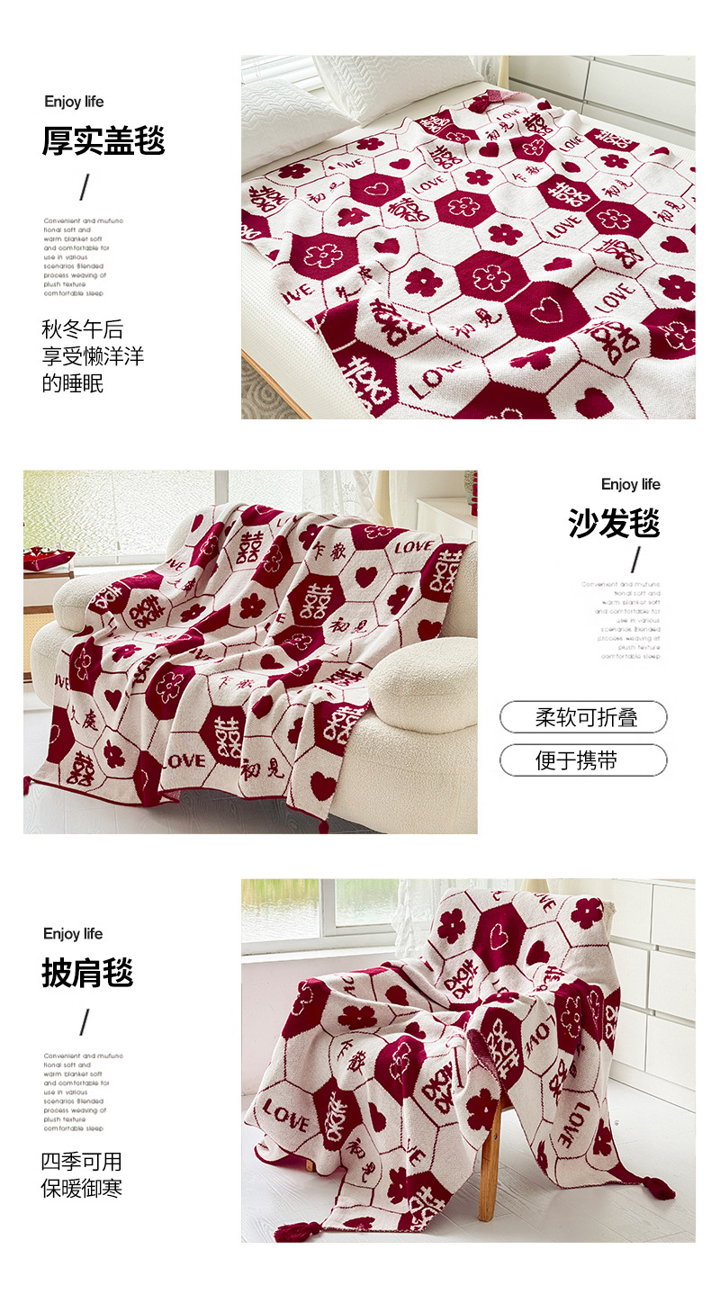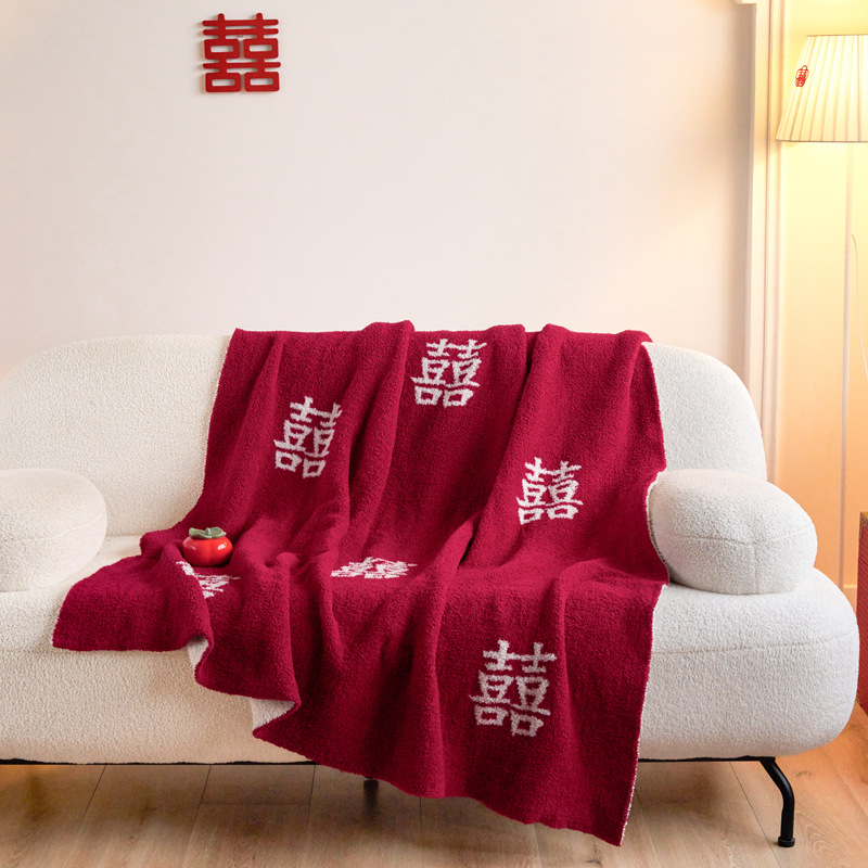 공장 아울렛 웨딩 해피 담요 담요 중국 레드 소파 담요 웨딩 룸 니트 슬리핑 담요 축제 담요