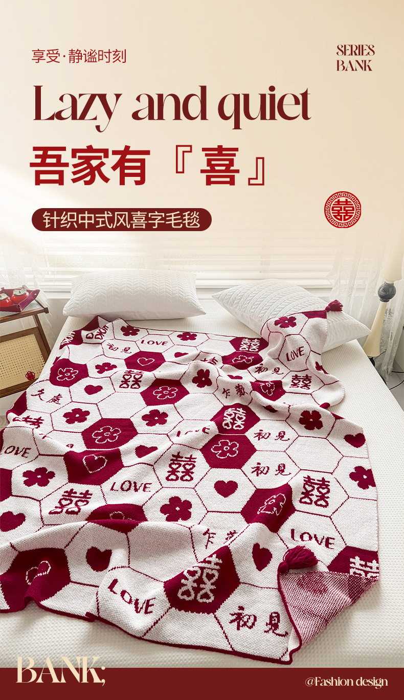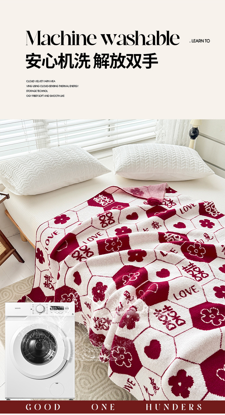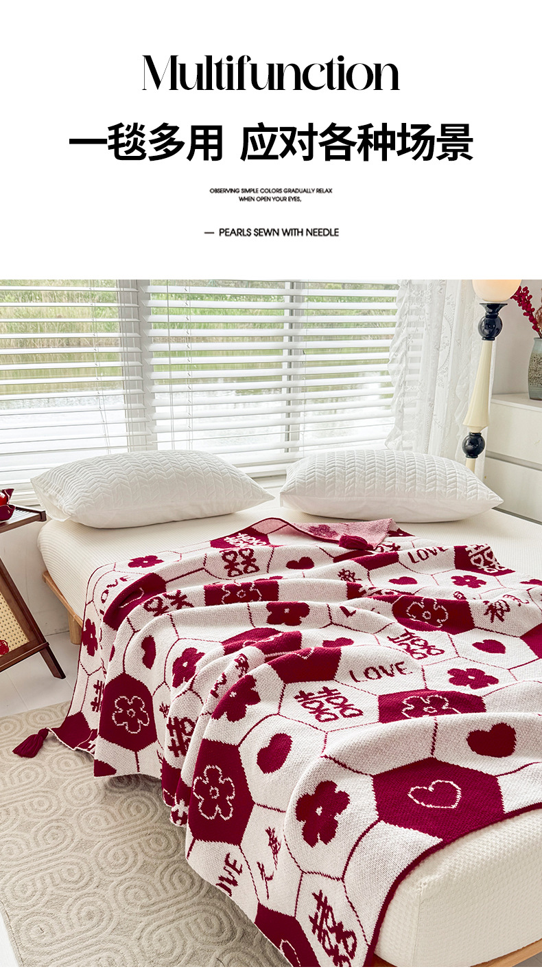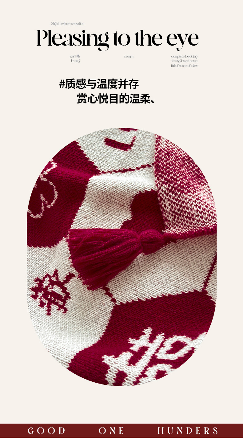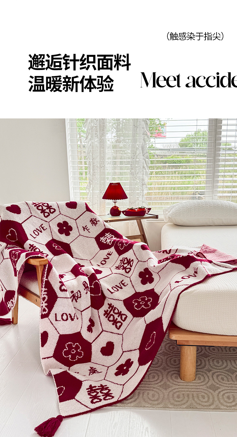 공장 아울렛 웨딩 해피 담요 담요 중국 레드 소파 담요 웨딩 룸 니트 슬리핑 담요 축제 담요