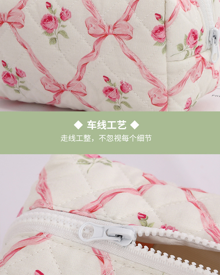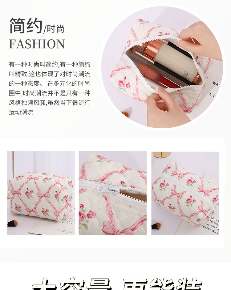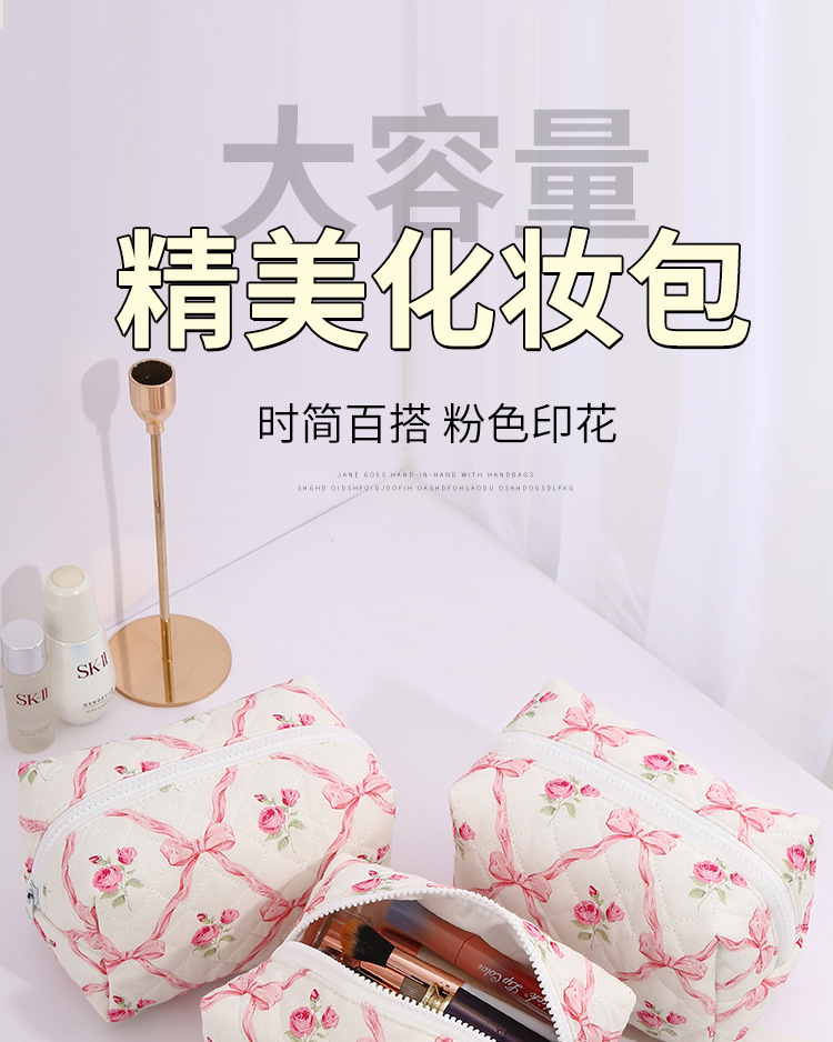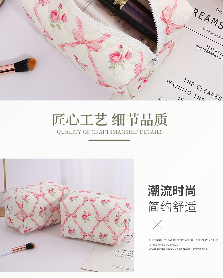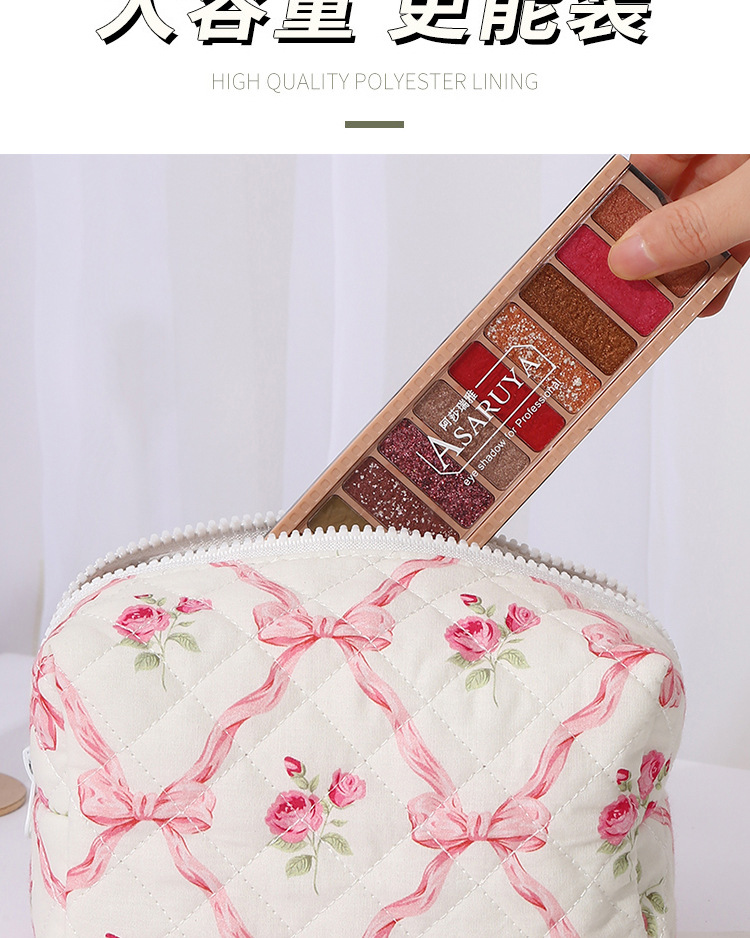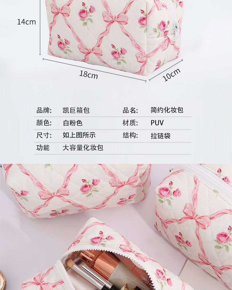 궁전 스타일 꽃무늬 화장품 가방 대용량 고급 퀼팅 수납 가방 휴대용 핸드백 여행용 수납 가방