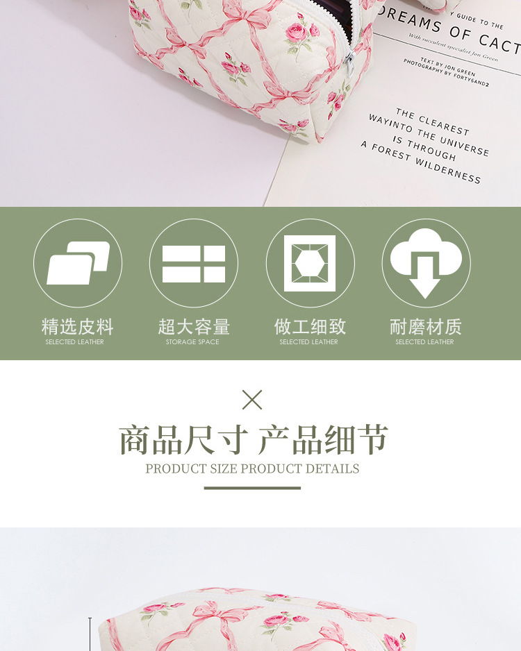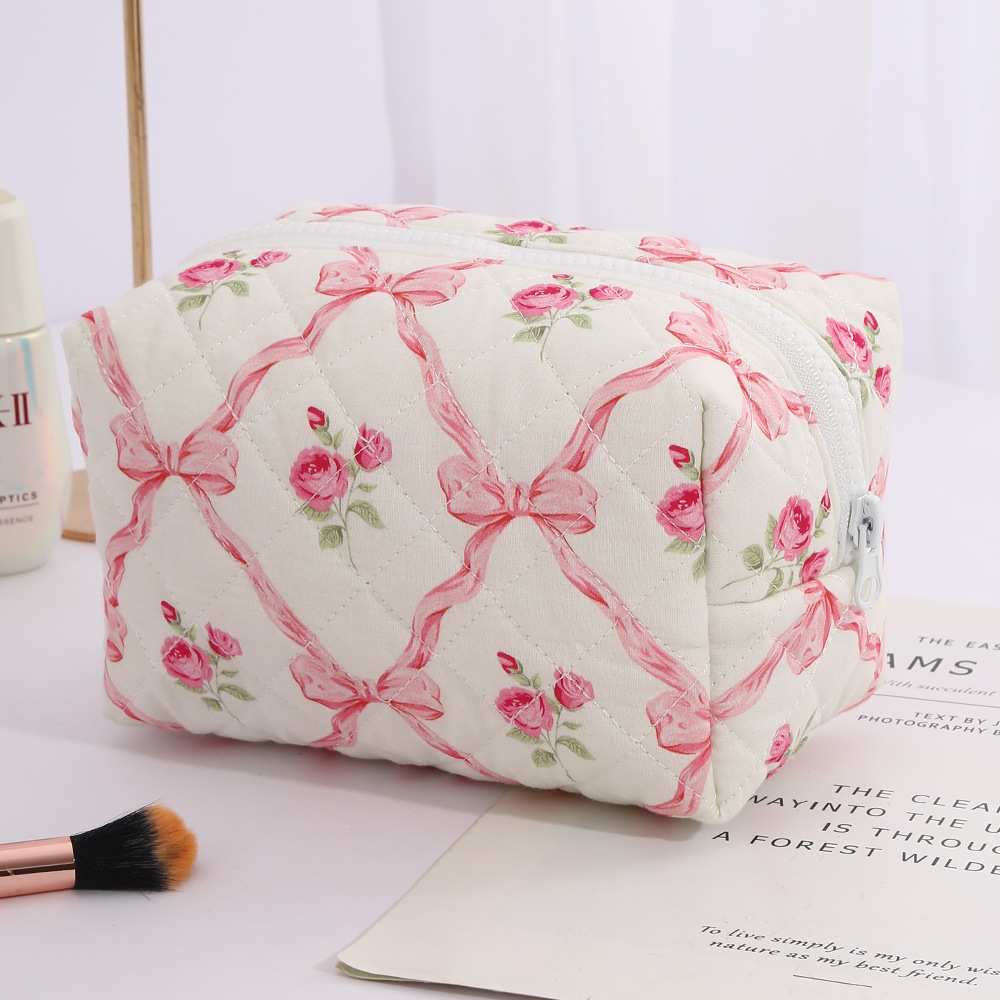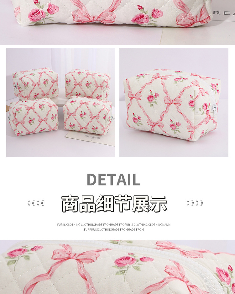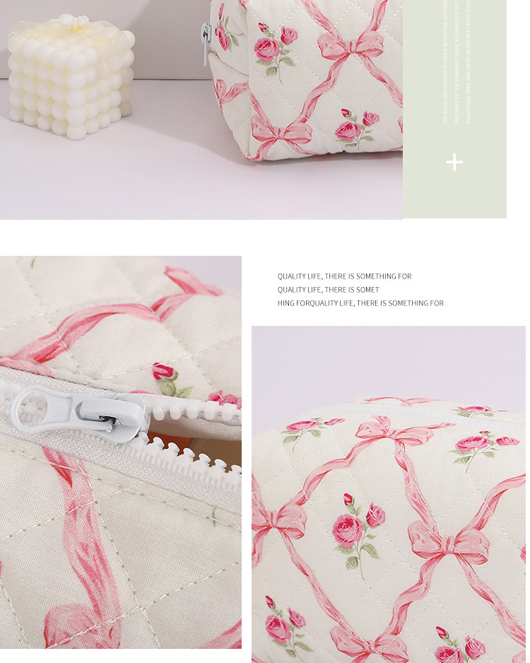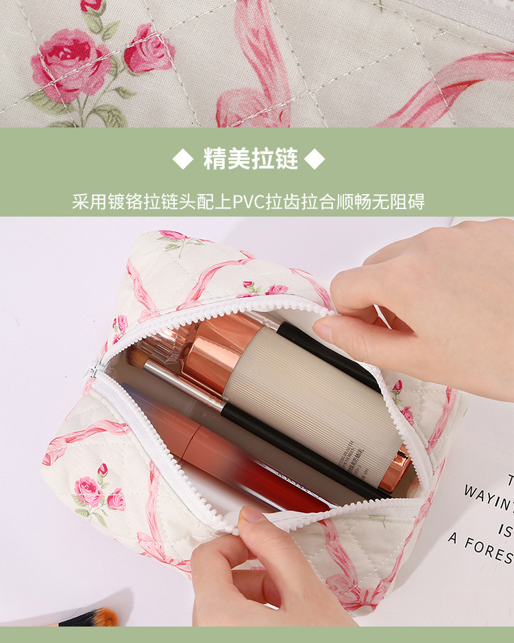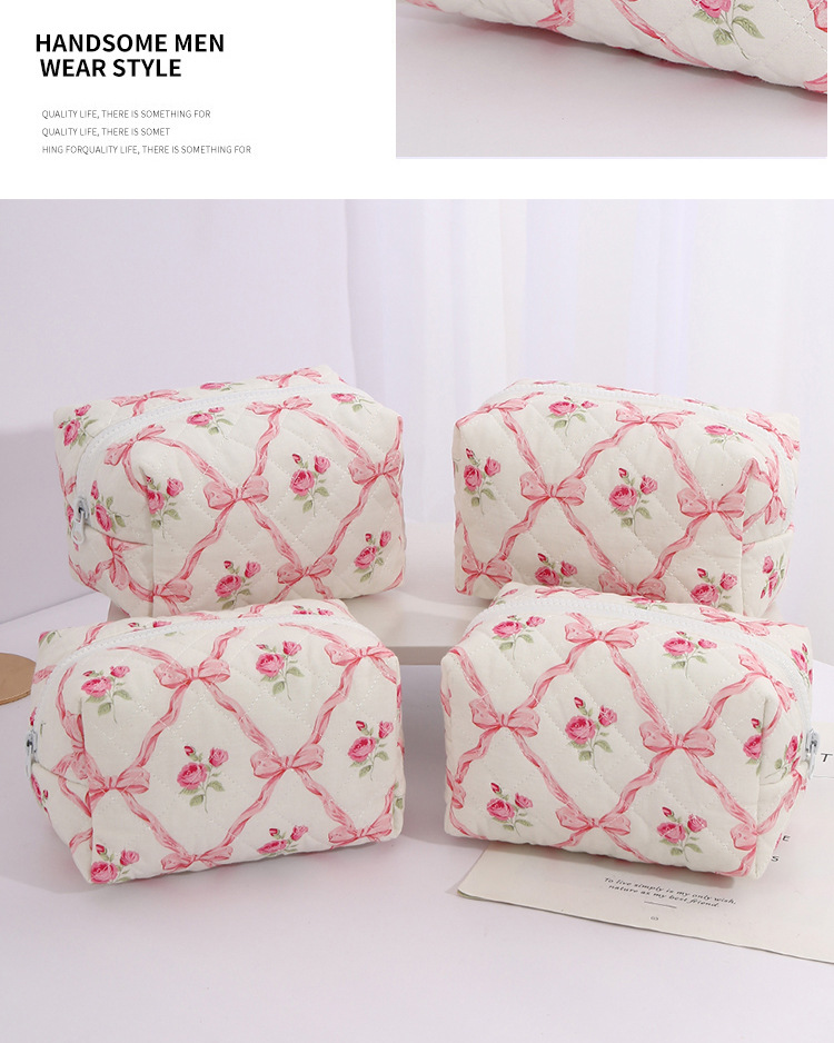 궁전 스타일 꽃무늬 화장품 가방 대용량 고급 퀼팅 수납 가방 휴대용 핸드백 여행용 수납 가방