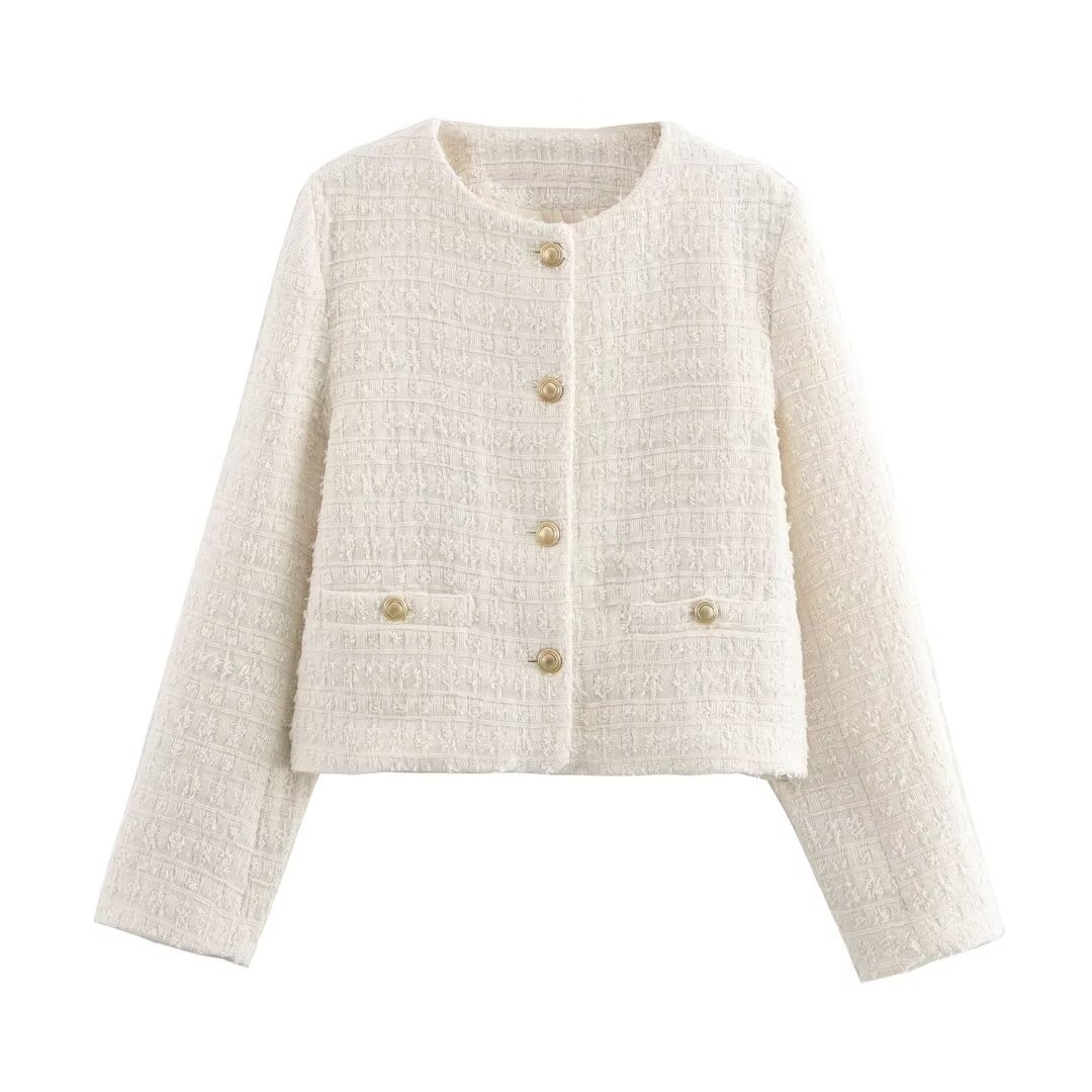 유럽과 미국 국경 여성 의류 도매 2024 가을 패션 작은 향기로운 스타일 모직 짧은 재킷 코트 여성스토어 가기