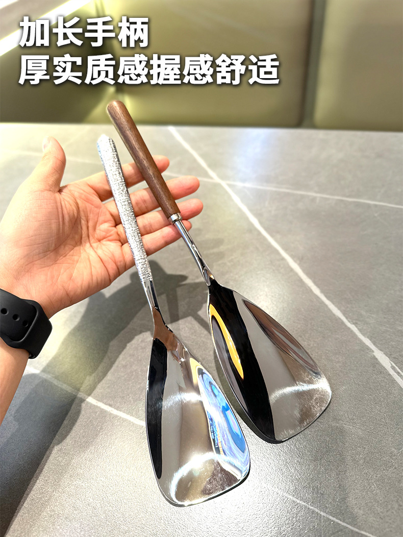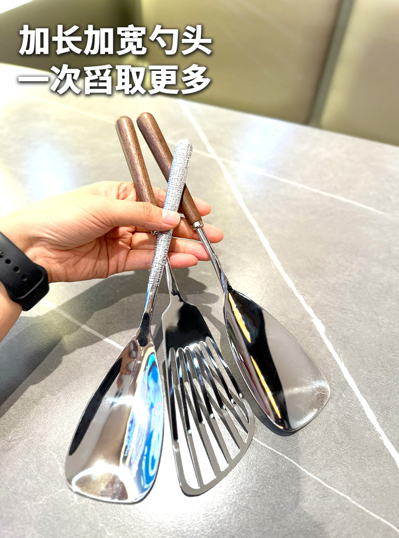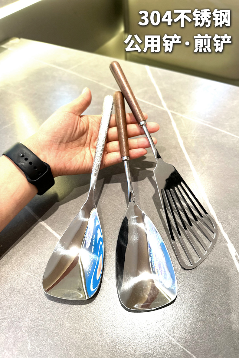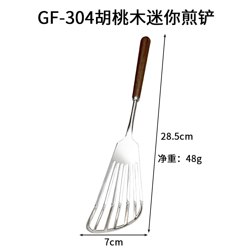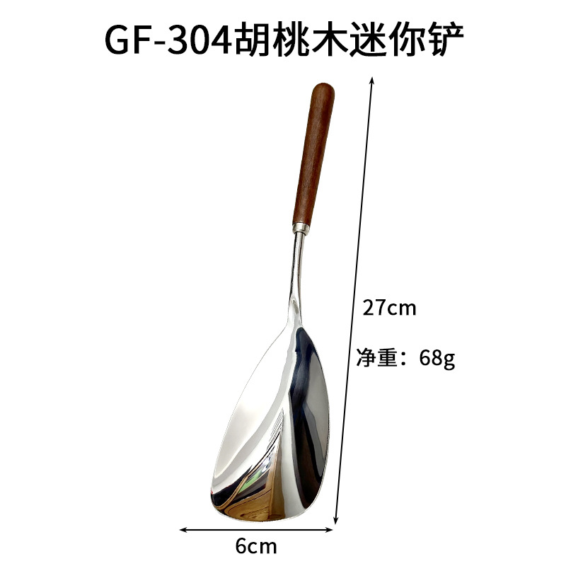 304 스테인레스 스틸 주걱 주방 주방 용품 가정용 요리 주걱 미니 야외 작은 주걱 나무 손잡이 스테이크 프라이팬 주걱